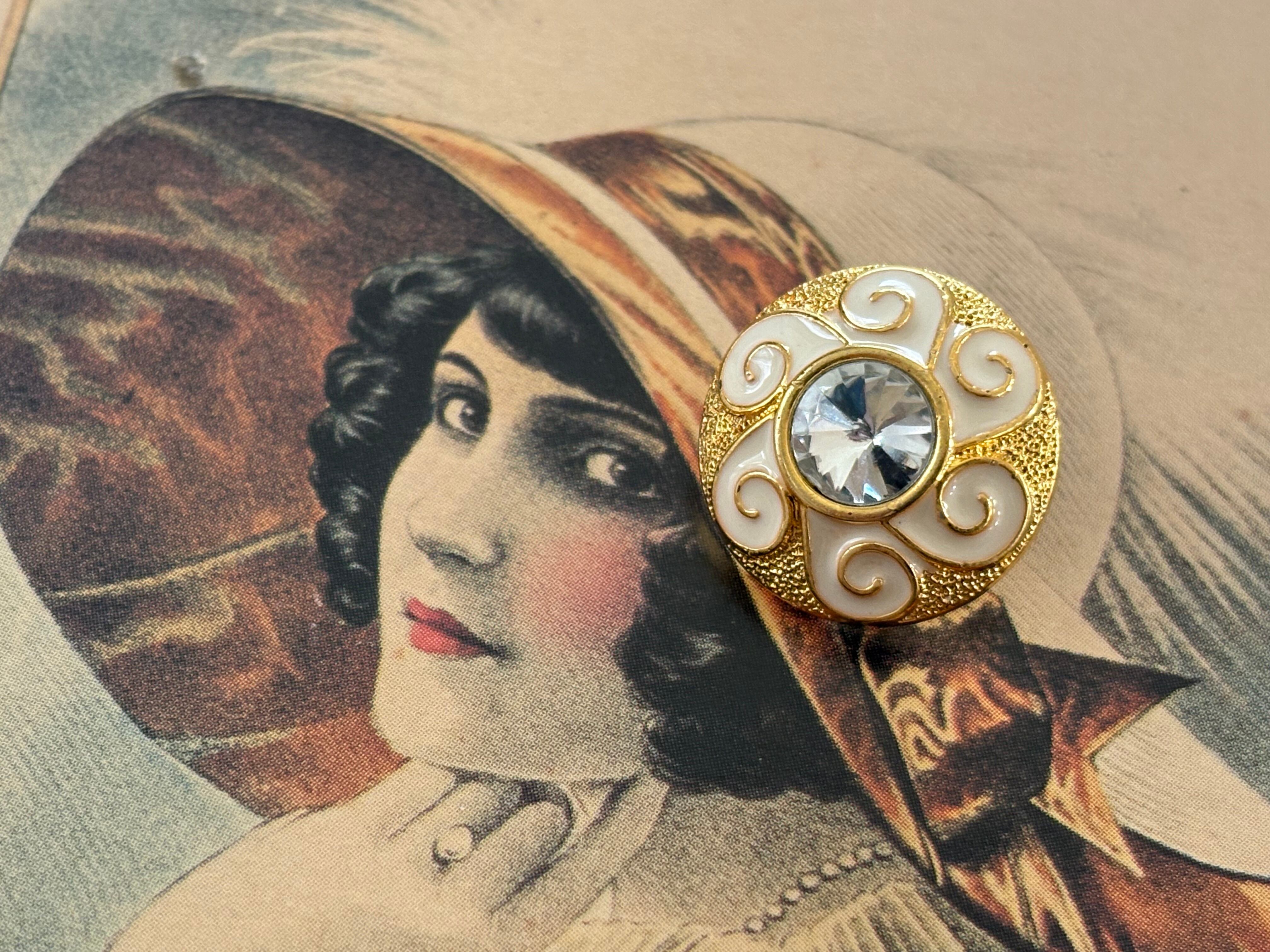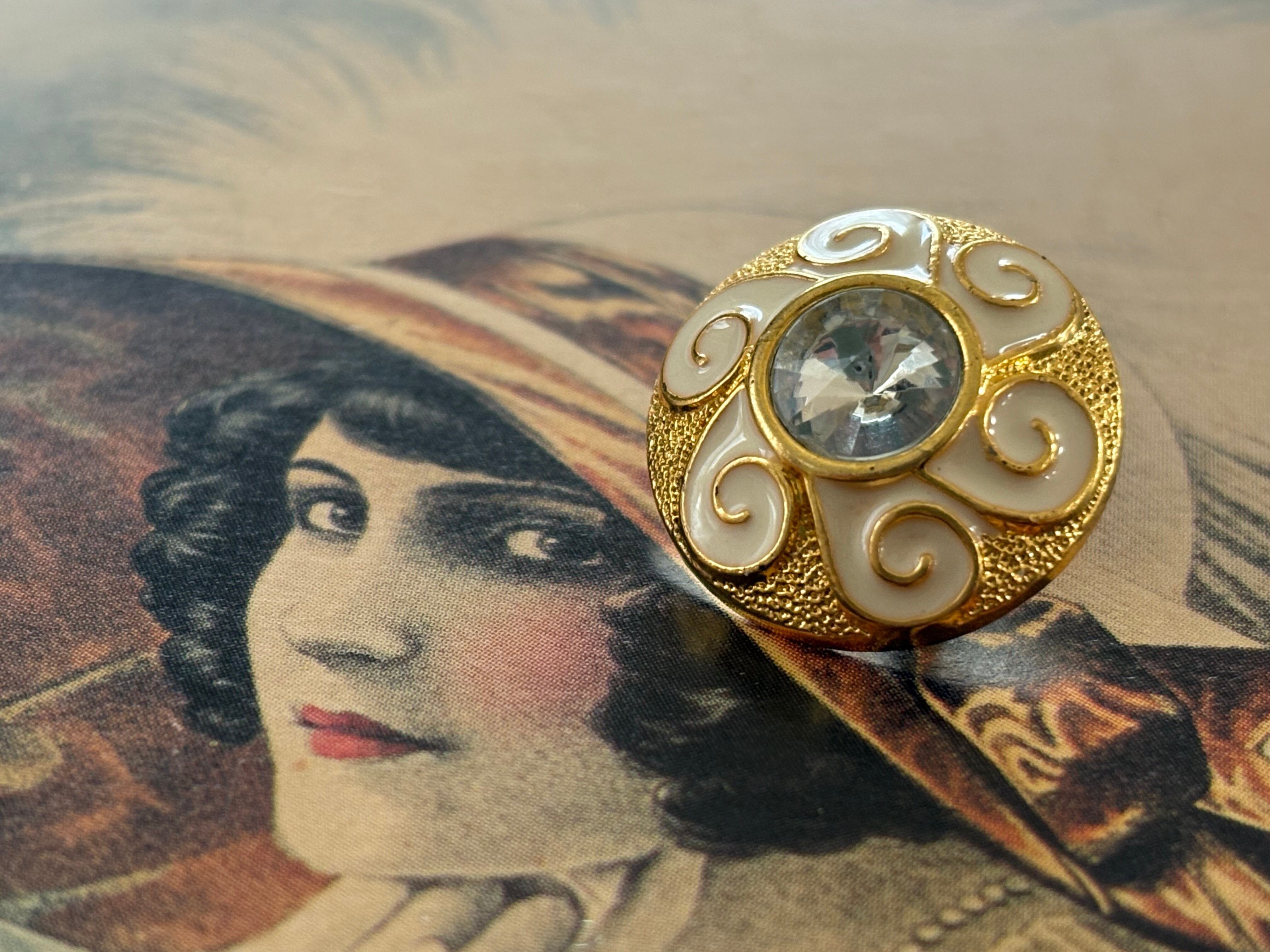 17mm Japanese ヴィンテージボタン フラワー型 ストーン ゴールド×ホワイト アクセサリーパーツ 装飾材 デコレーション材