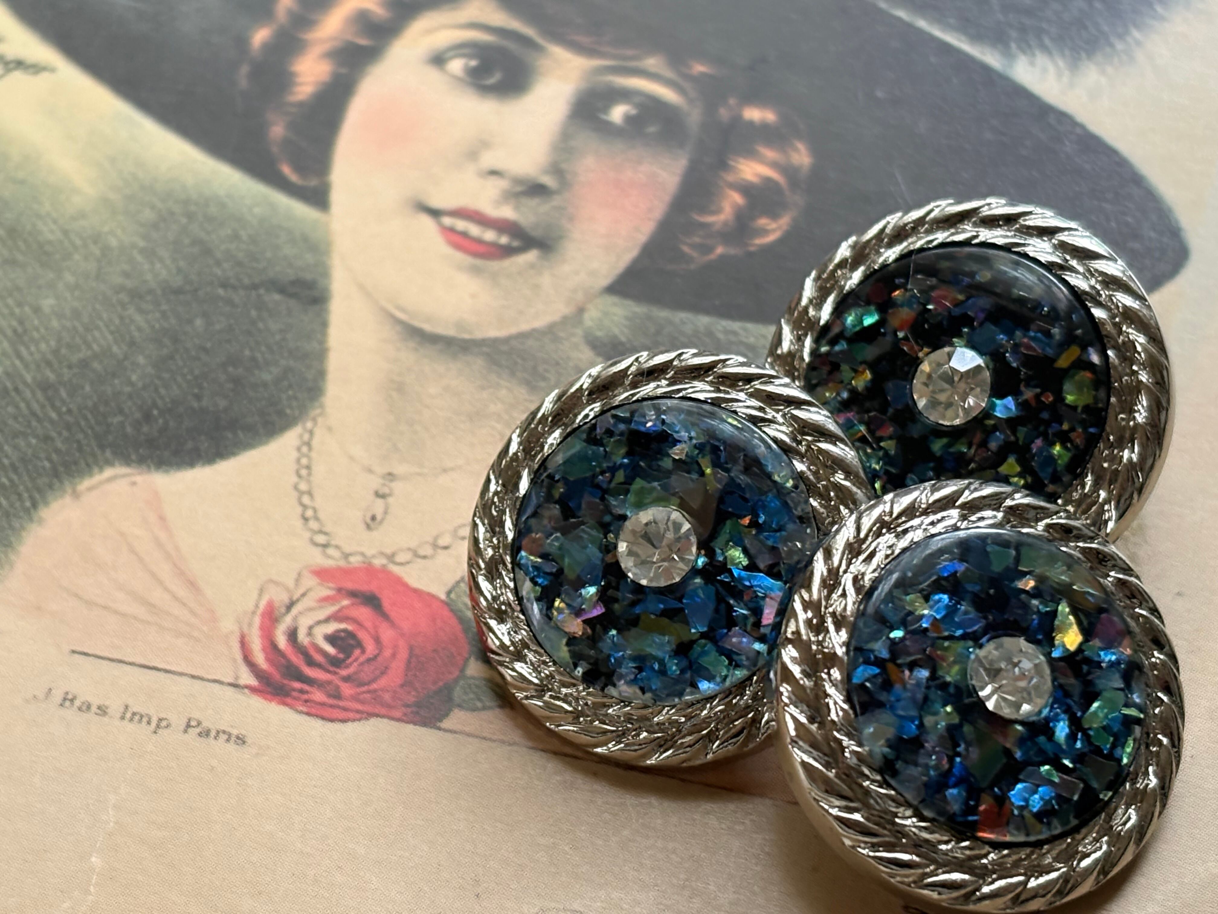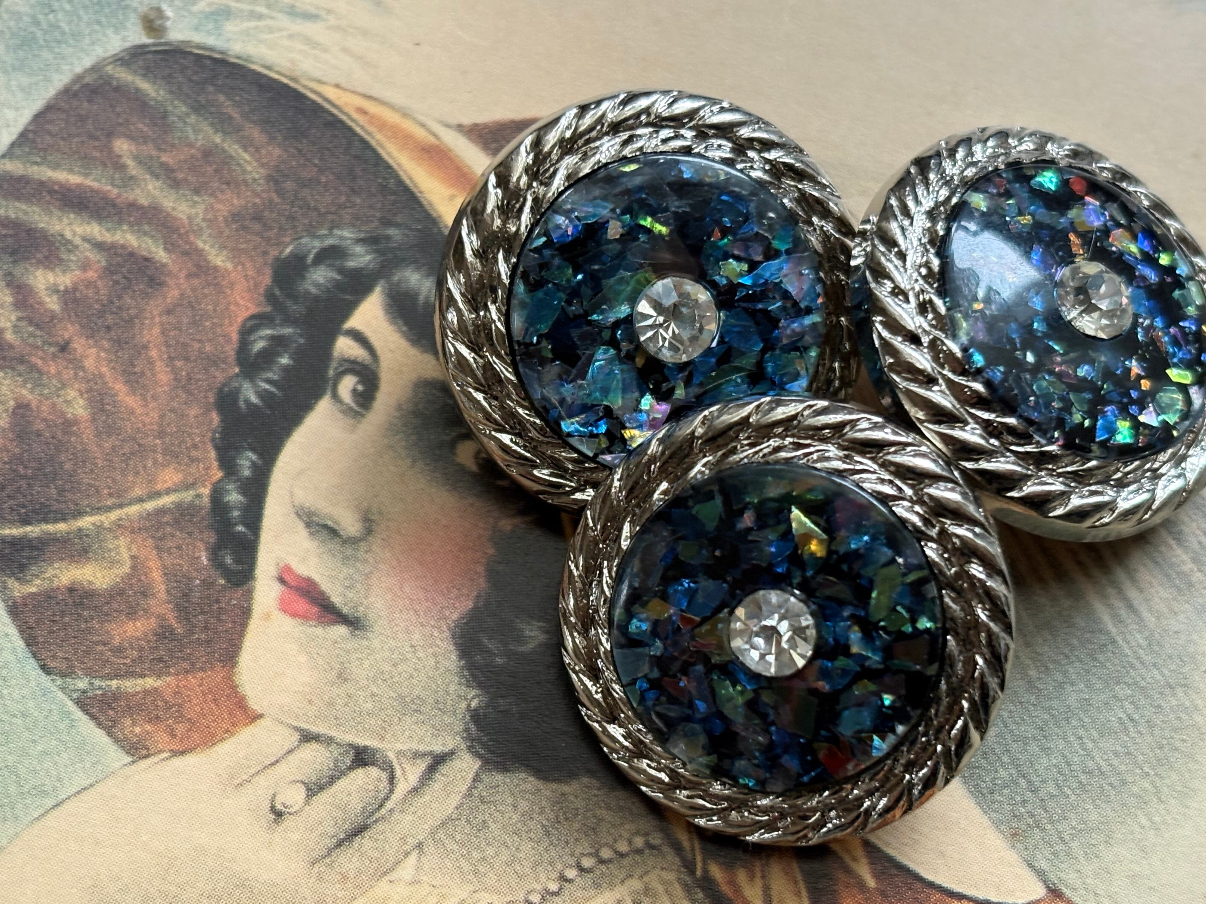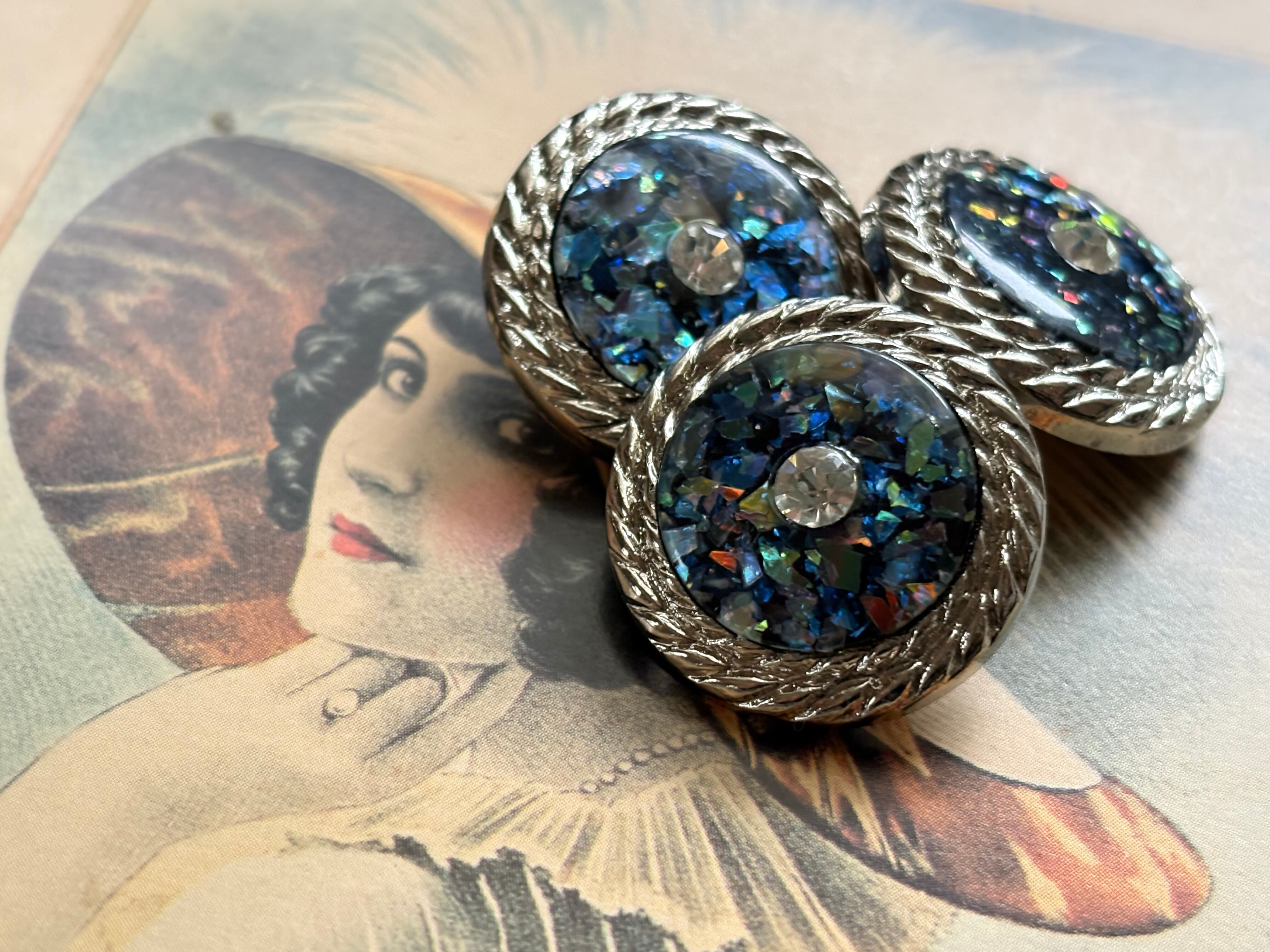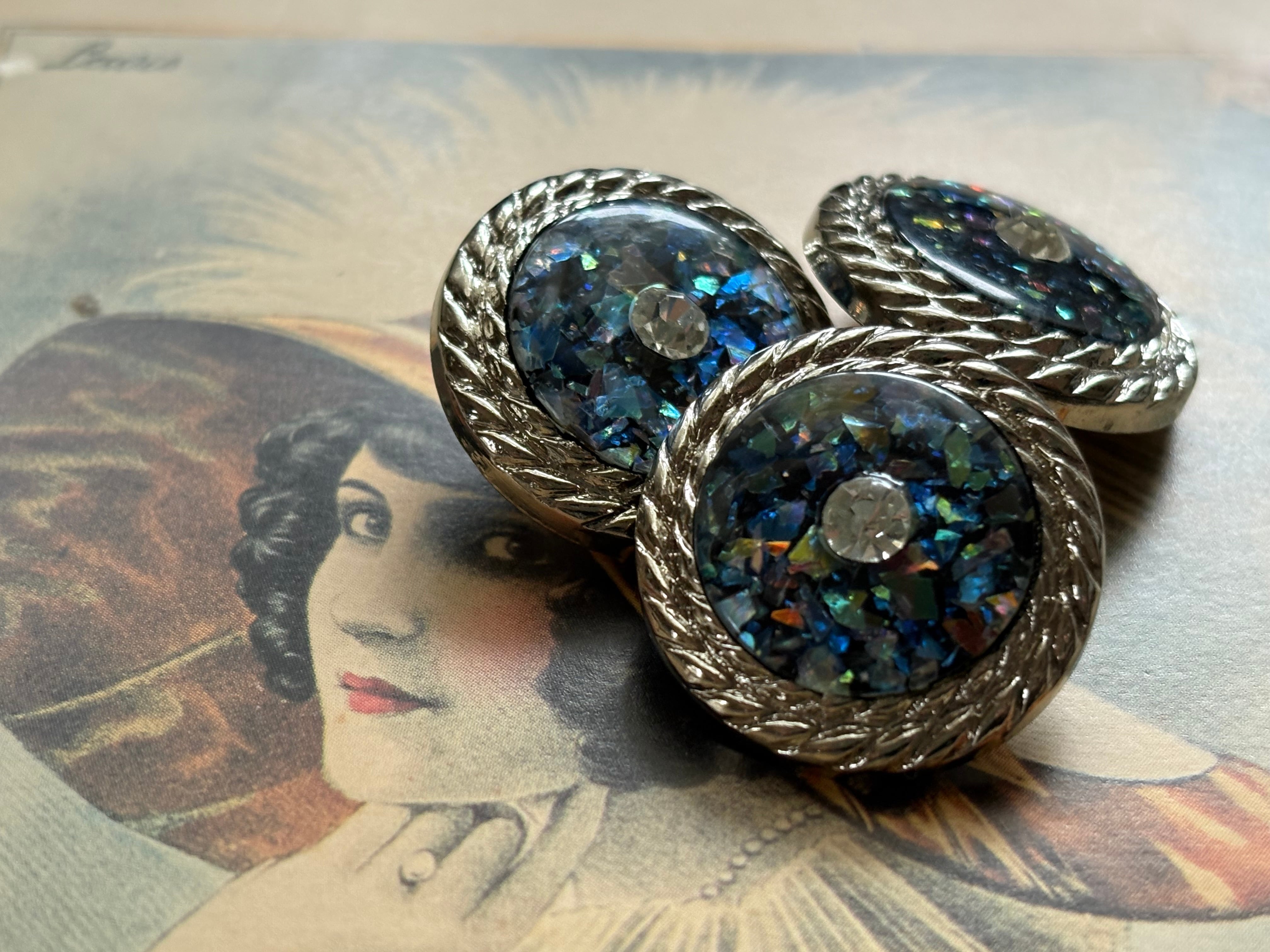 ホログラム、ストーンが輝く個性的で表情豊かなボタン。