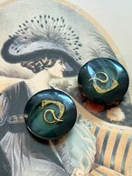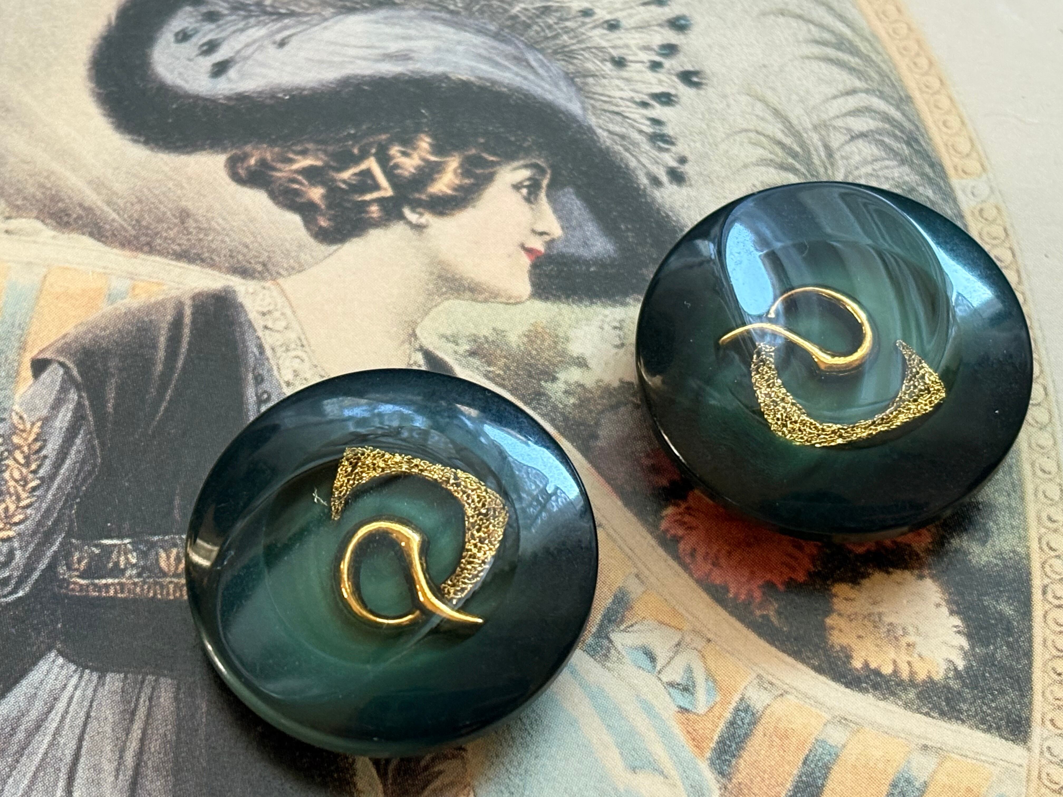 27mm Japaneseヴィンテージボタン レトロ ダークグリーン×ゴールド 樹脂ボタン アクセサリーパーツ デコレーション材 レトロボタン