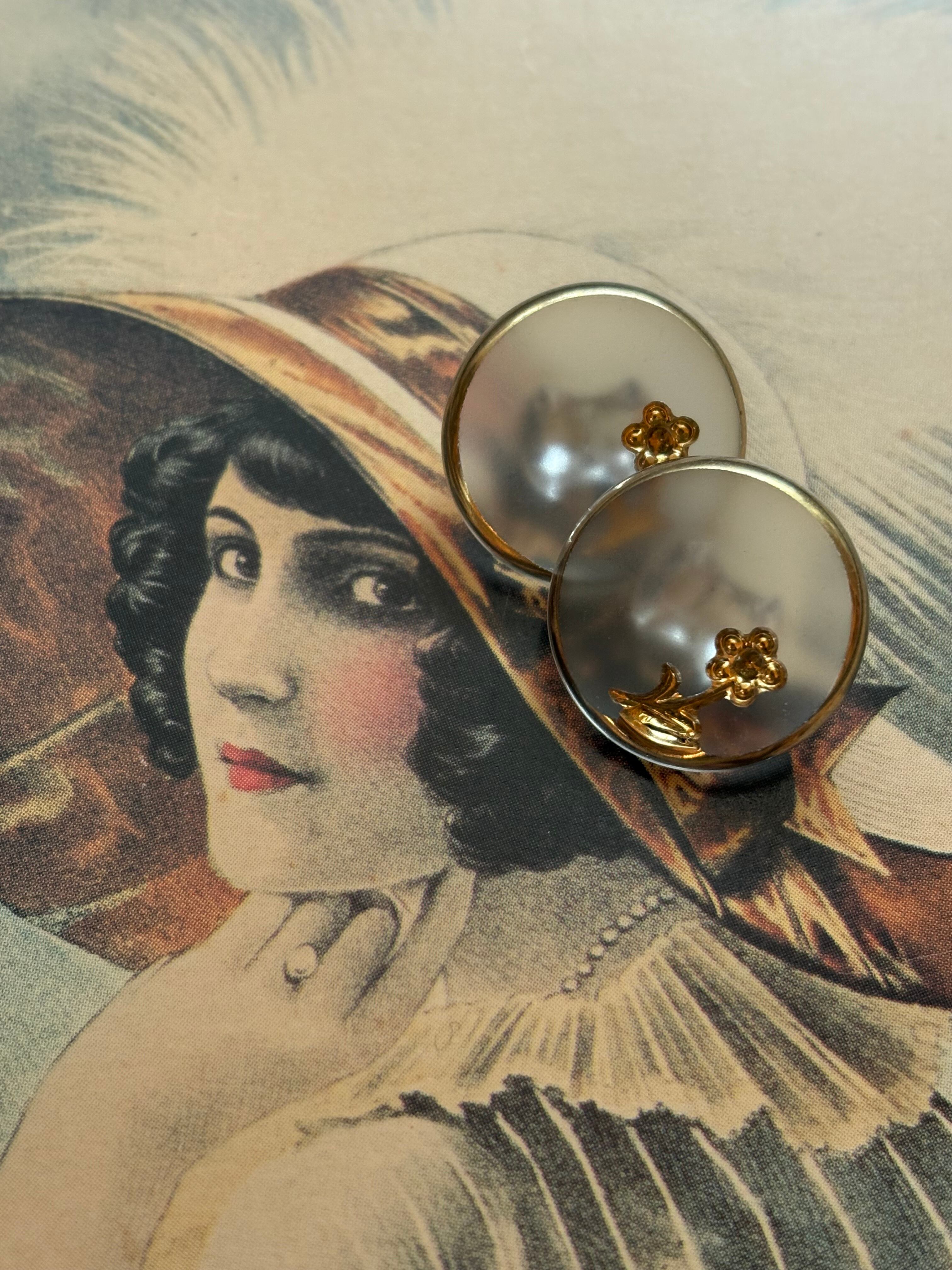 フロスト加工されたクリアボタンにゴールドのお花が一輪刻まれています。