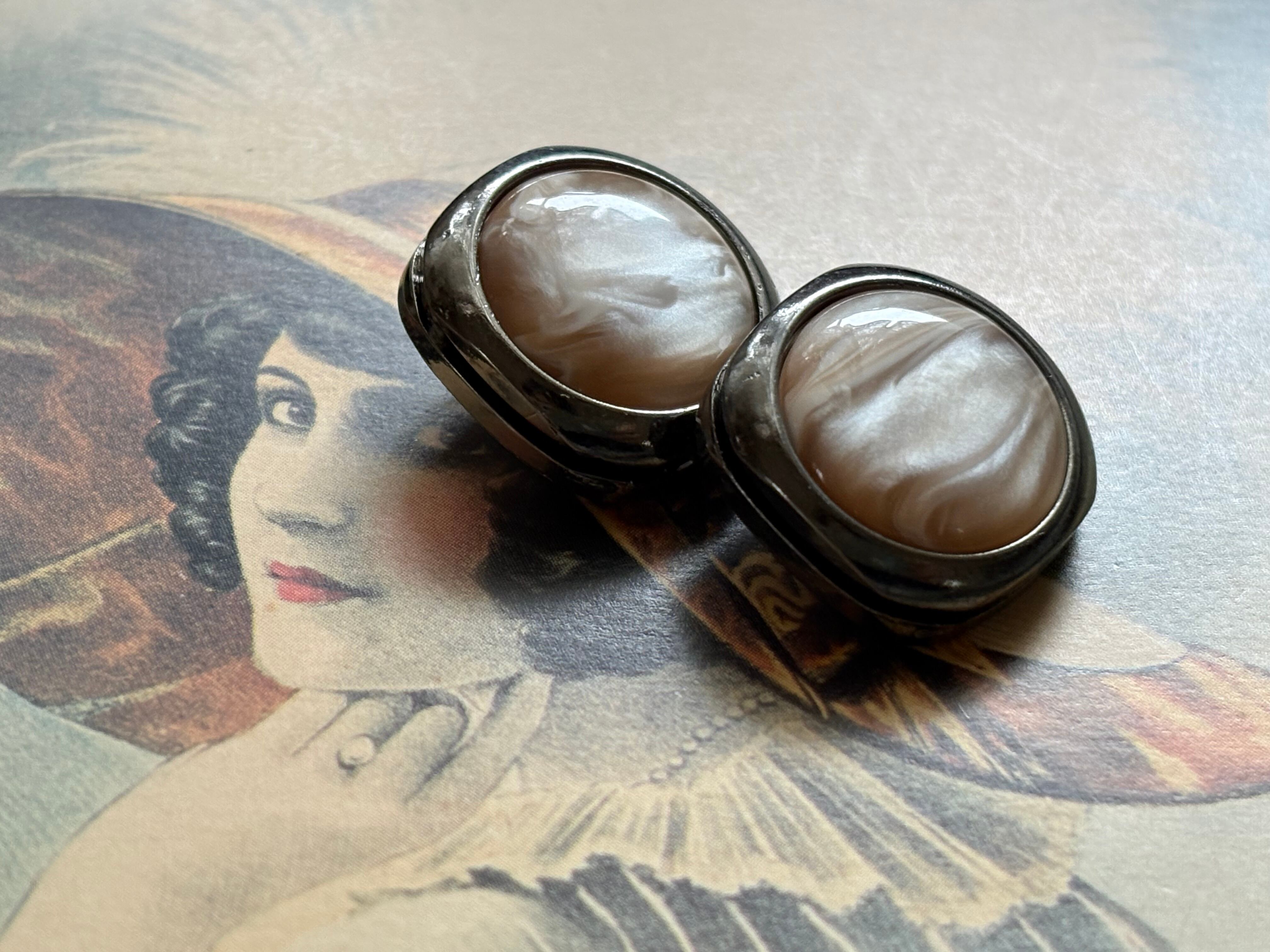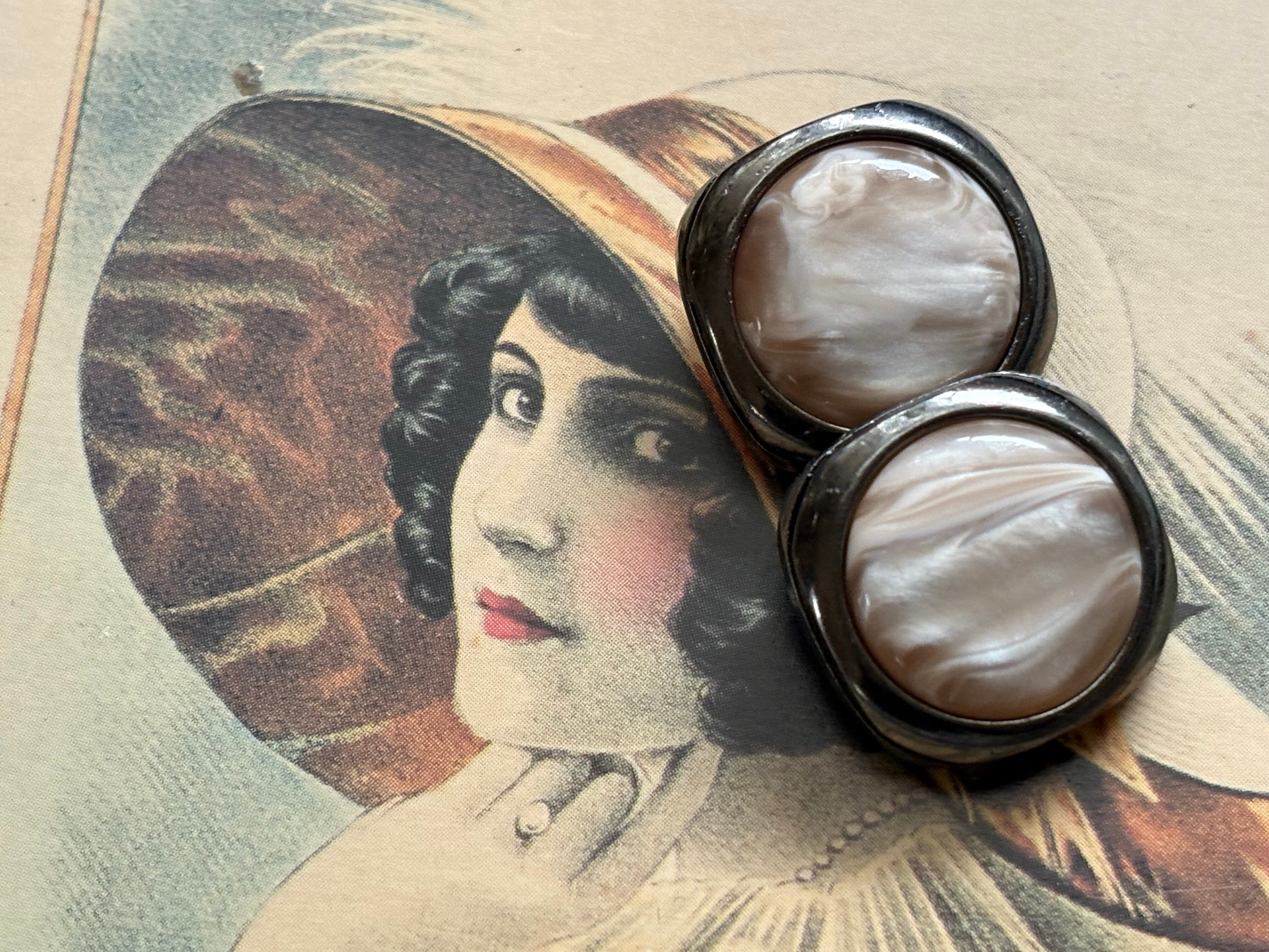 19mm Jaoanese ヴィンテージボタン マーブル調 ピンク×シルバー カボション アクセサリーパーツ 装飾材 カルトナージュ