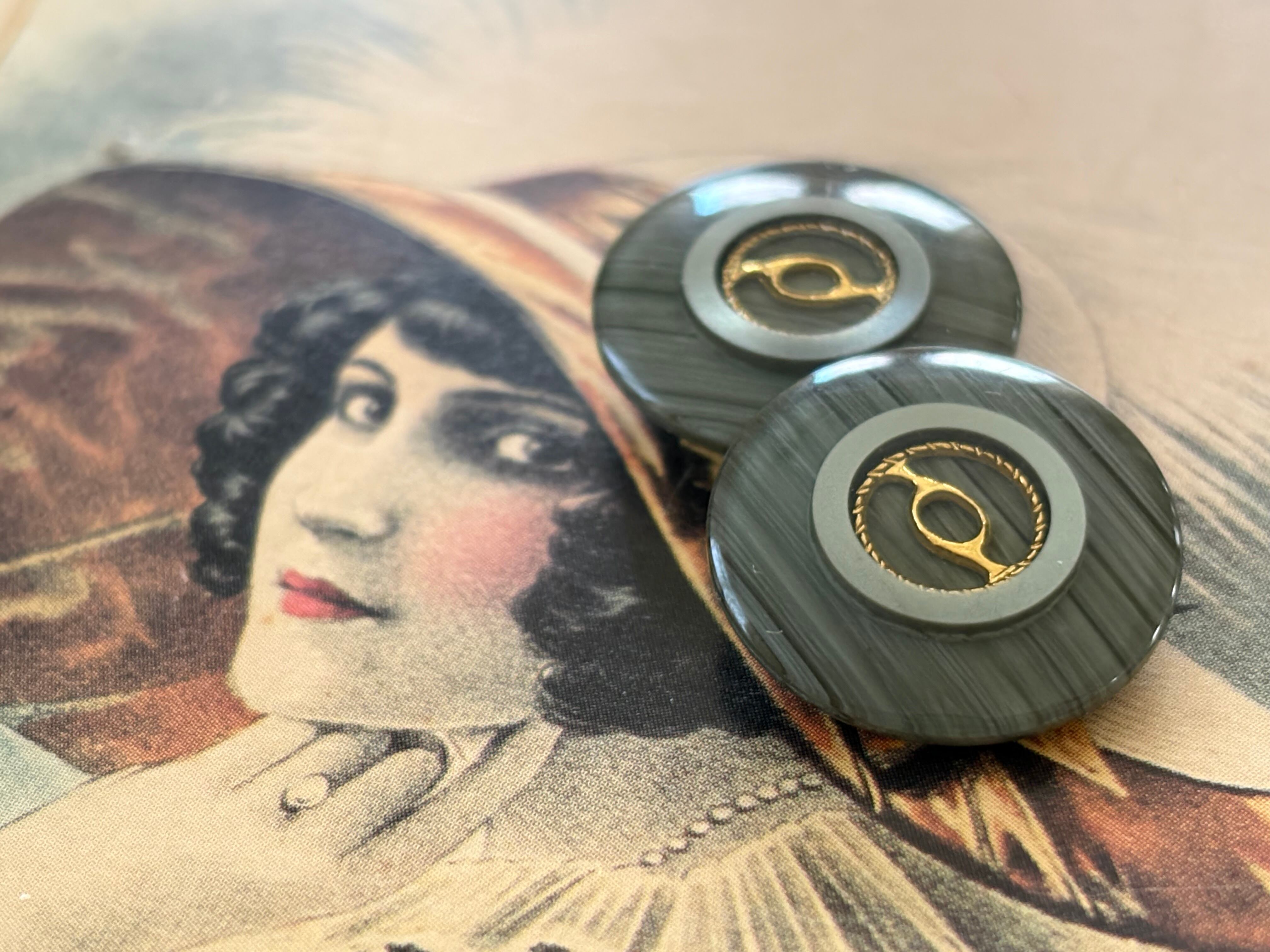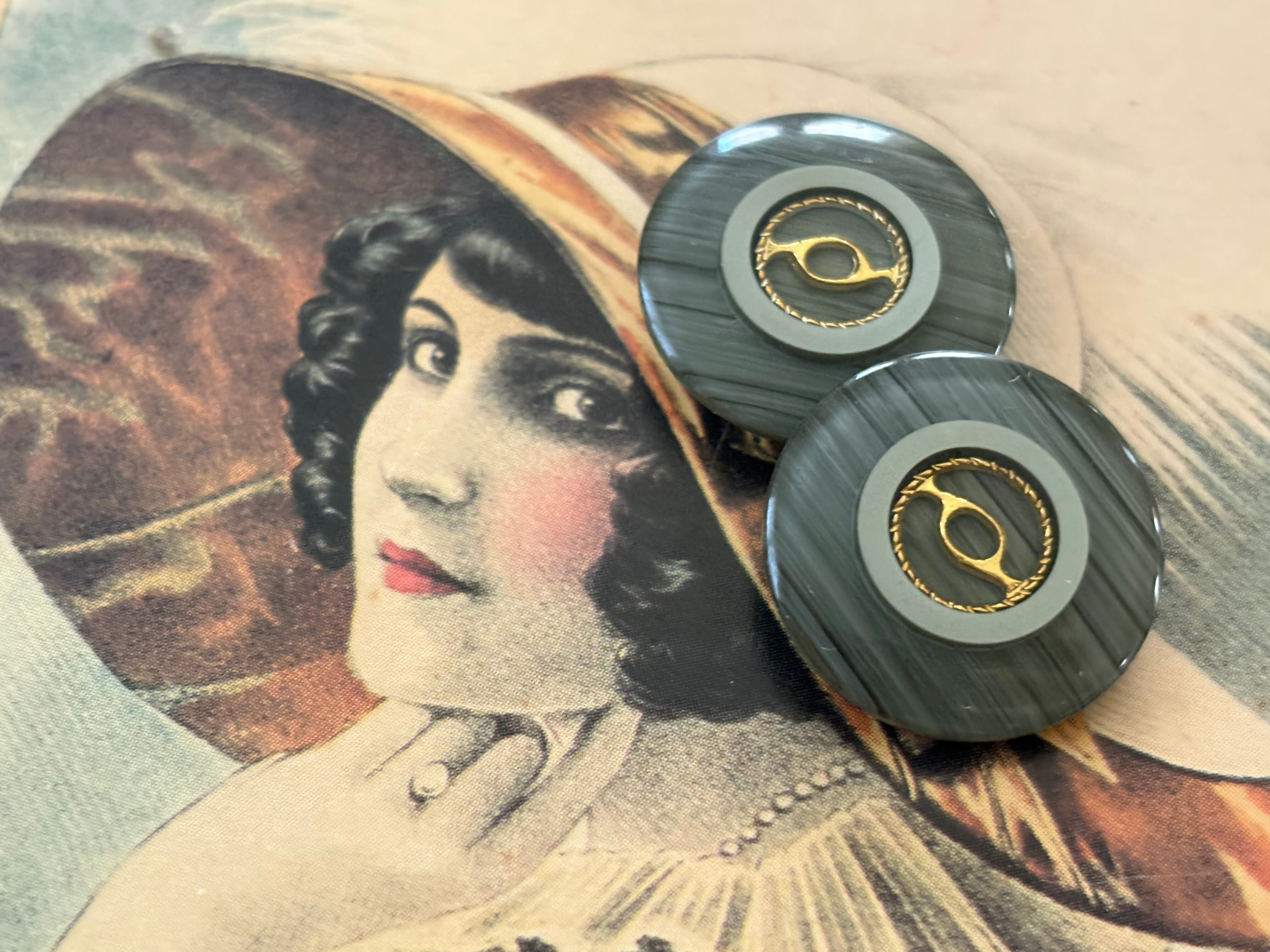 20mm Japanese ヴィンテージボタン グレー×ゴールド 大理石調 樹脂ボタン 昭和レトロ アクセサリーパーツ 装飾材 カルトナージュ