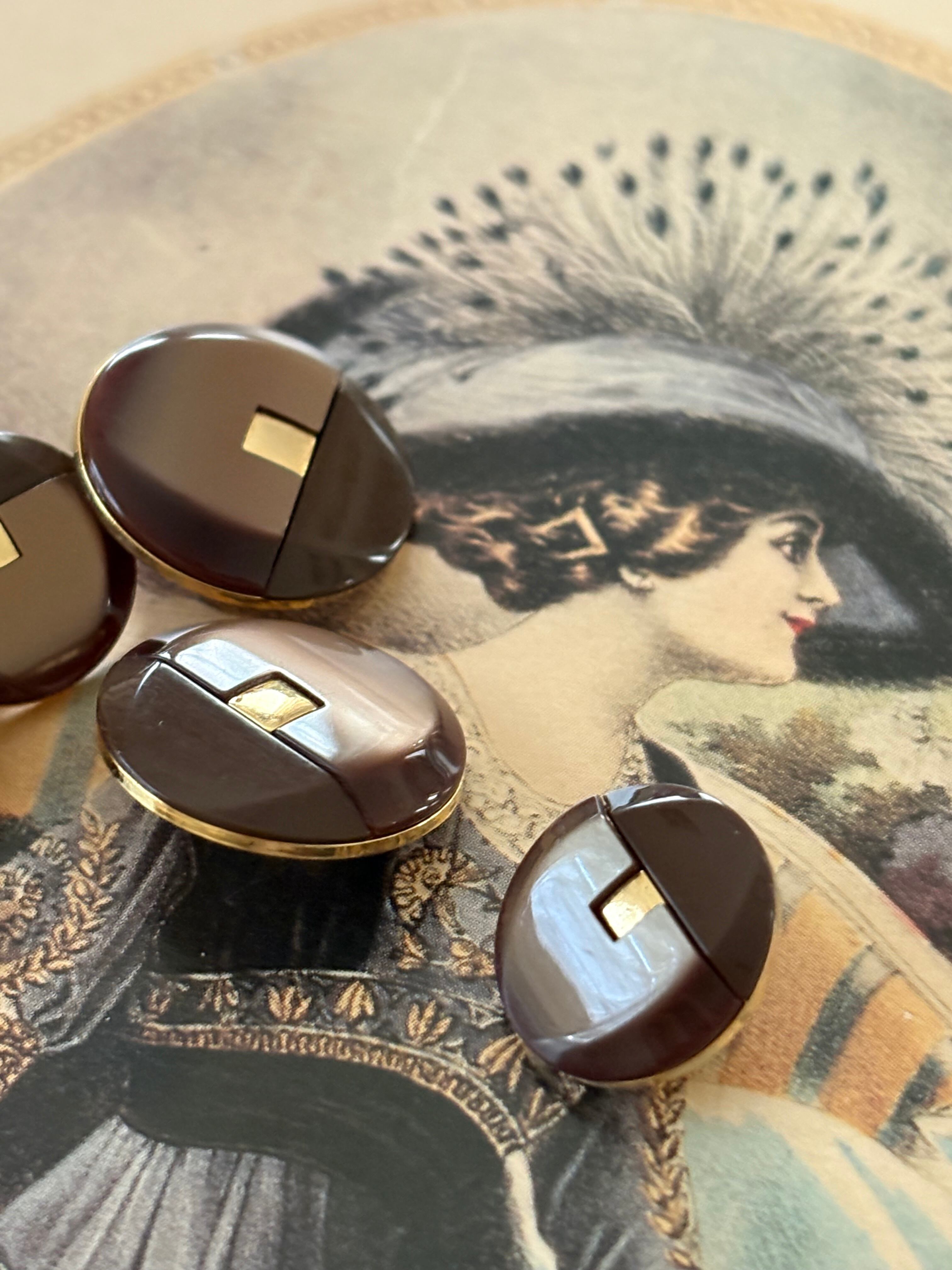 15mm Japanese ヴィンテージボタン ブラウン×ゴールド エレガントレトロ アクセサリーパーツ 装飾材 カルトナージュ