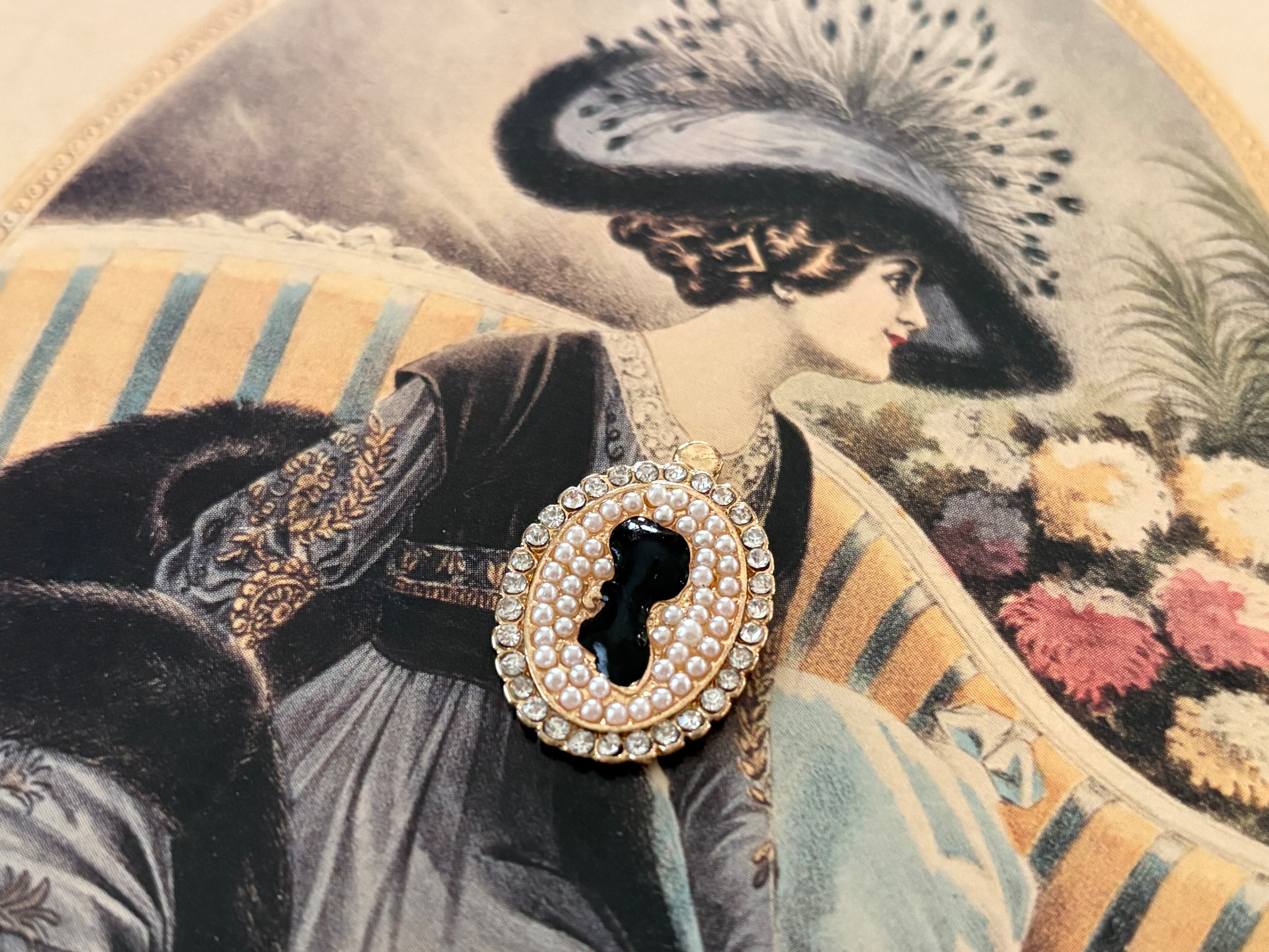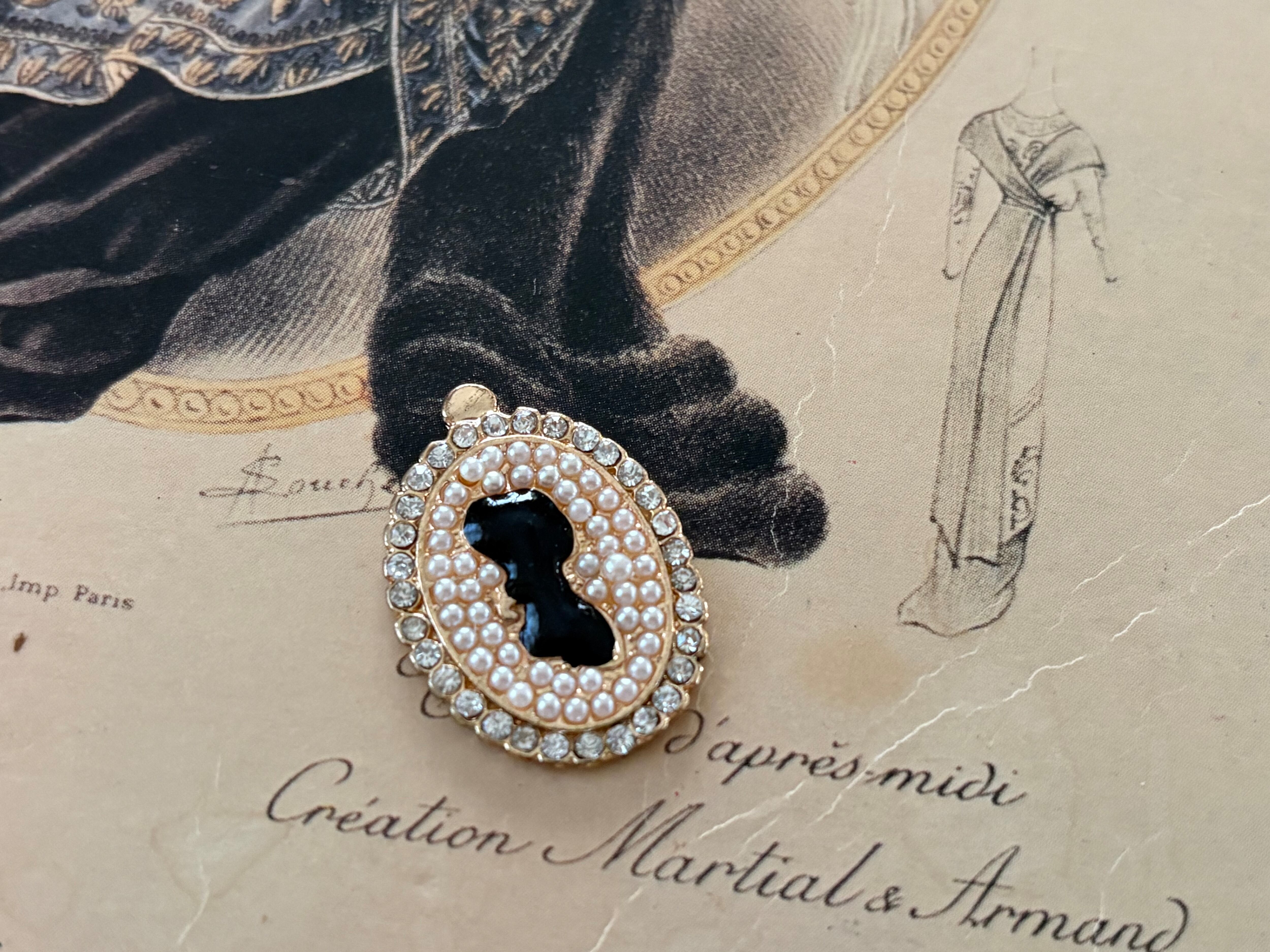 25mm×18mm 輸入デザインパーツ カメオ パール調ビーズ×ストーン メタル カルトナージュ アクセサリーパーツ