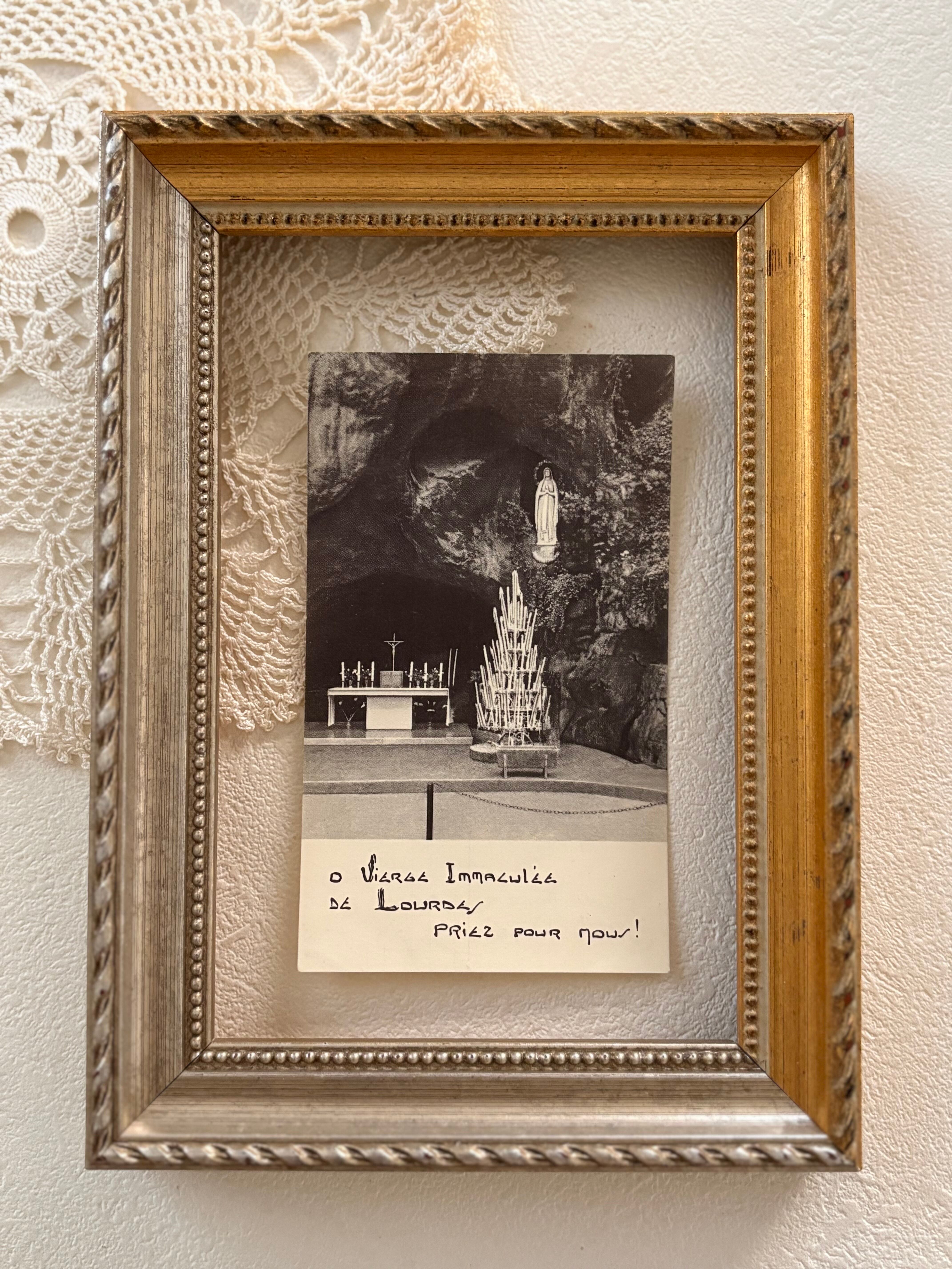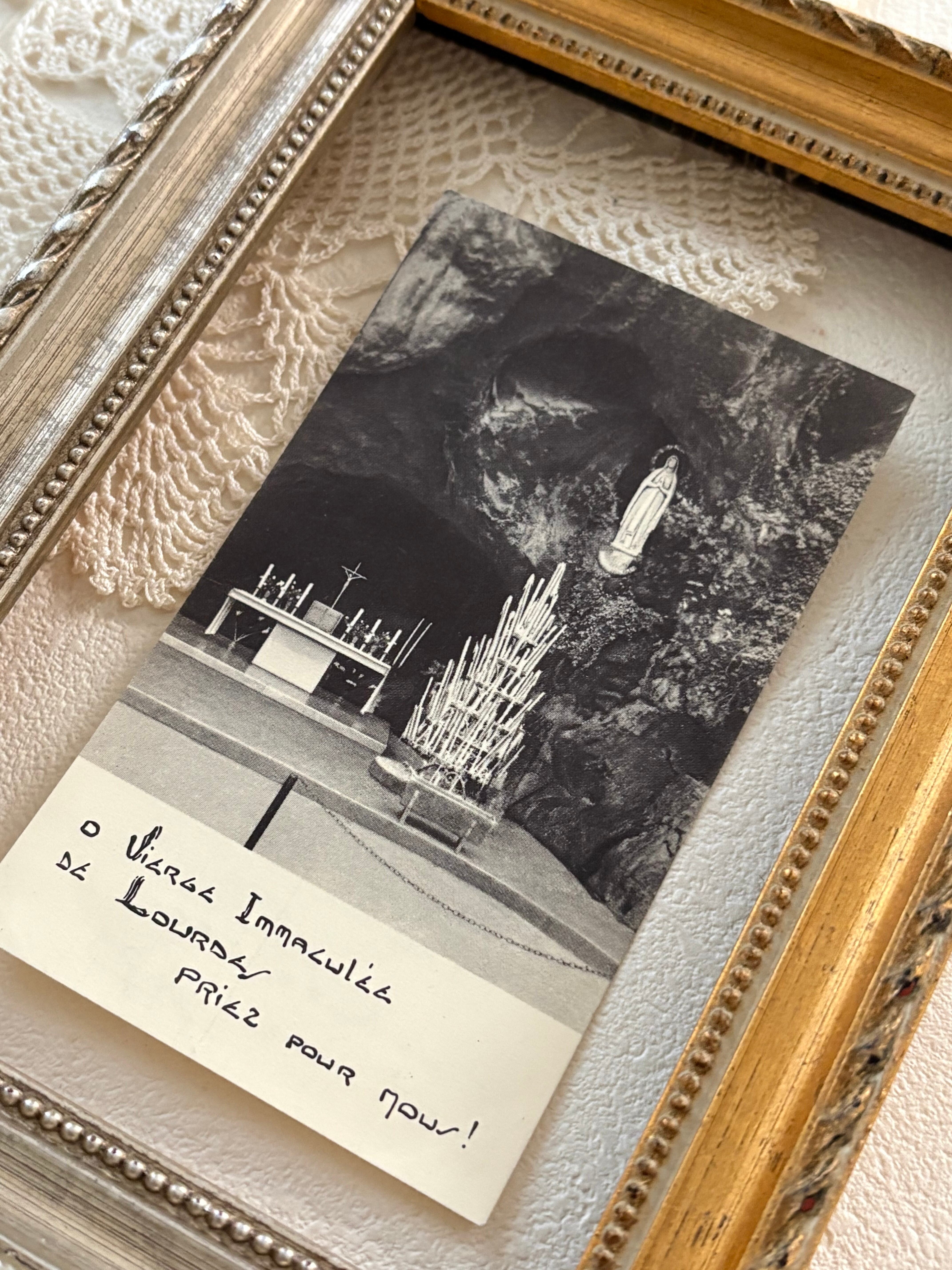 フランスアンティーク Holy Card ホーリーカード ルルドの泉 聖母マリア 額装 撮影小物 インテリア コレクション