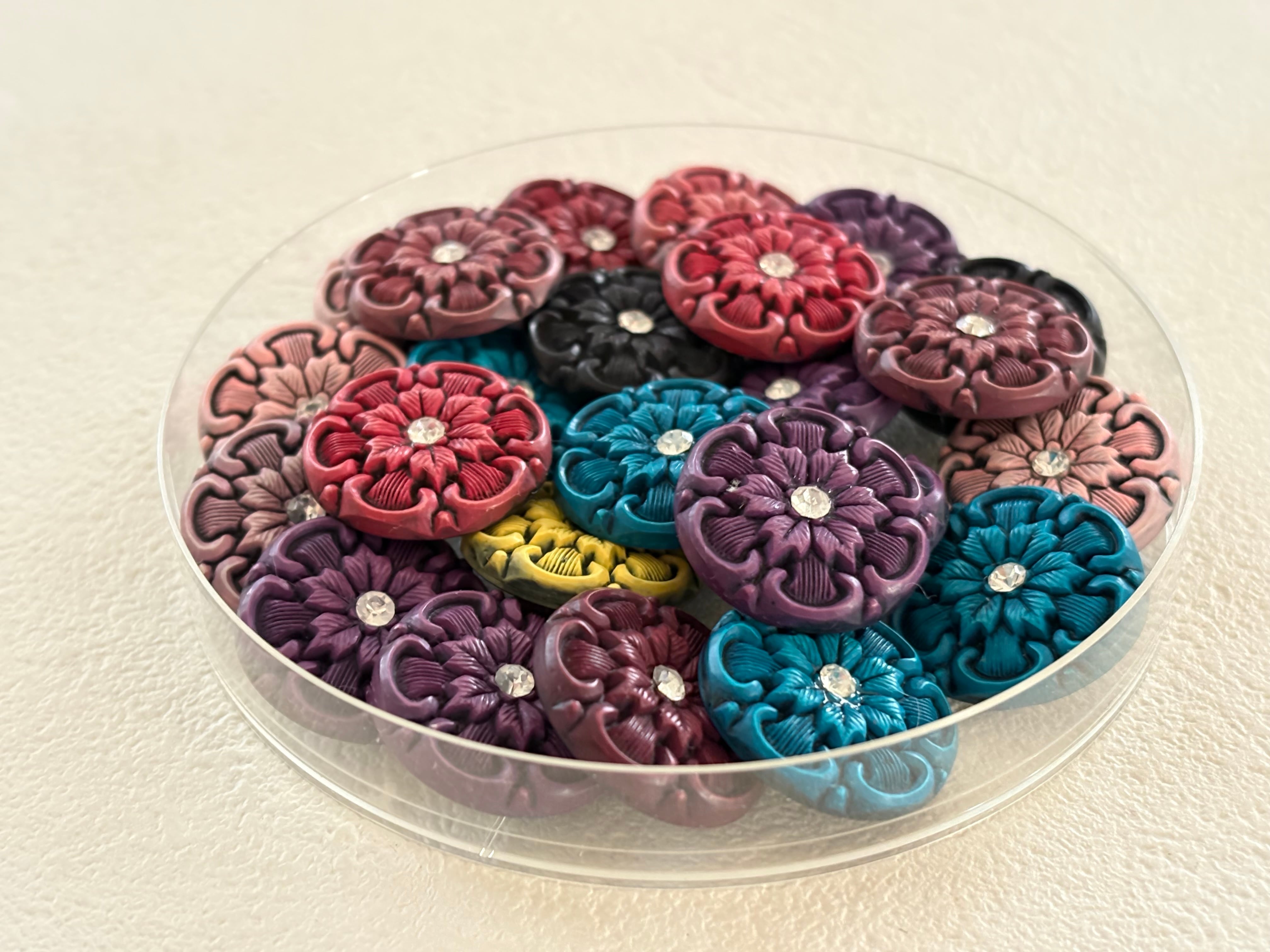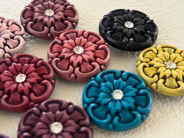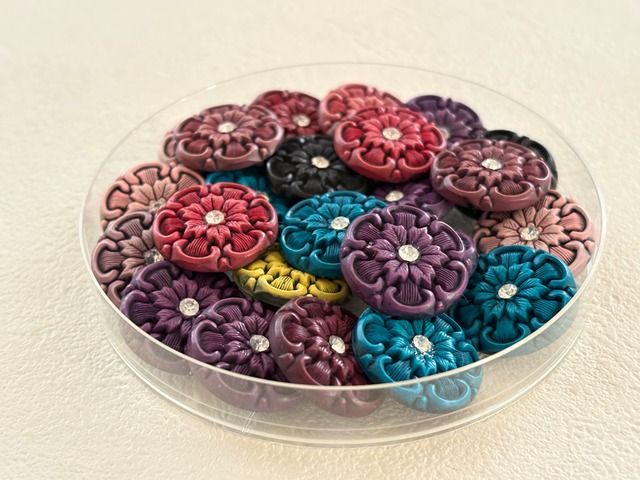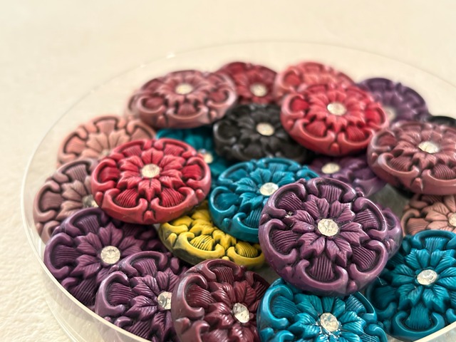 飾りボタンにはもちろんのこと、カルトナージュのデコレーション材として、アクセサリーパーツになど様々な用途でお役立て下さいませ。