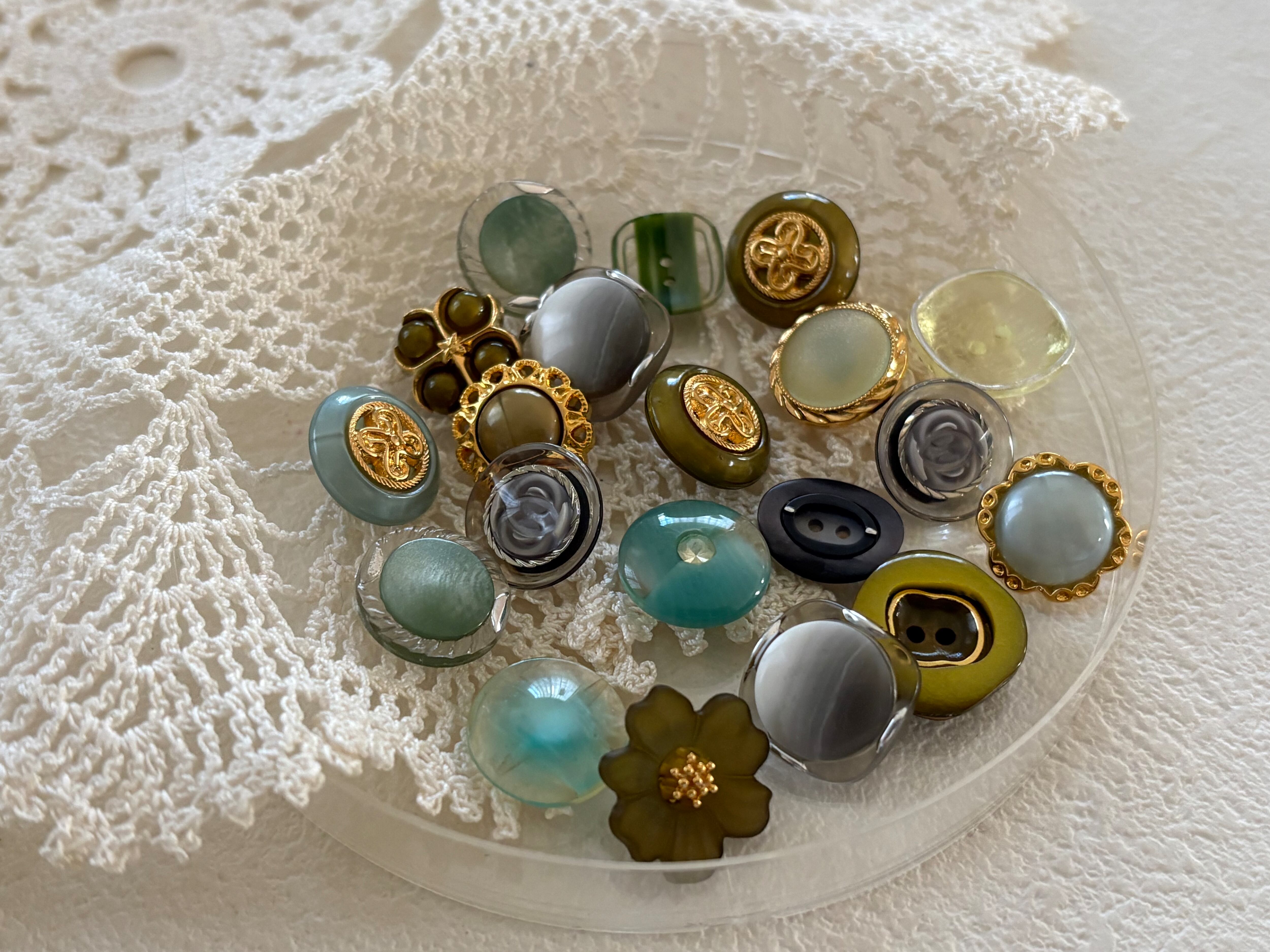 SALE 小さなVintageボタンセット C 20個入り アクセサリーパーツ 染めボタン レトロボタン デコレーション材