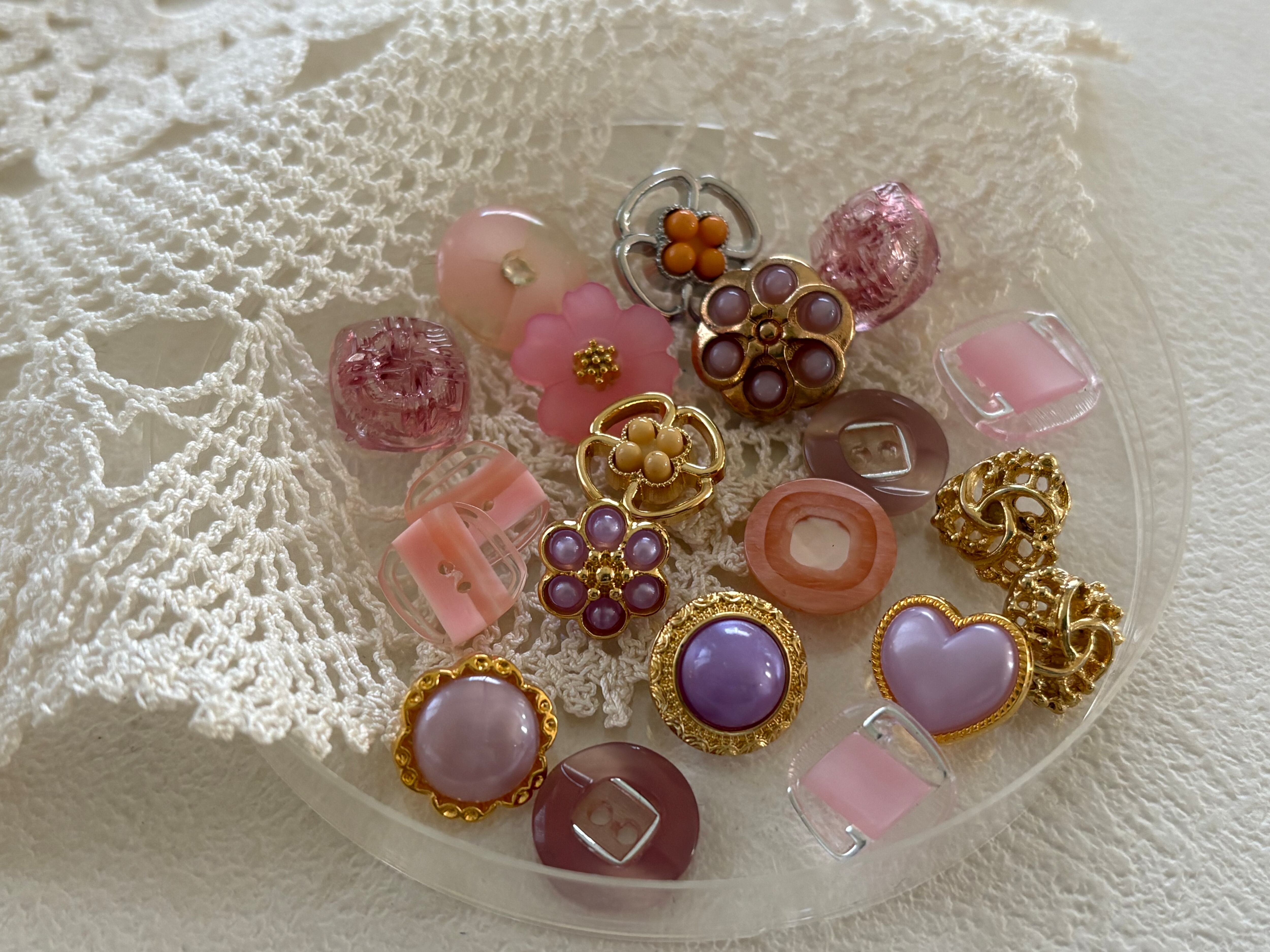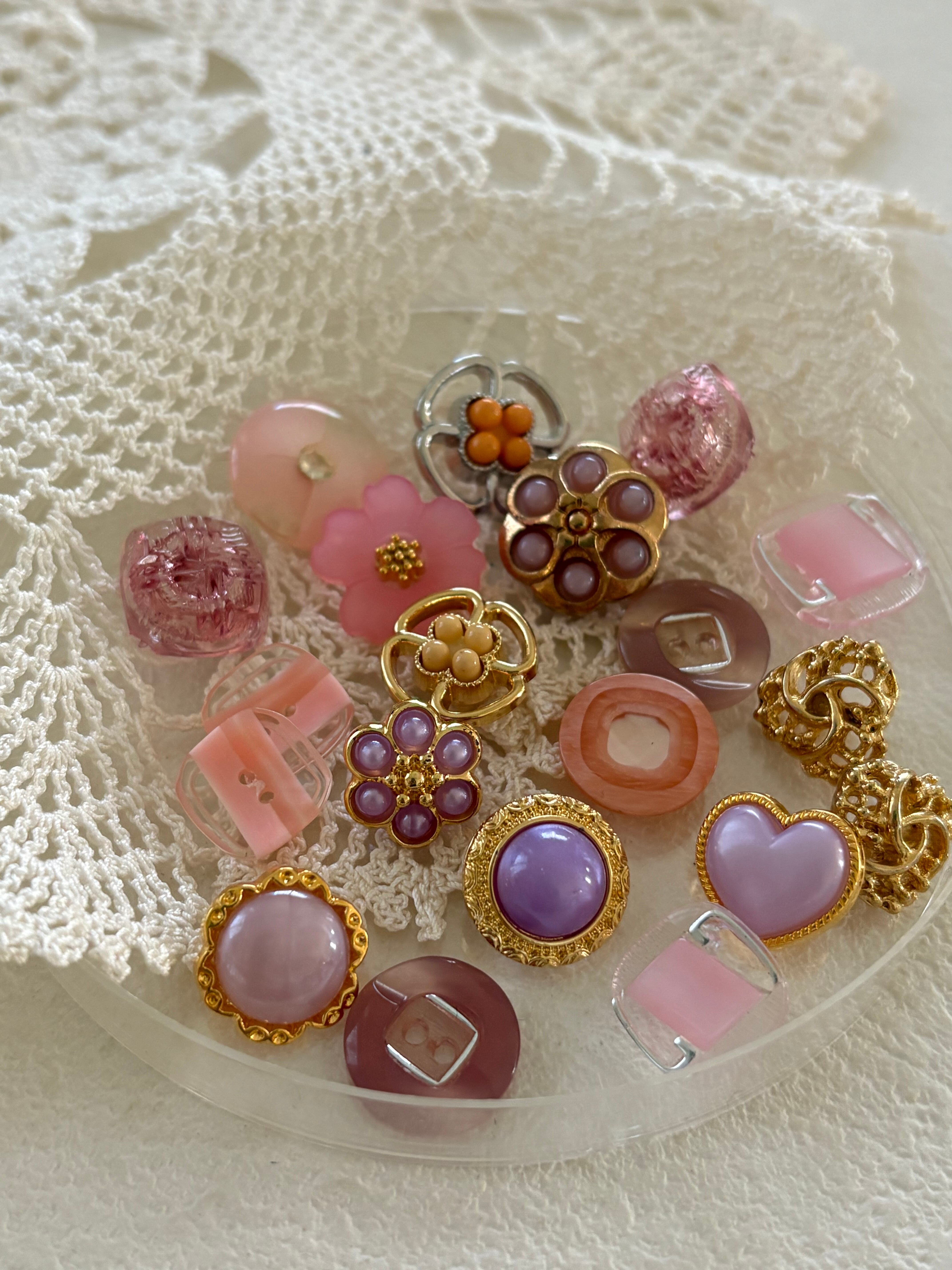 飾りボタンとしては勿論のことアクセサリーパーツとして、カルトナージュのデコレーション材になど様々な用途でお役立て下さいませ。