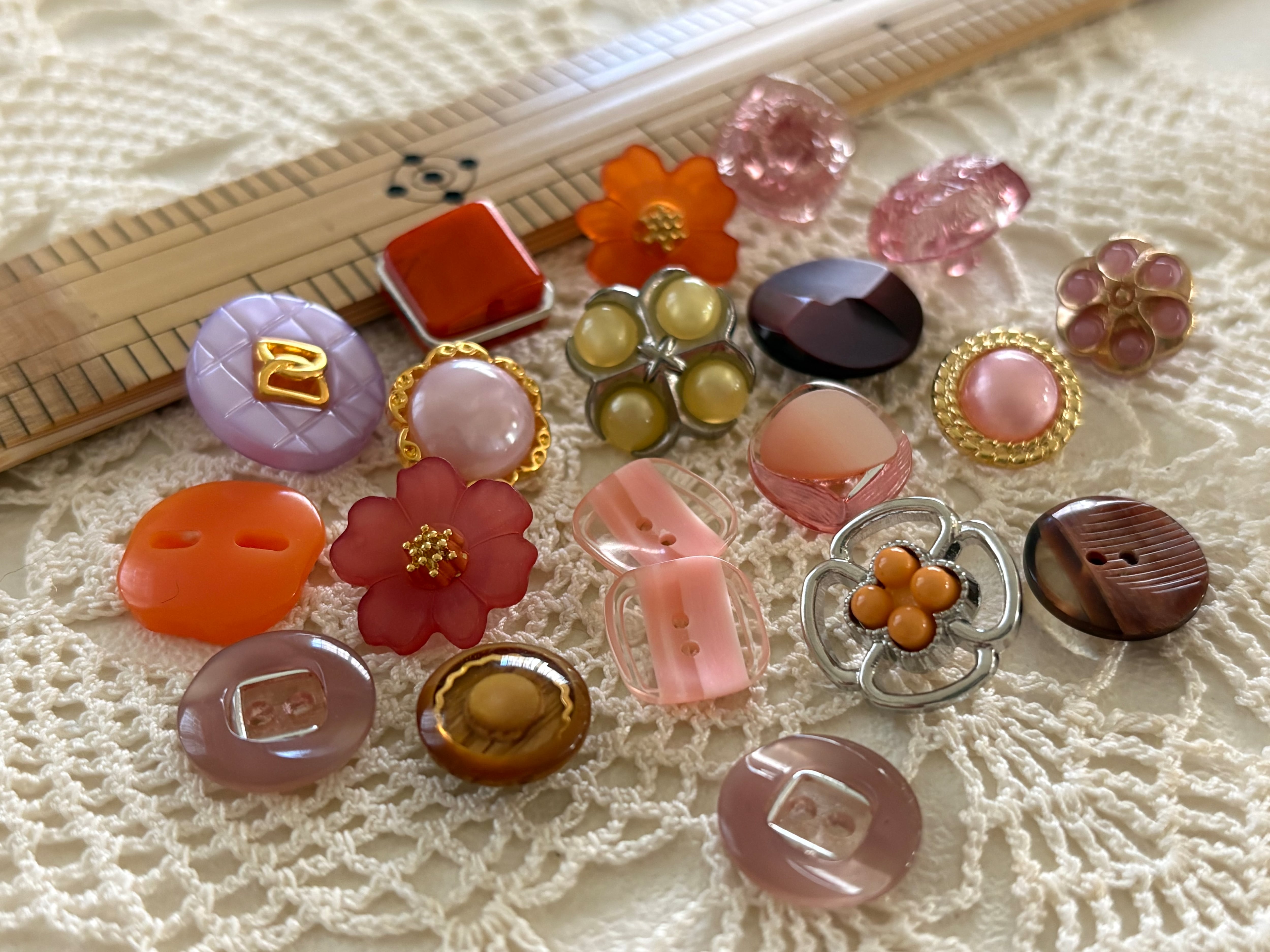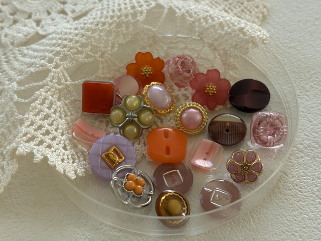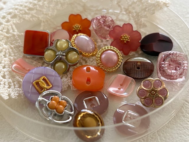 SALE 小さなVintageボタンセット J 20個入り アクセサリーパーツ 染めボタン レトロボタン デコレーション材