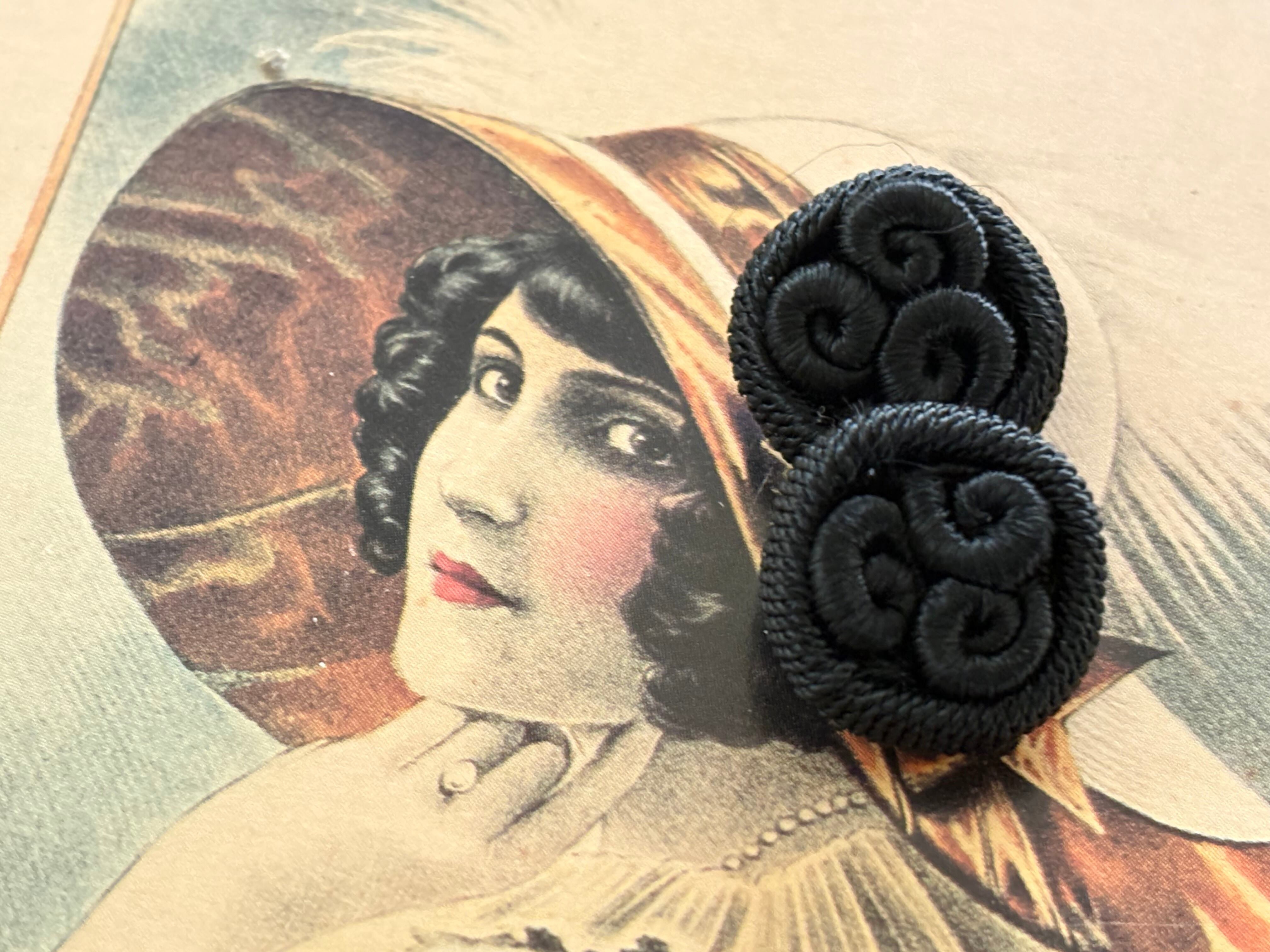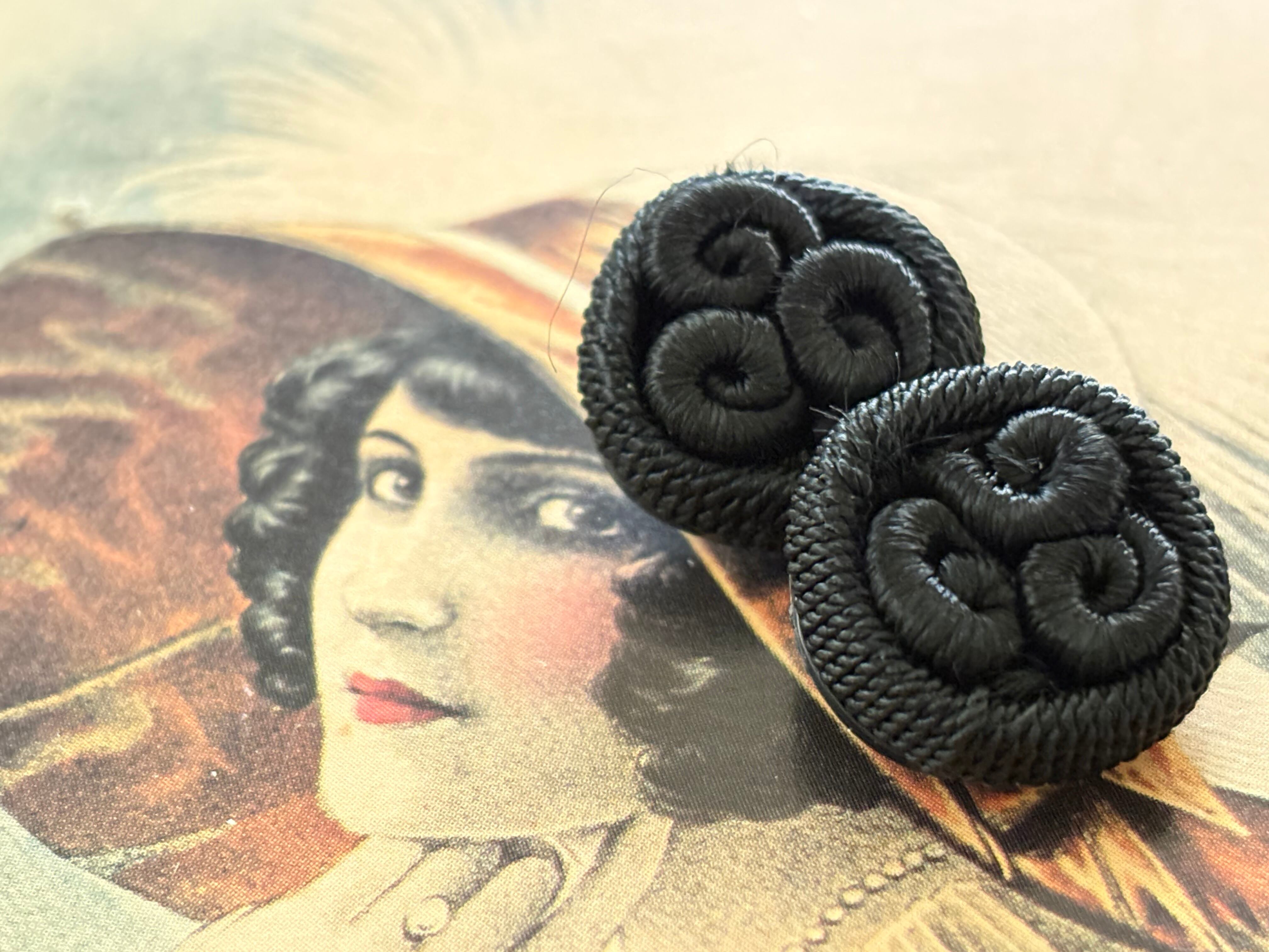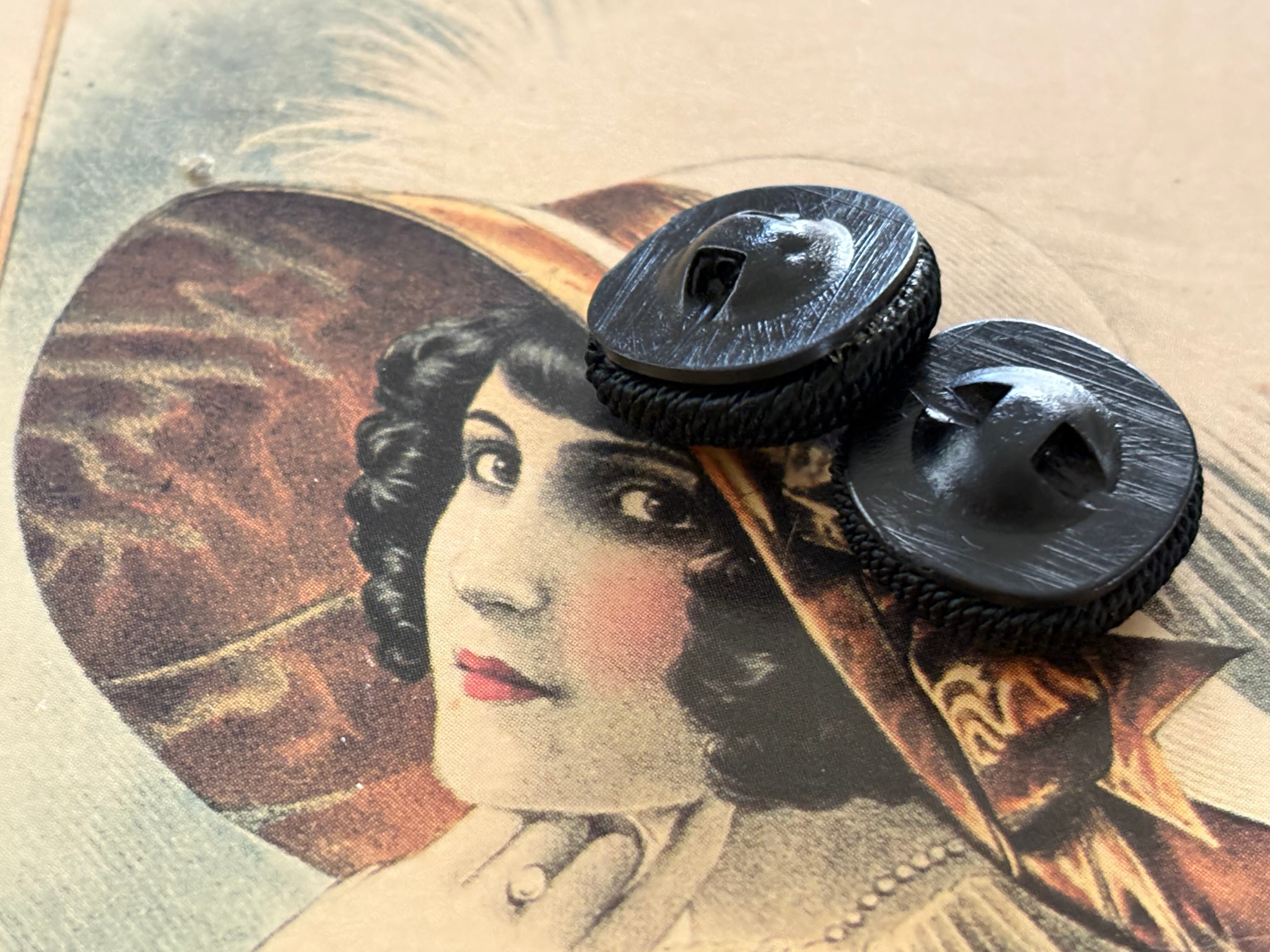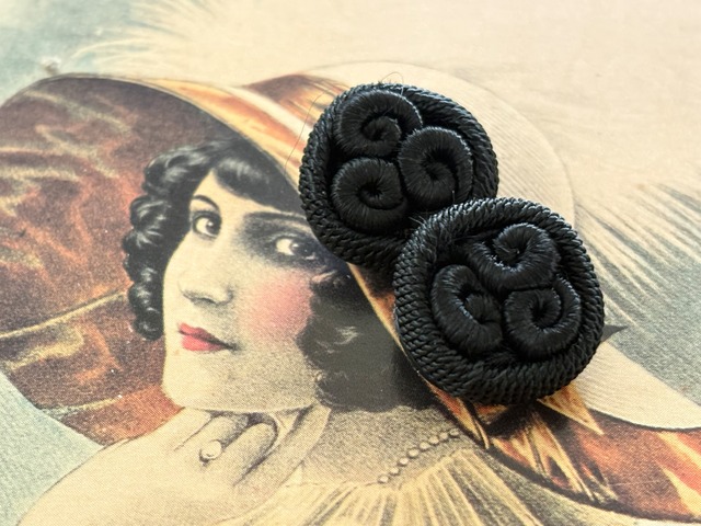 18mm Japanese Vintage ボタン コードボタン ブラック デッドストック アクセサリーパーツ 装飾材 カルトナージュ
