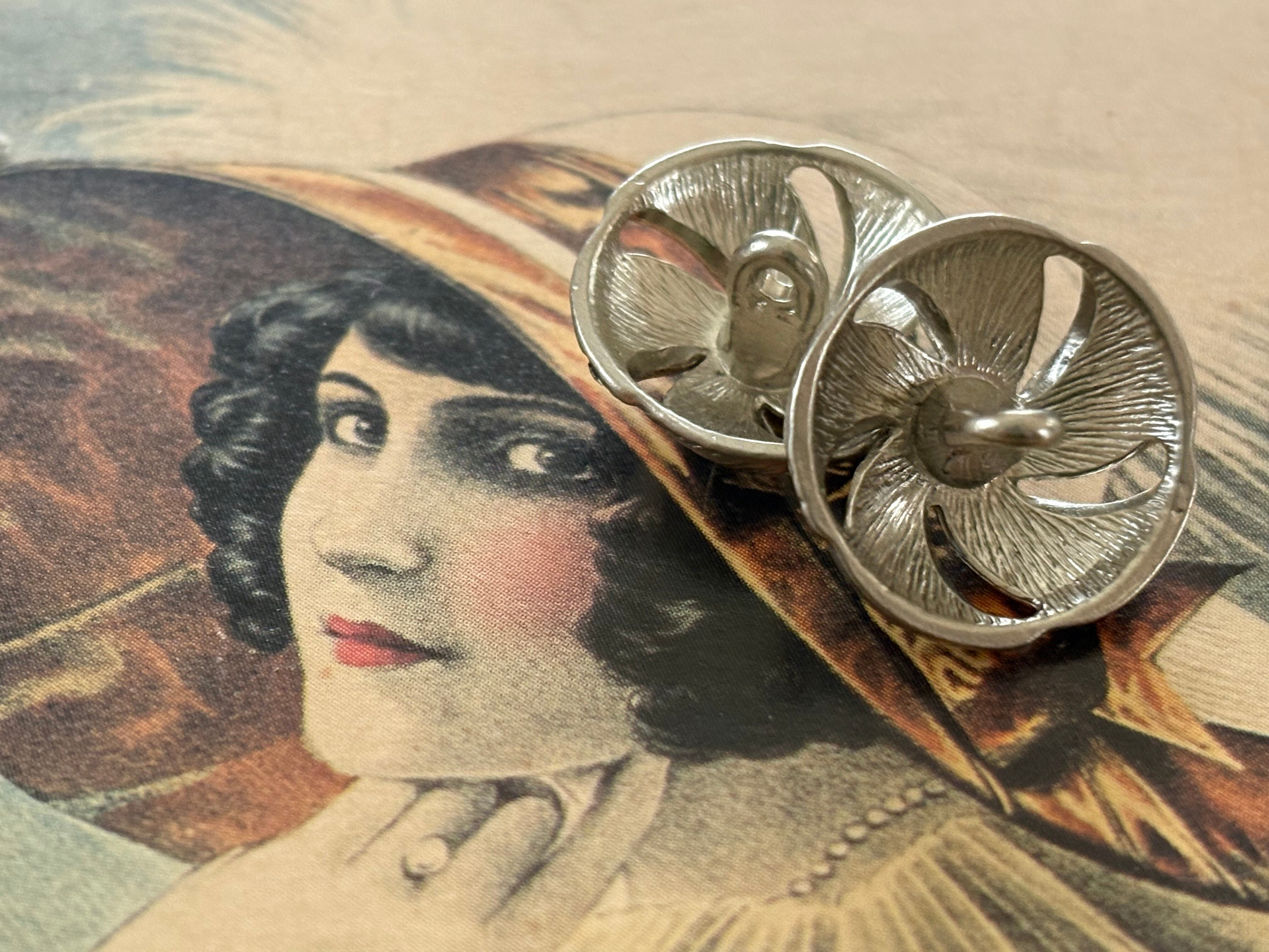 ファンのようなお花のような美しいシルバーカラーのメタル製ボタン。