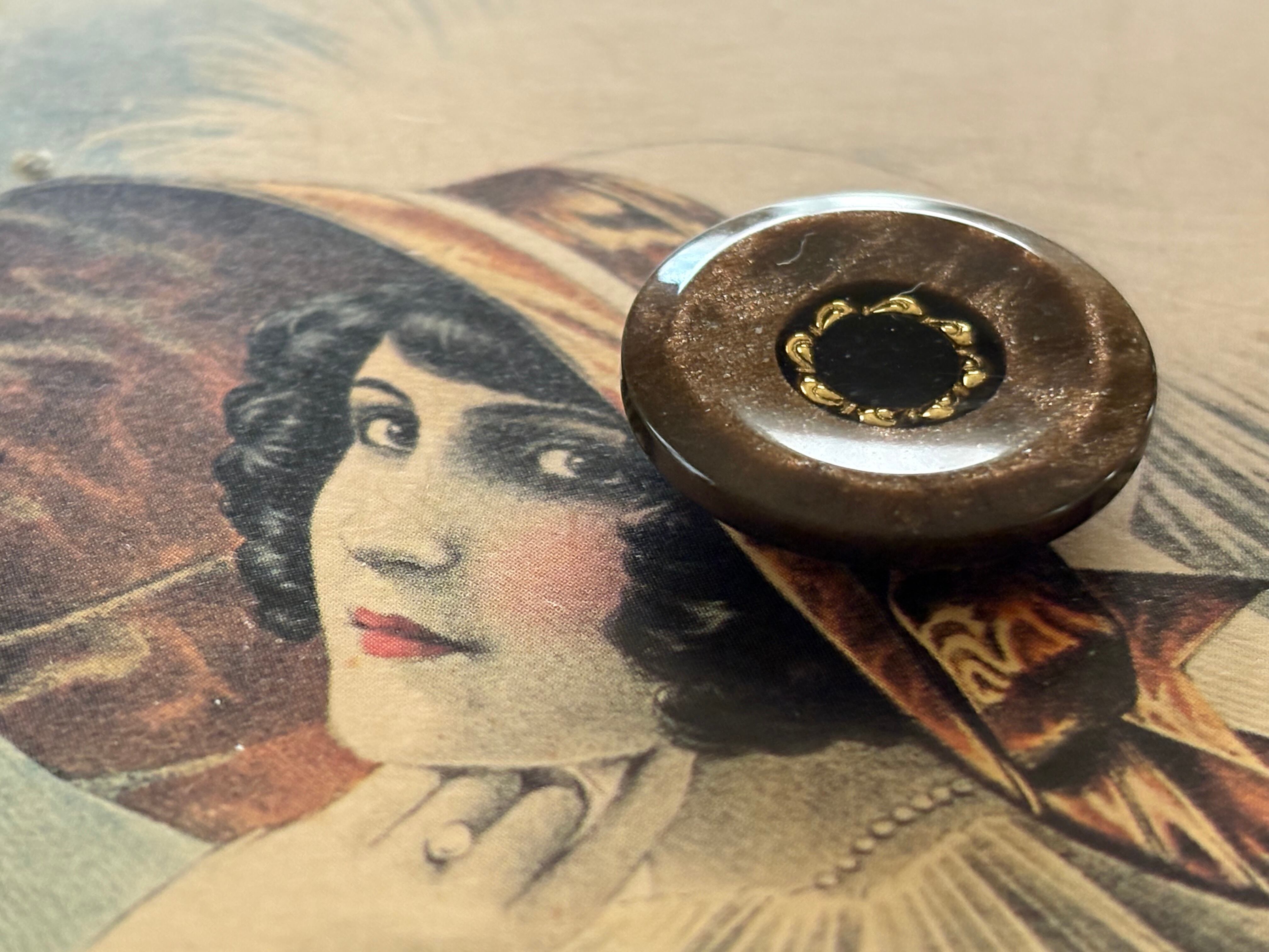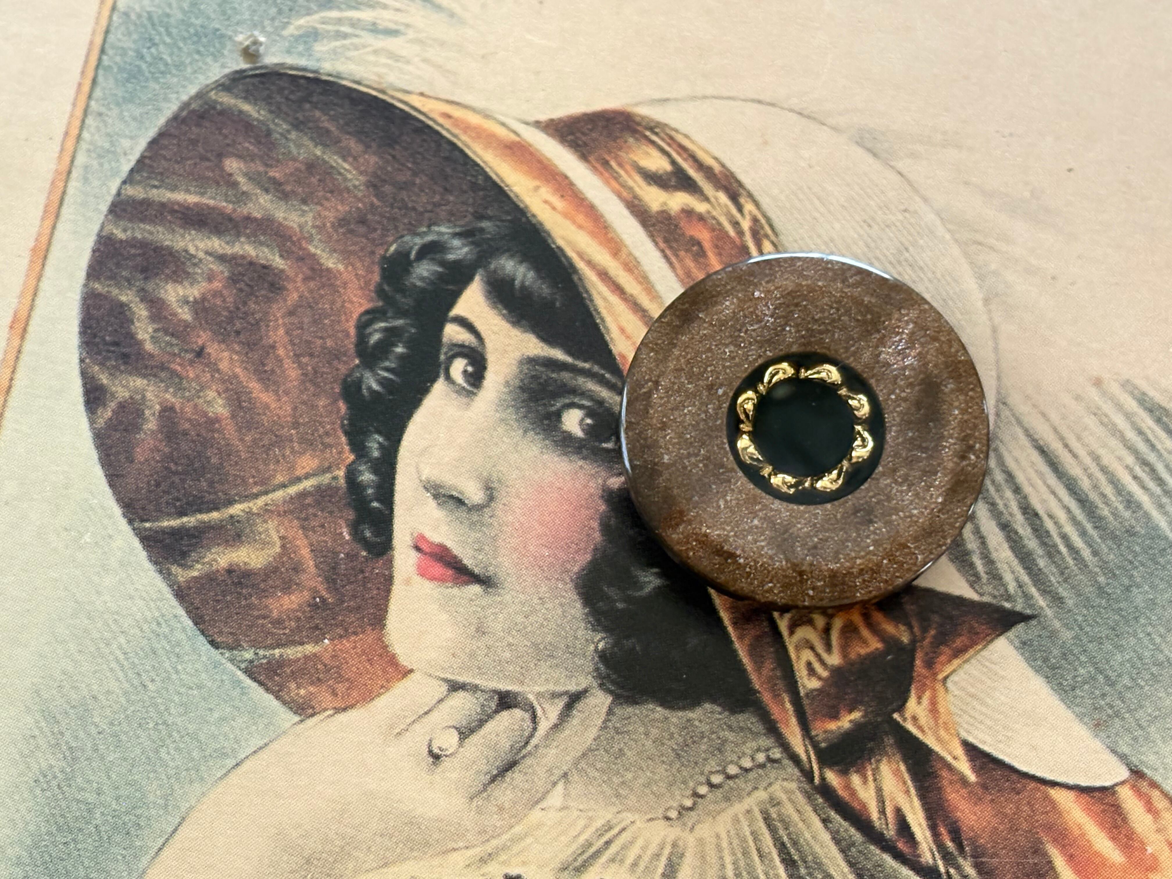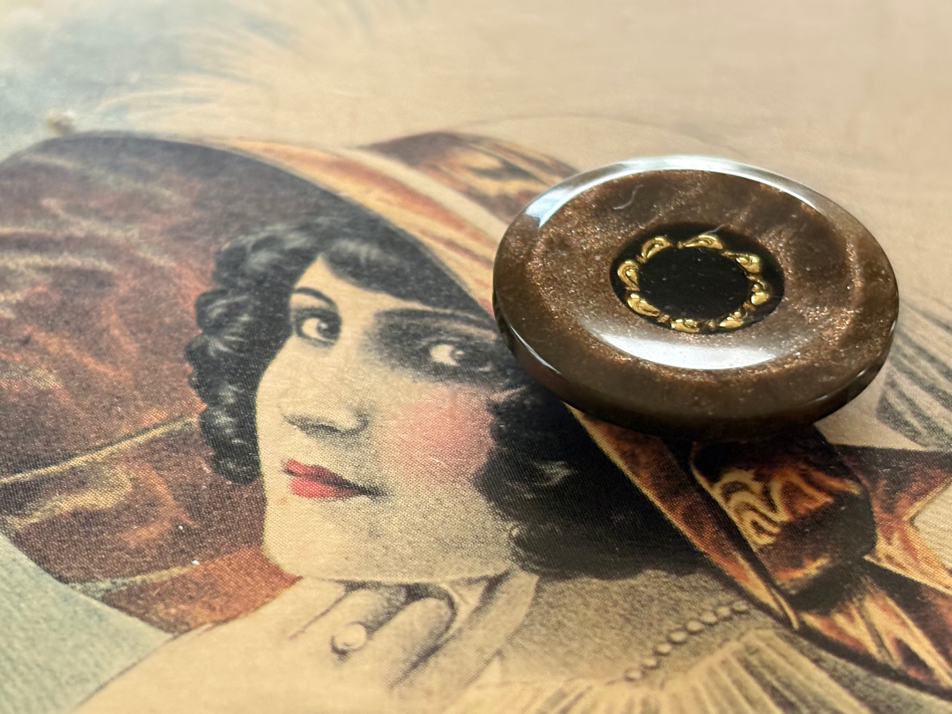 23mm Japanese ヴィンテージボタン ブラウン×ゴールド レトロ アクセサリーパーツ 装飾材 カルトナージュ