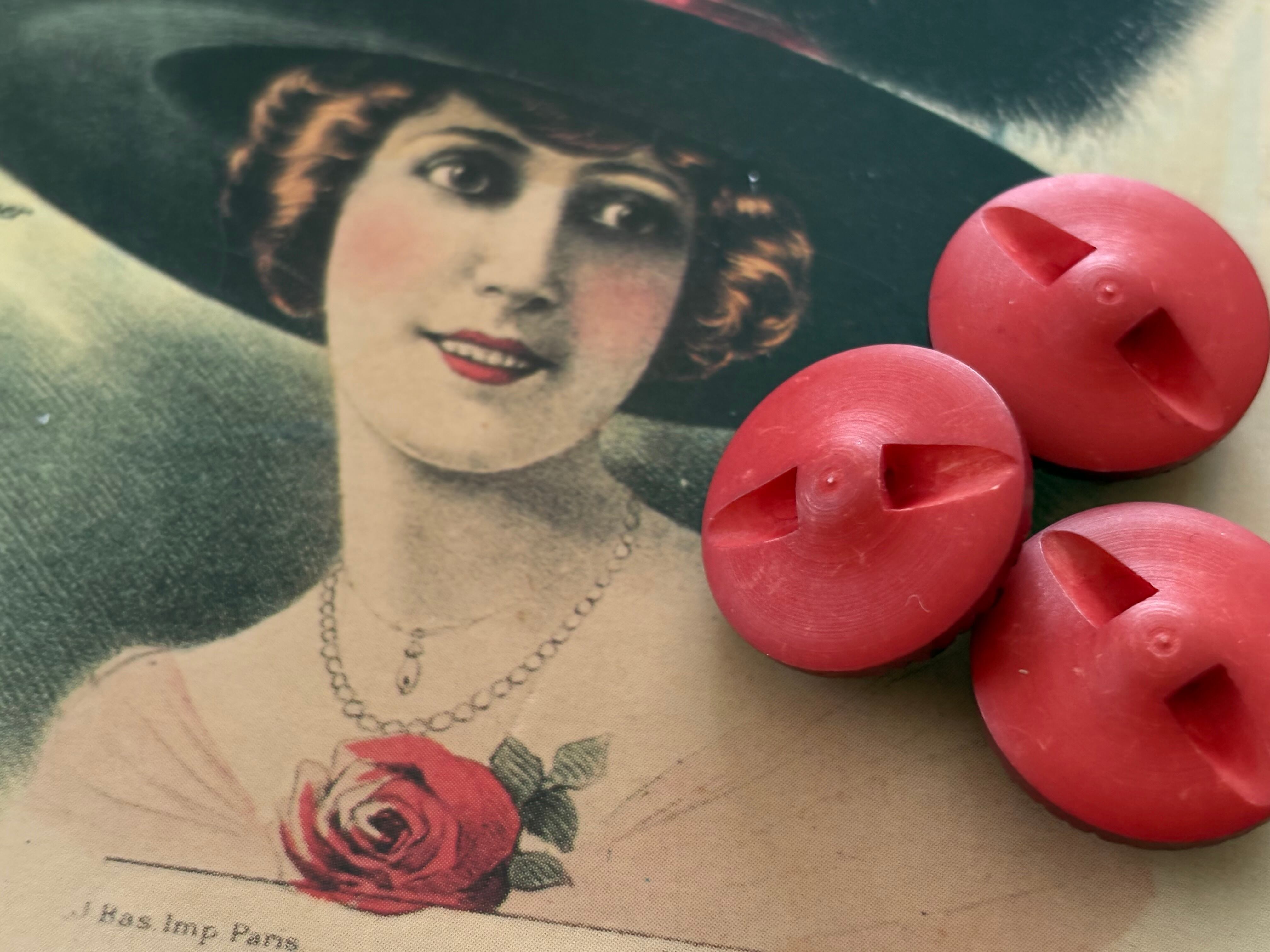 深みのあるレッドカラーが派手にならず雰囲気のあるボタンです。