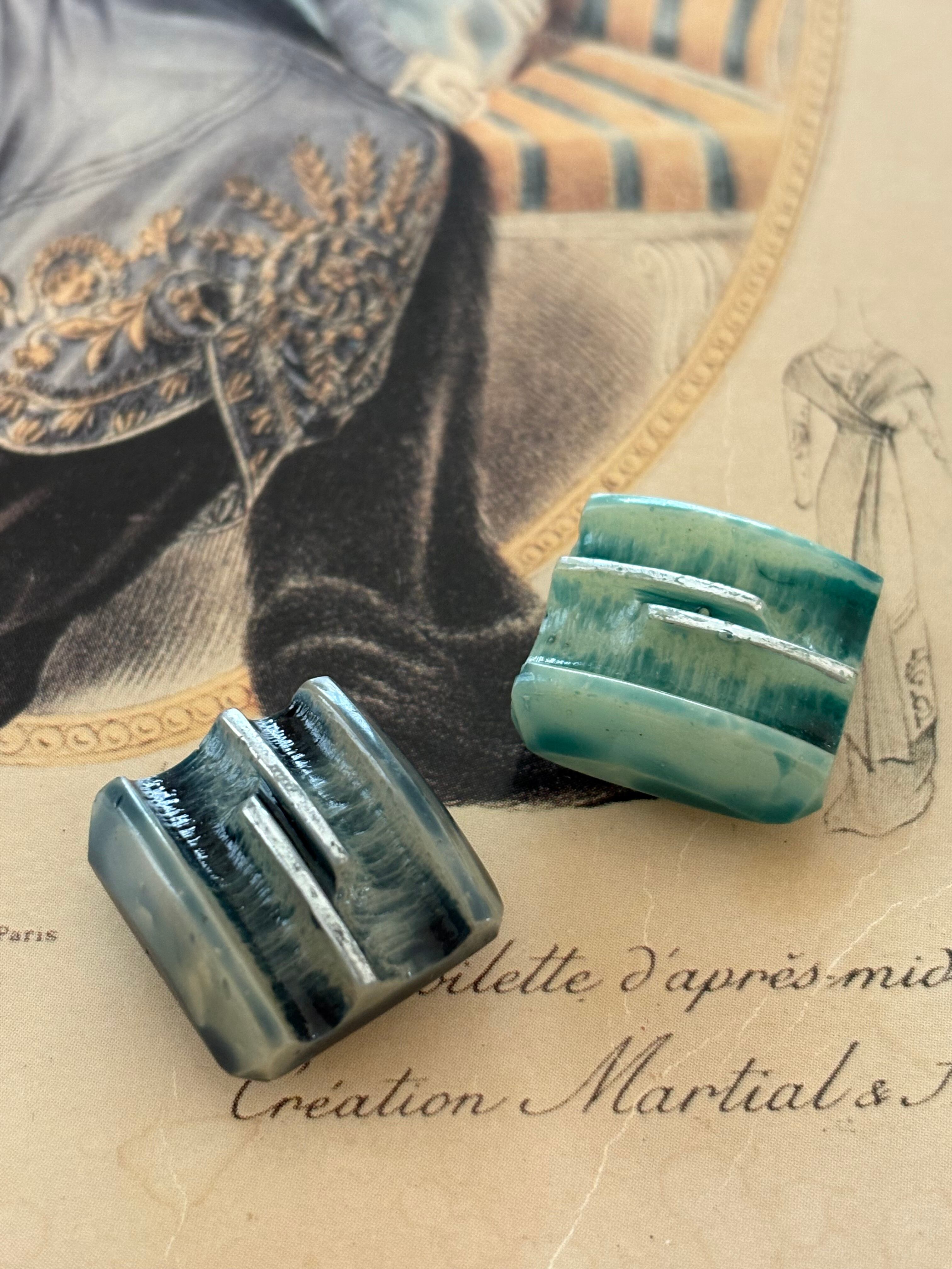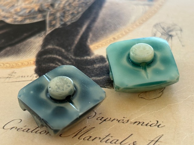 19mm Japanese ヴィンテージボタン スクウェア 昭和レトロ グリーン/ブラック アクセサリーパーツ 装飾材 カルトナージュ