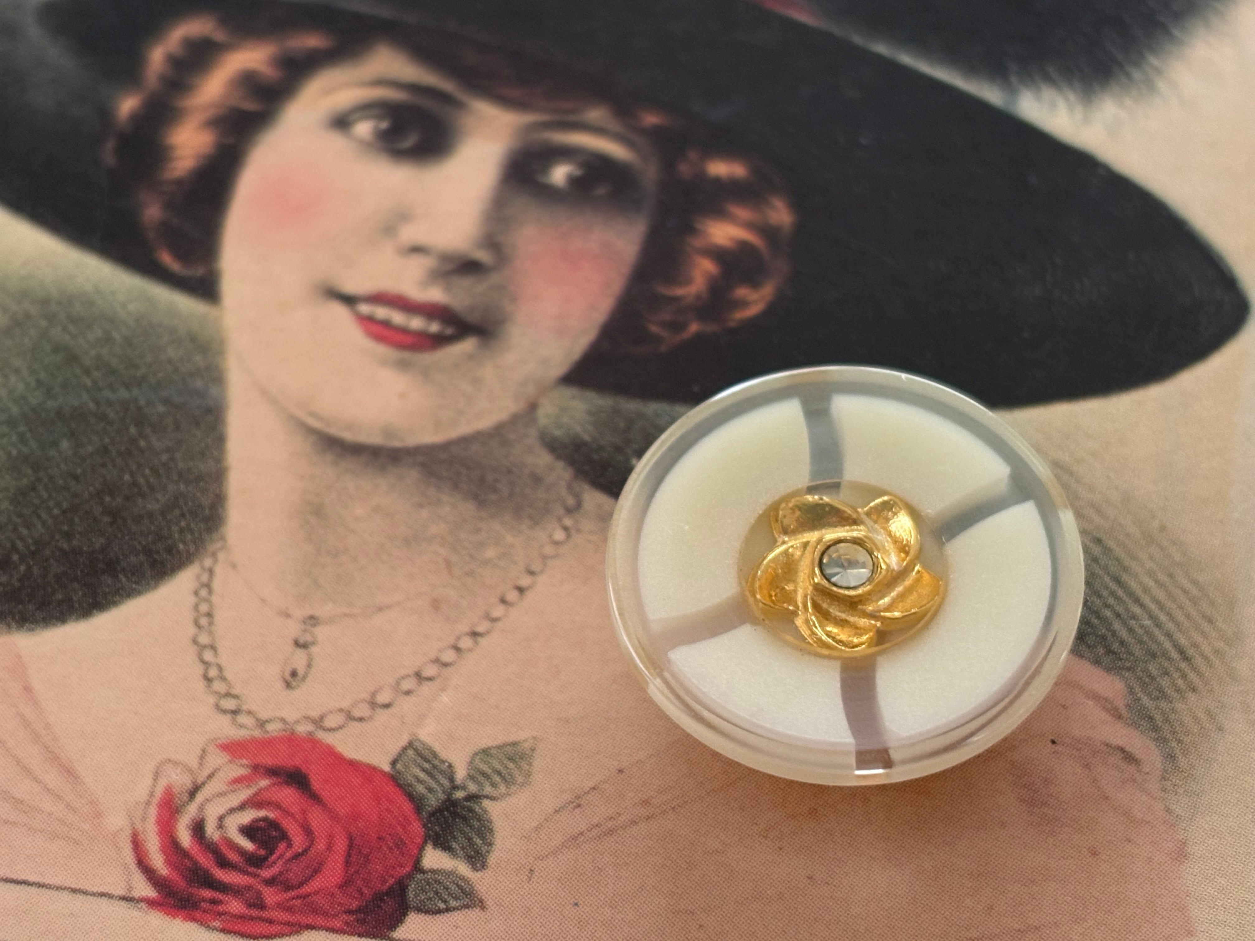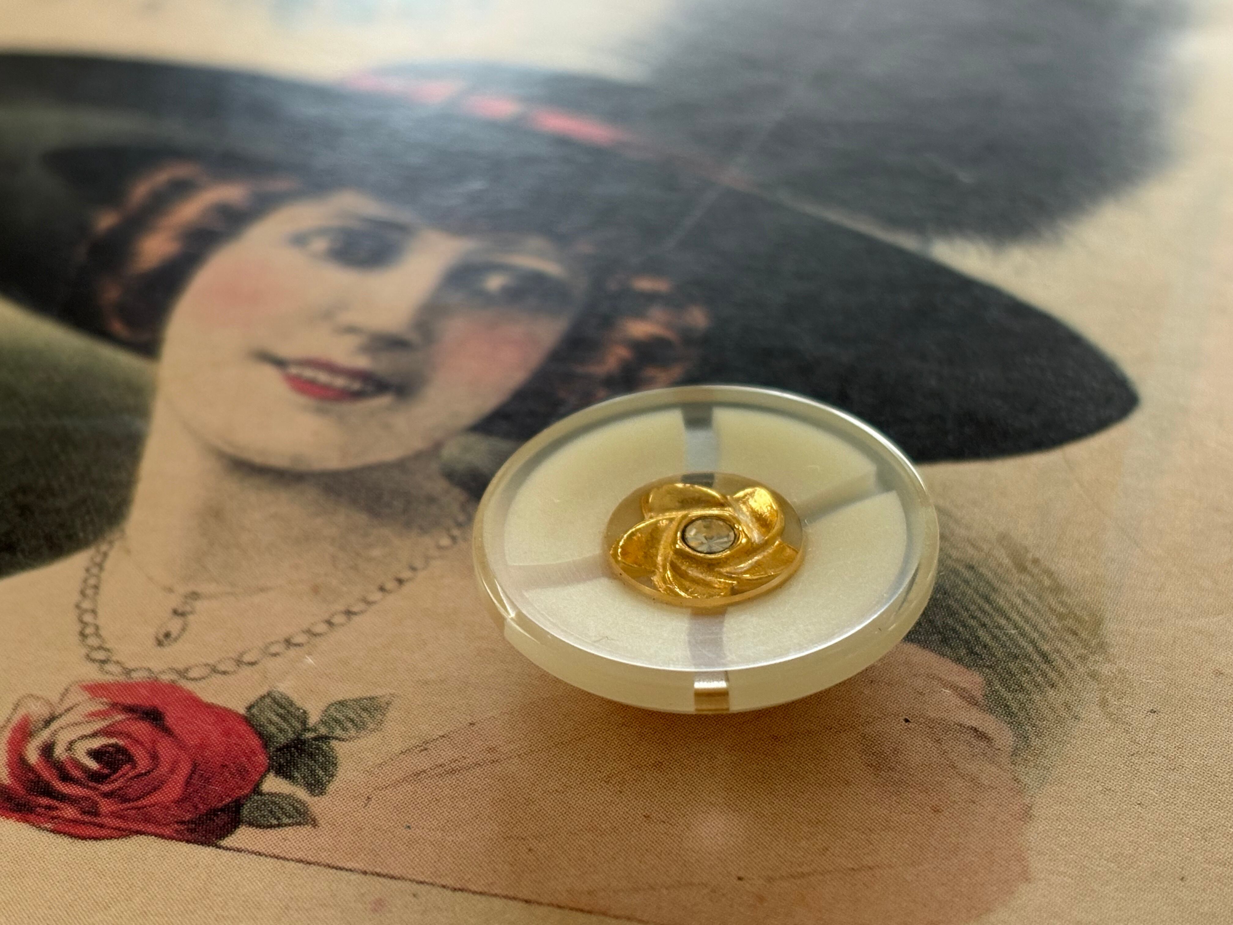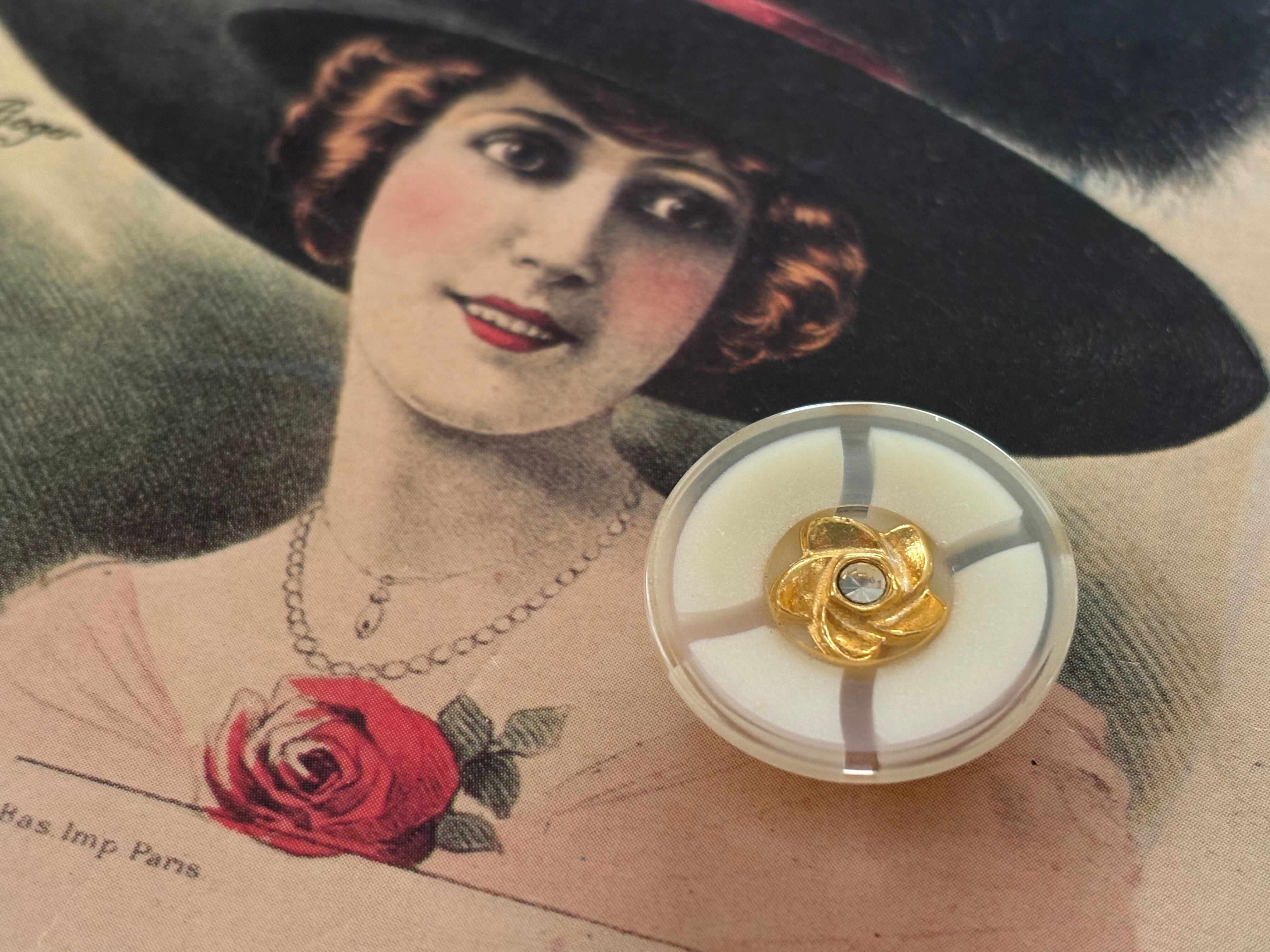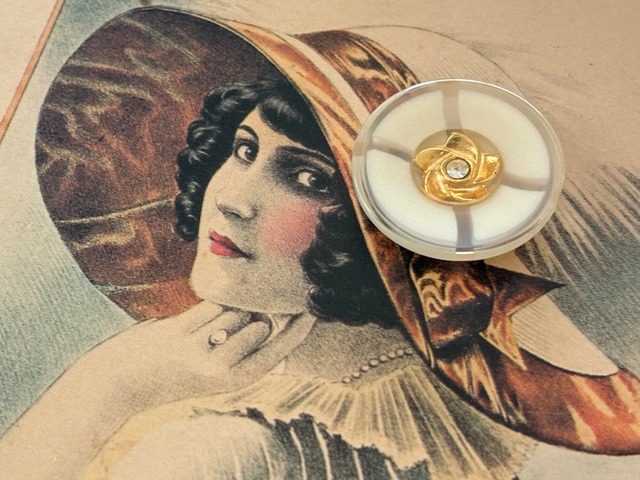 20mm Japanese Vintage ボタン フラワー ストーン ホワイト 昭和レトロ アクセサリーパーツ カルトナージュ デコレーション