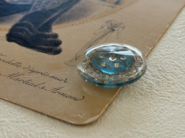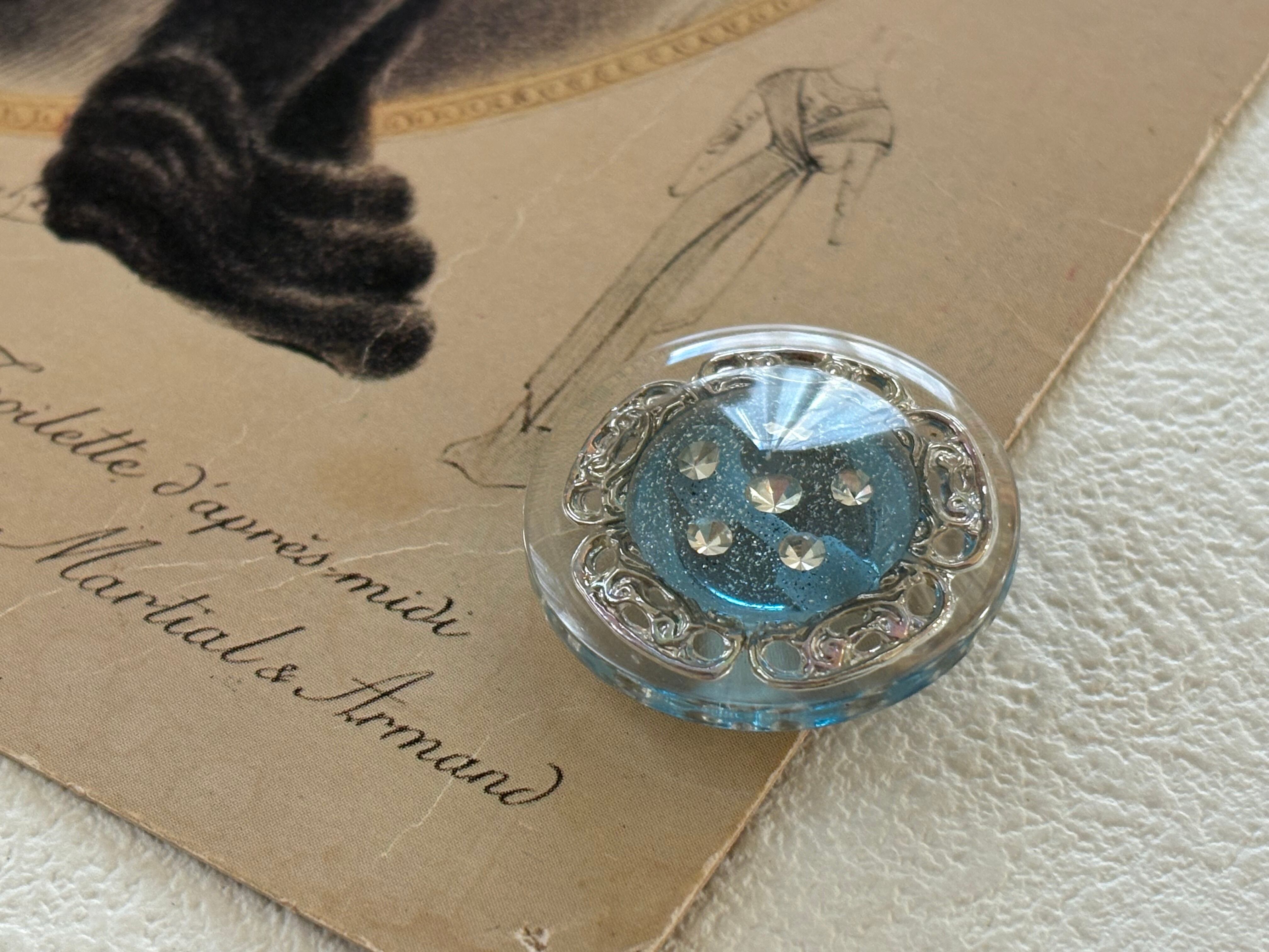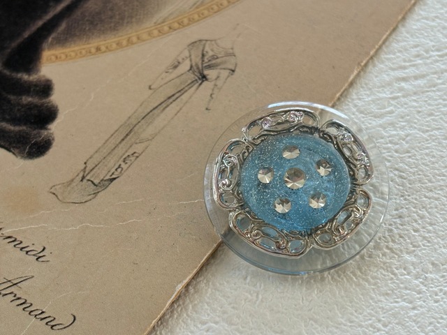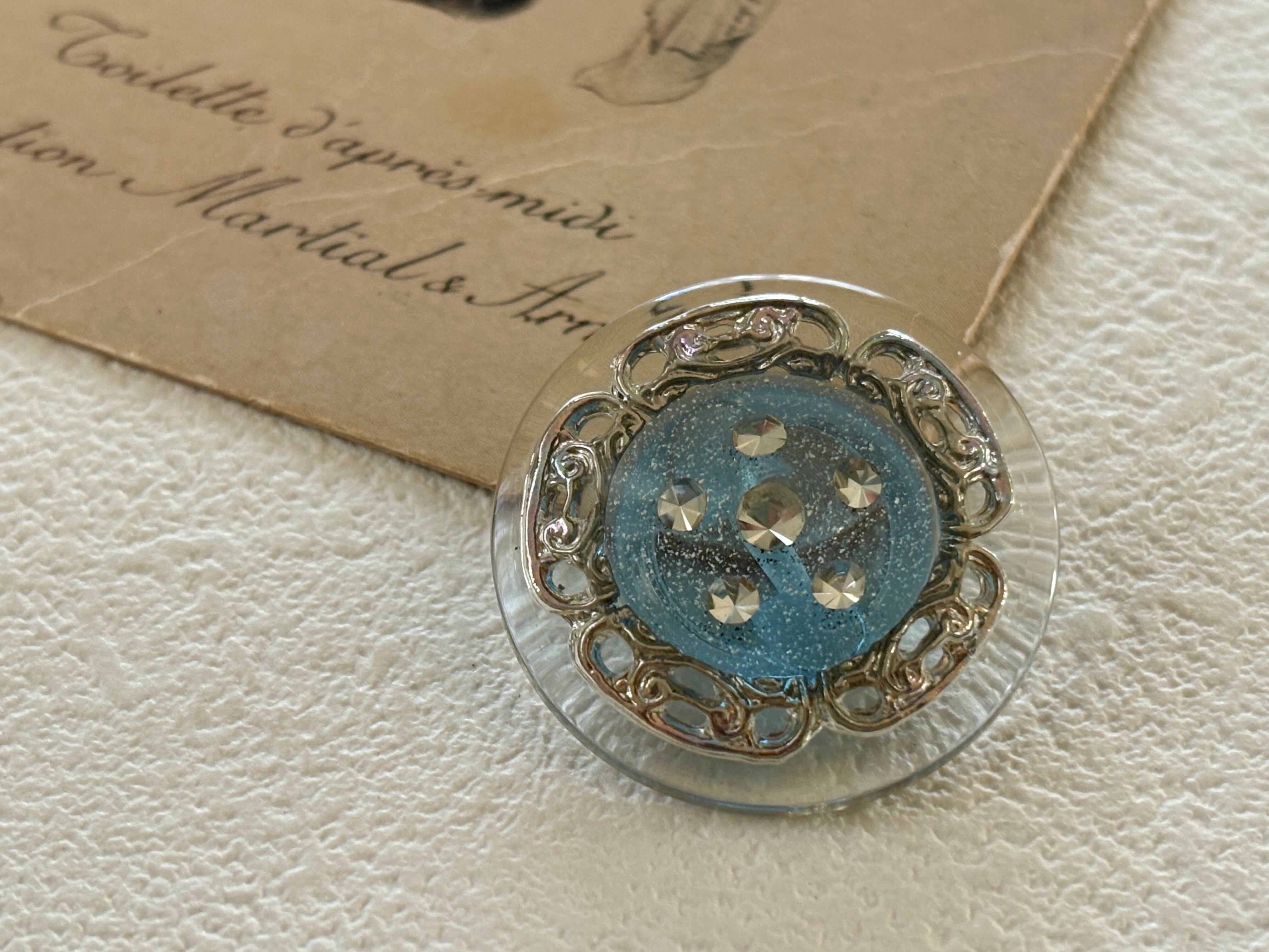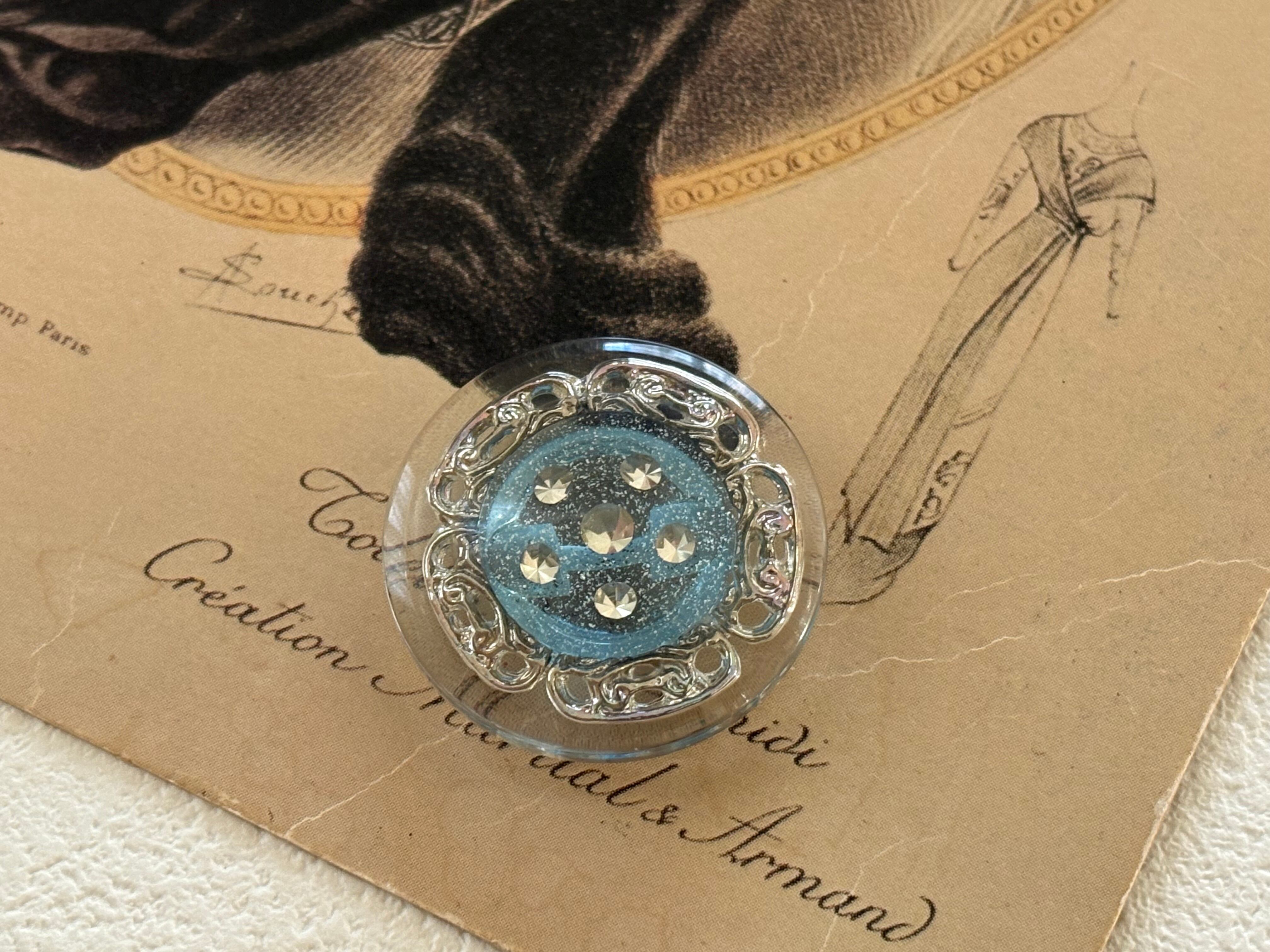 27mm Japaneseヴィンテージボタン 樹脂ボタン ストーン クリア ライトブルー シルバー アクセサリーパーツ デコレーション材