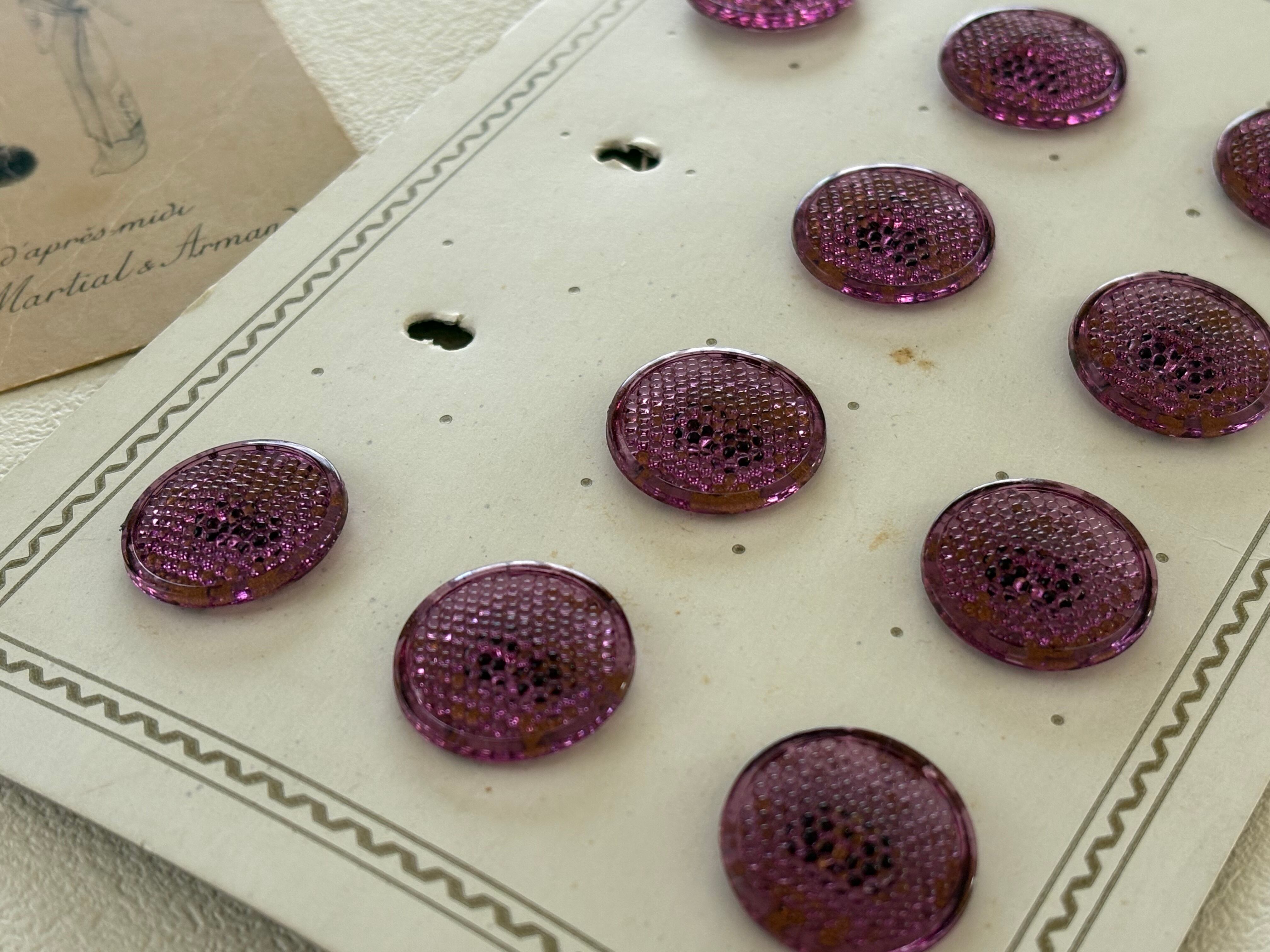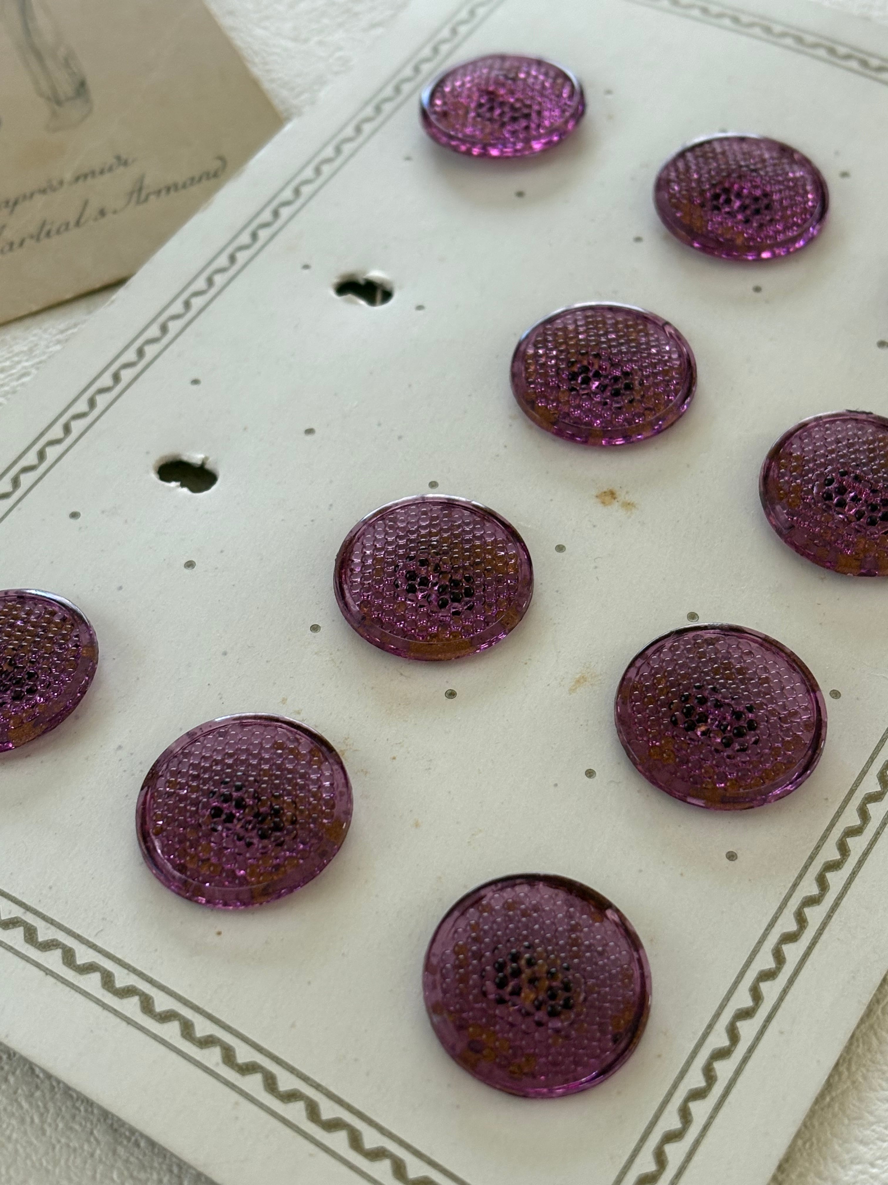 20mm フランスヴィンテージボタン パープル クリア デッドストック アクセサリーパーツ デコレーション材
