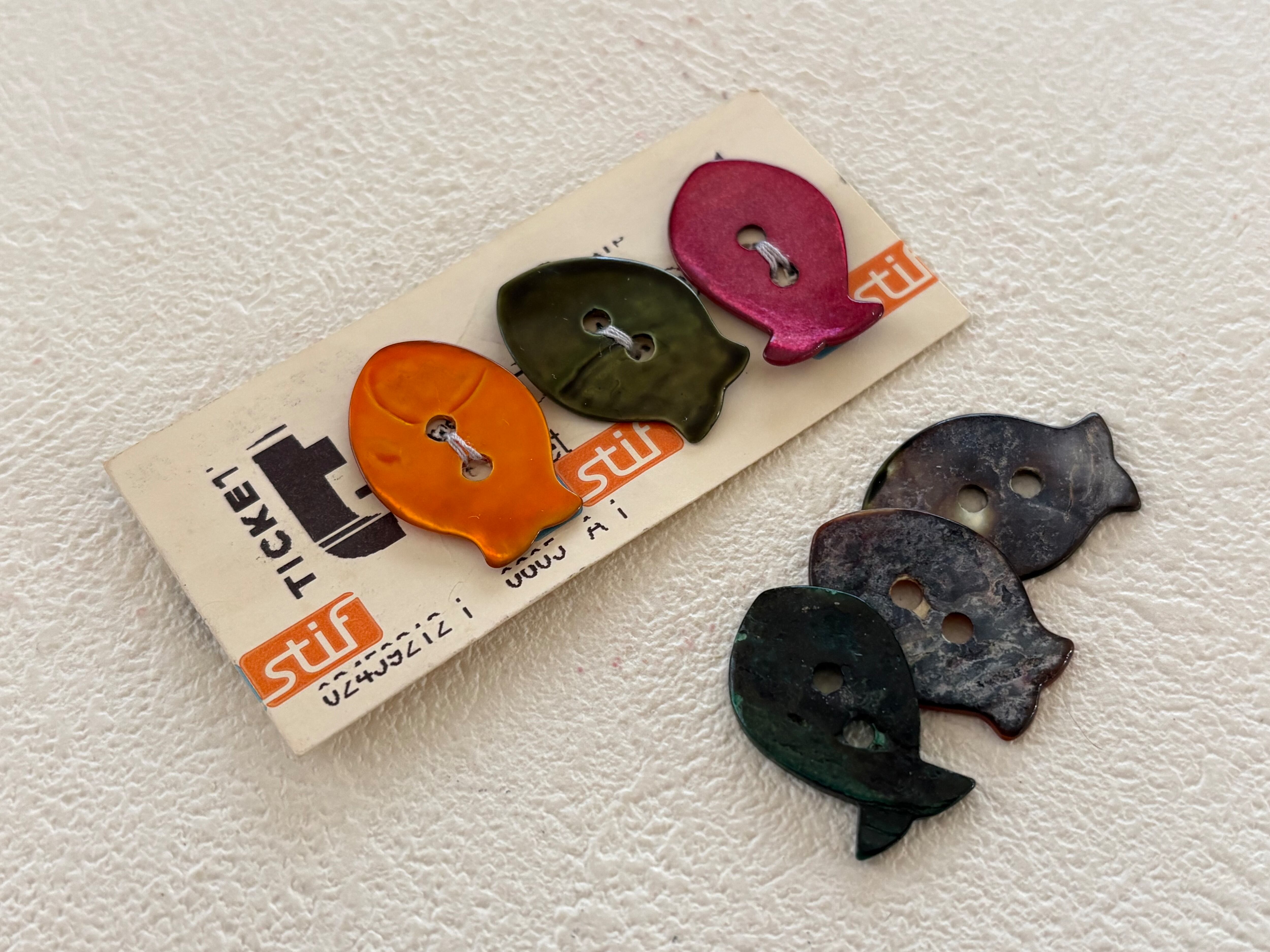 ※インポート、ヴィンテージボタンはもともとキズ、色むら、バリ、サイズの不揃い、多少の汚れなどが見られる場合があります。
