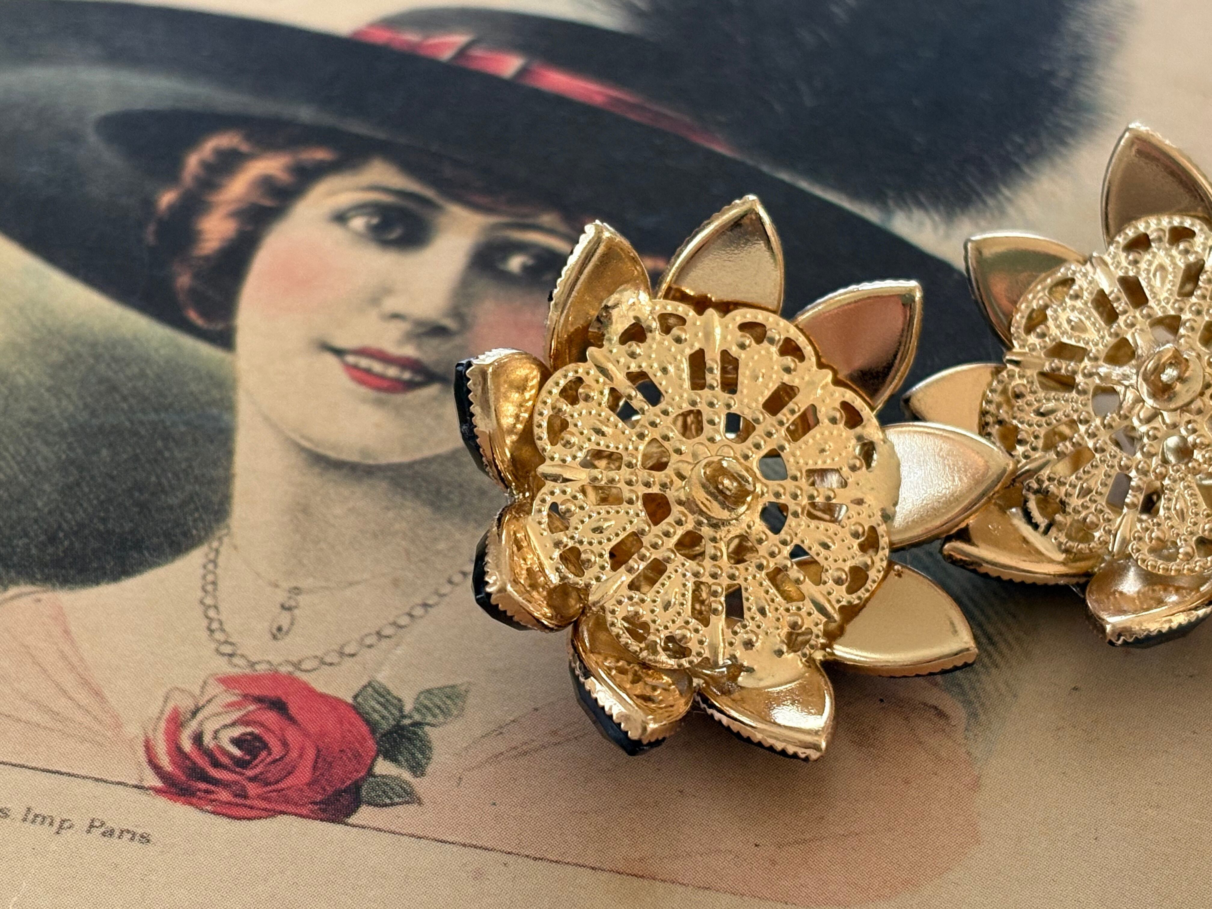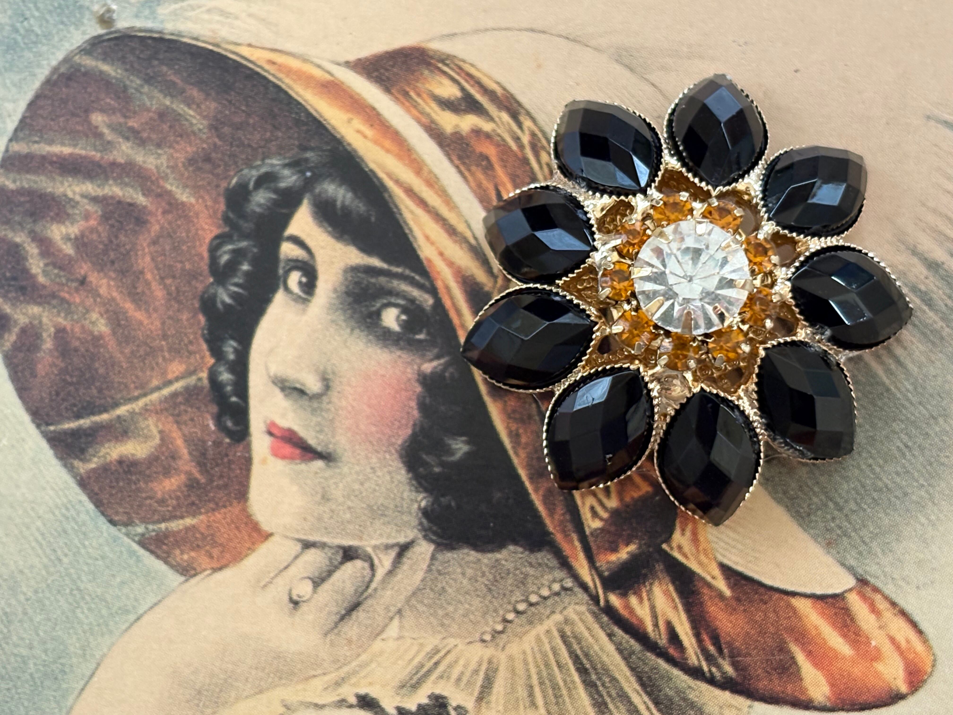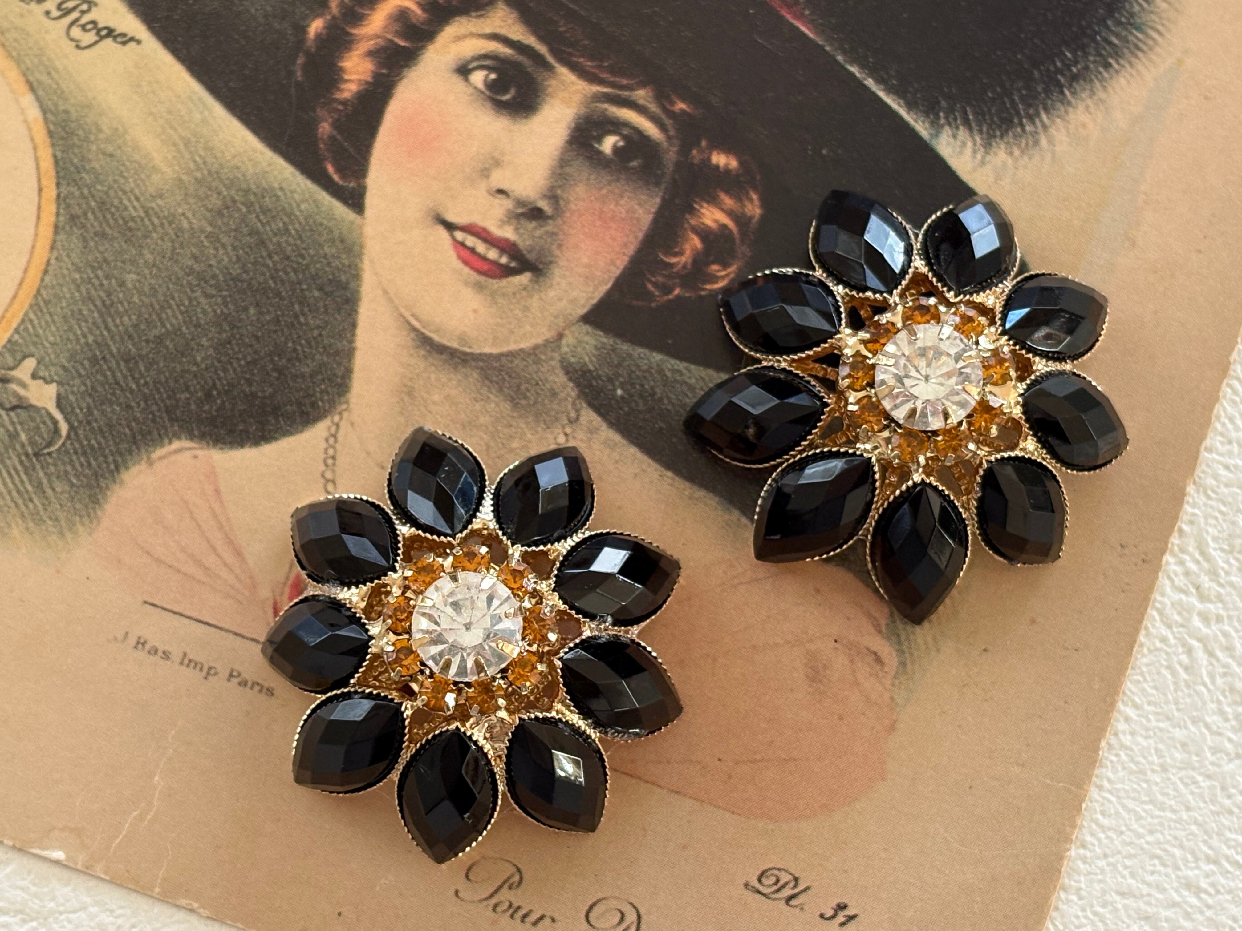 35mm 輸入デザインボタン 大きなフラワーボタン メタル×ストーン×ビジュー アクセサリーパーツ デコレーション材 カルトナージュ