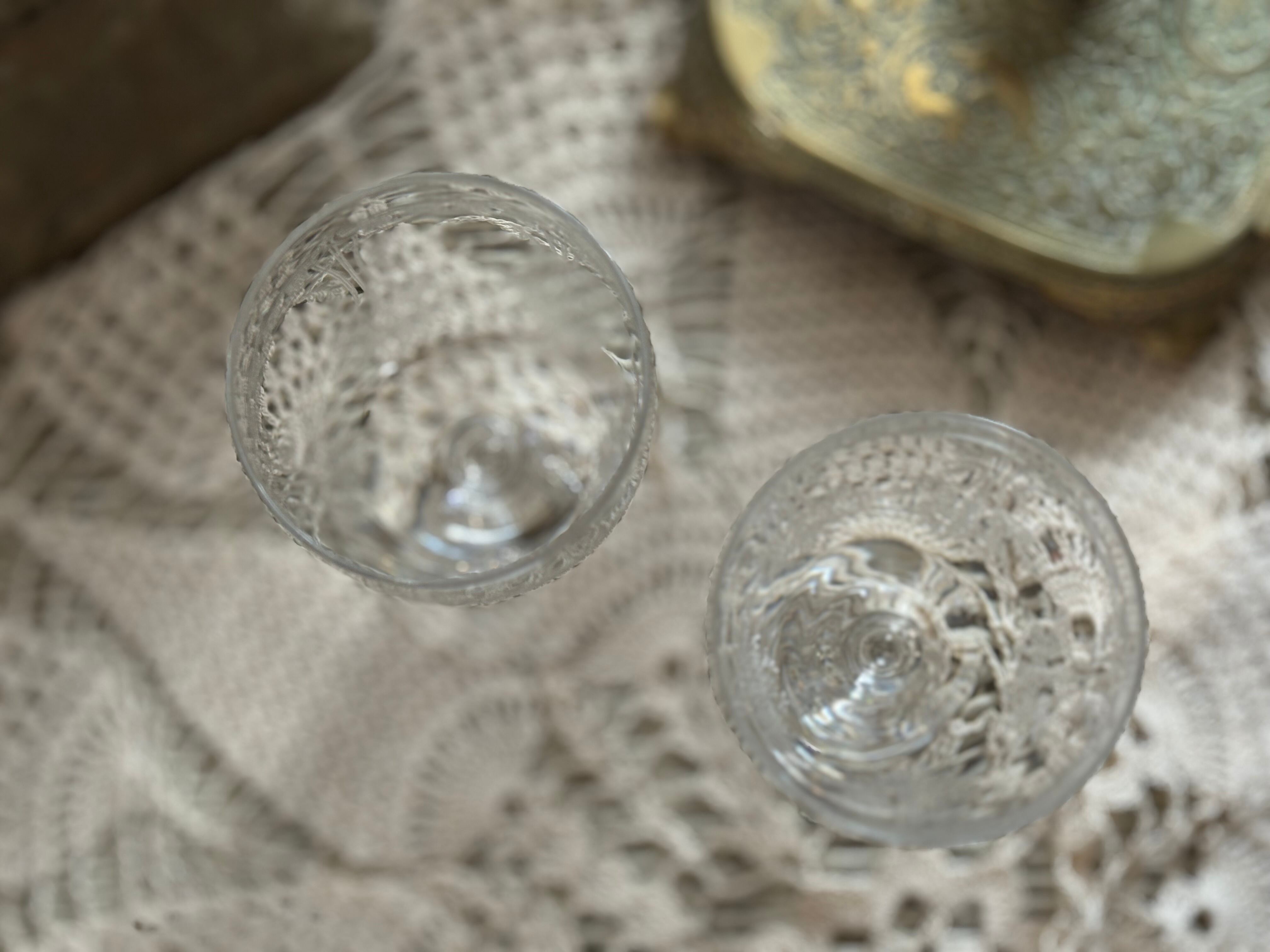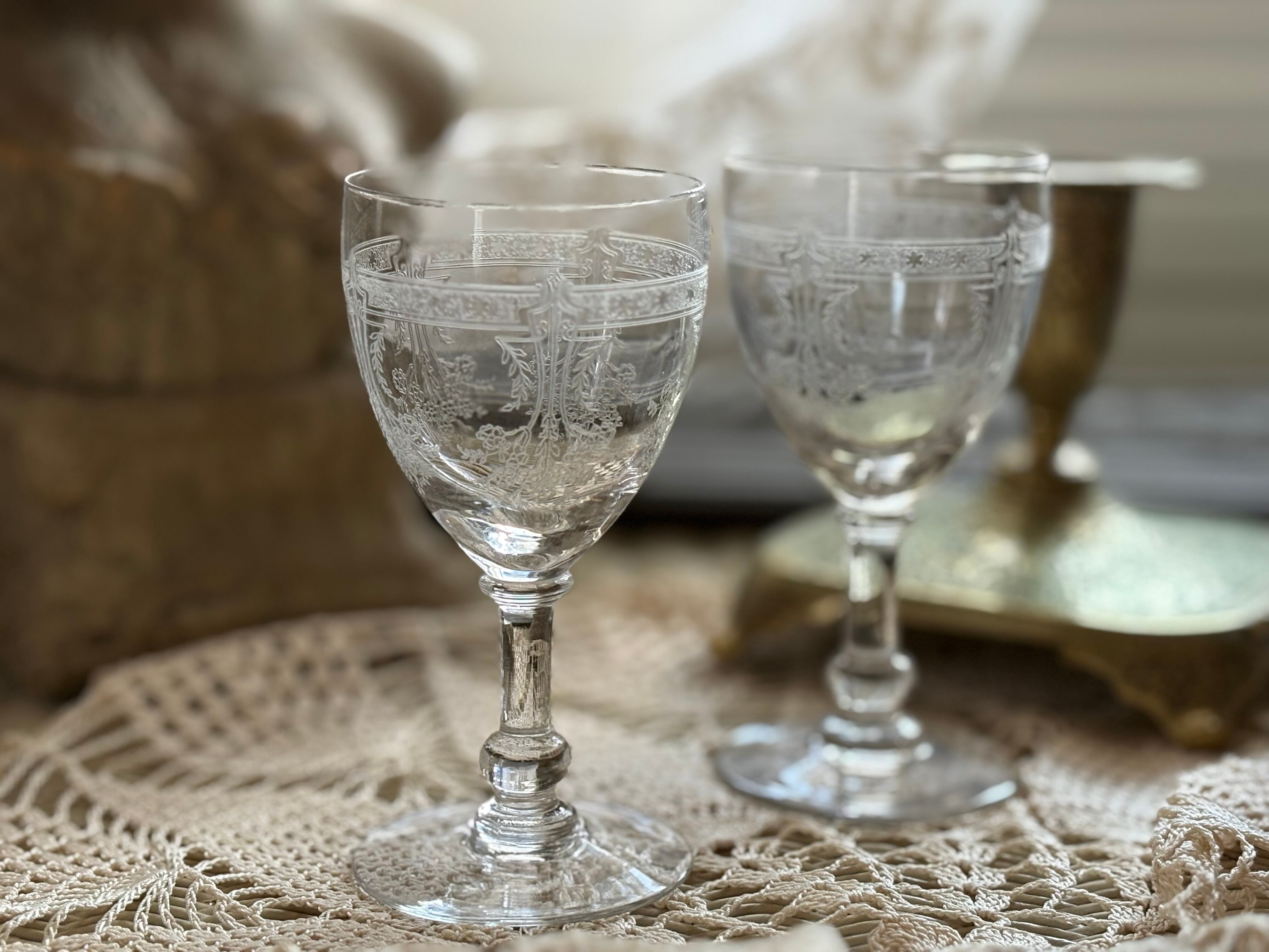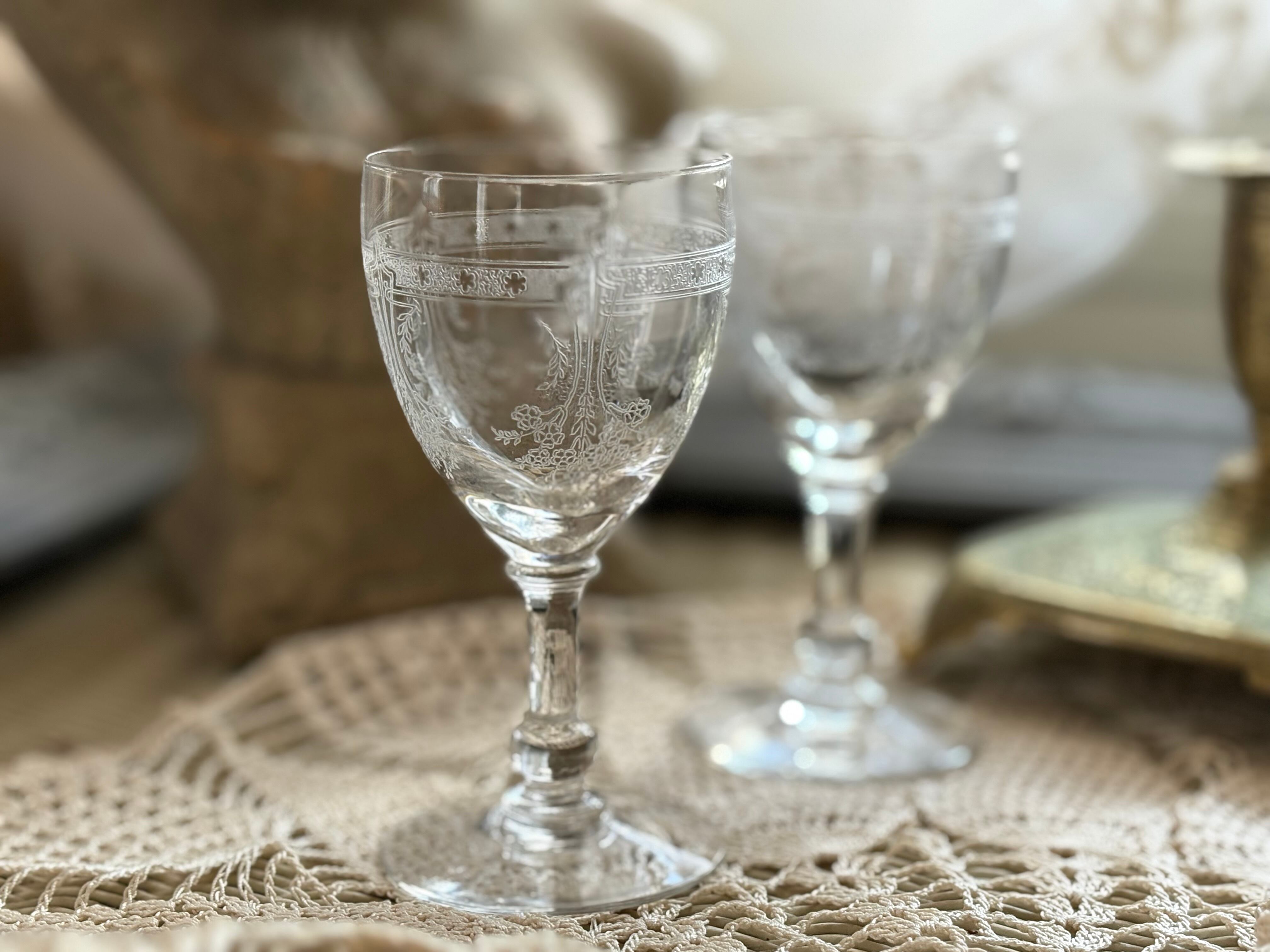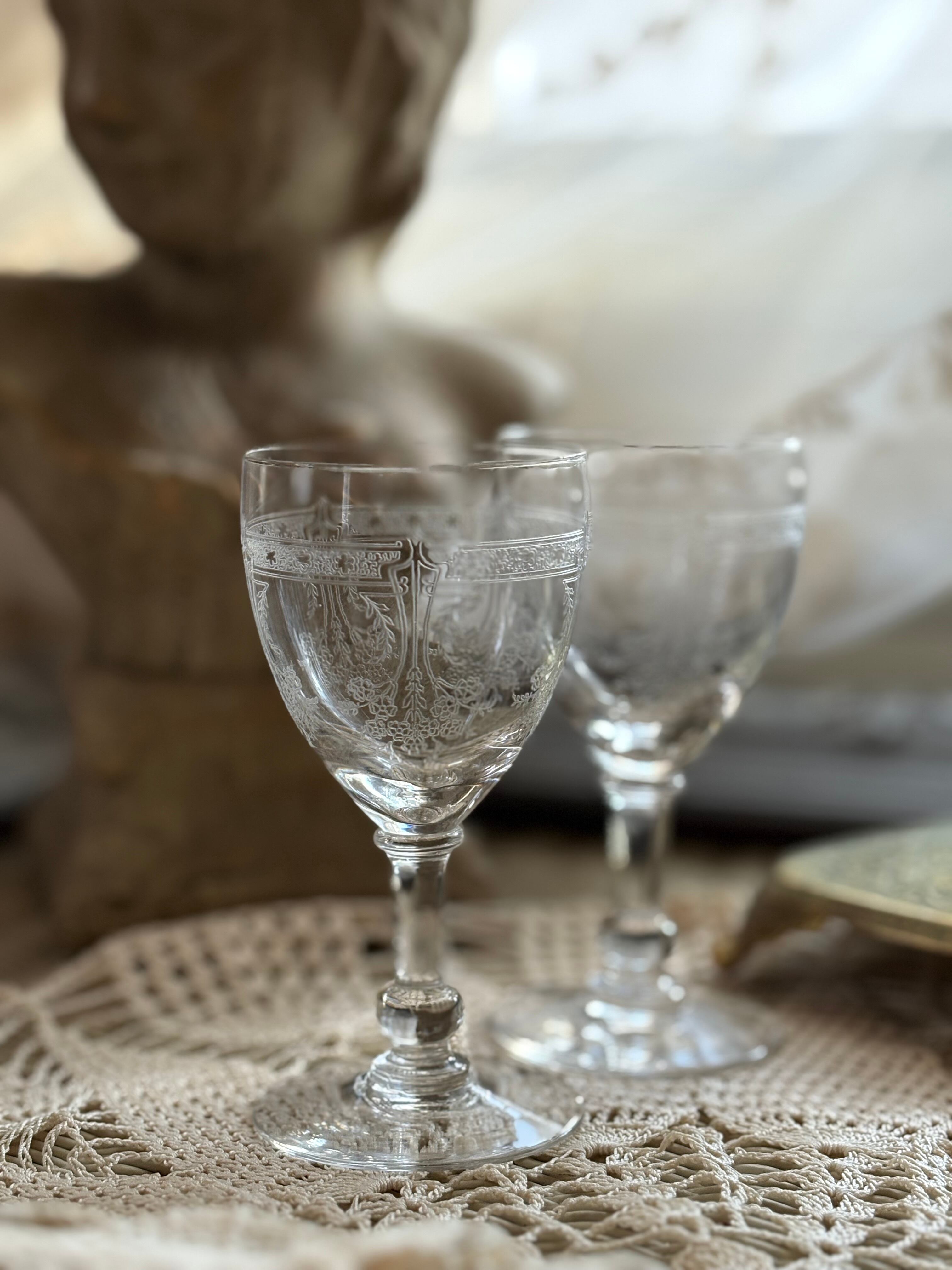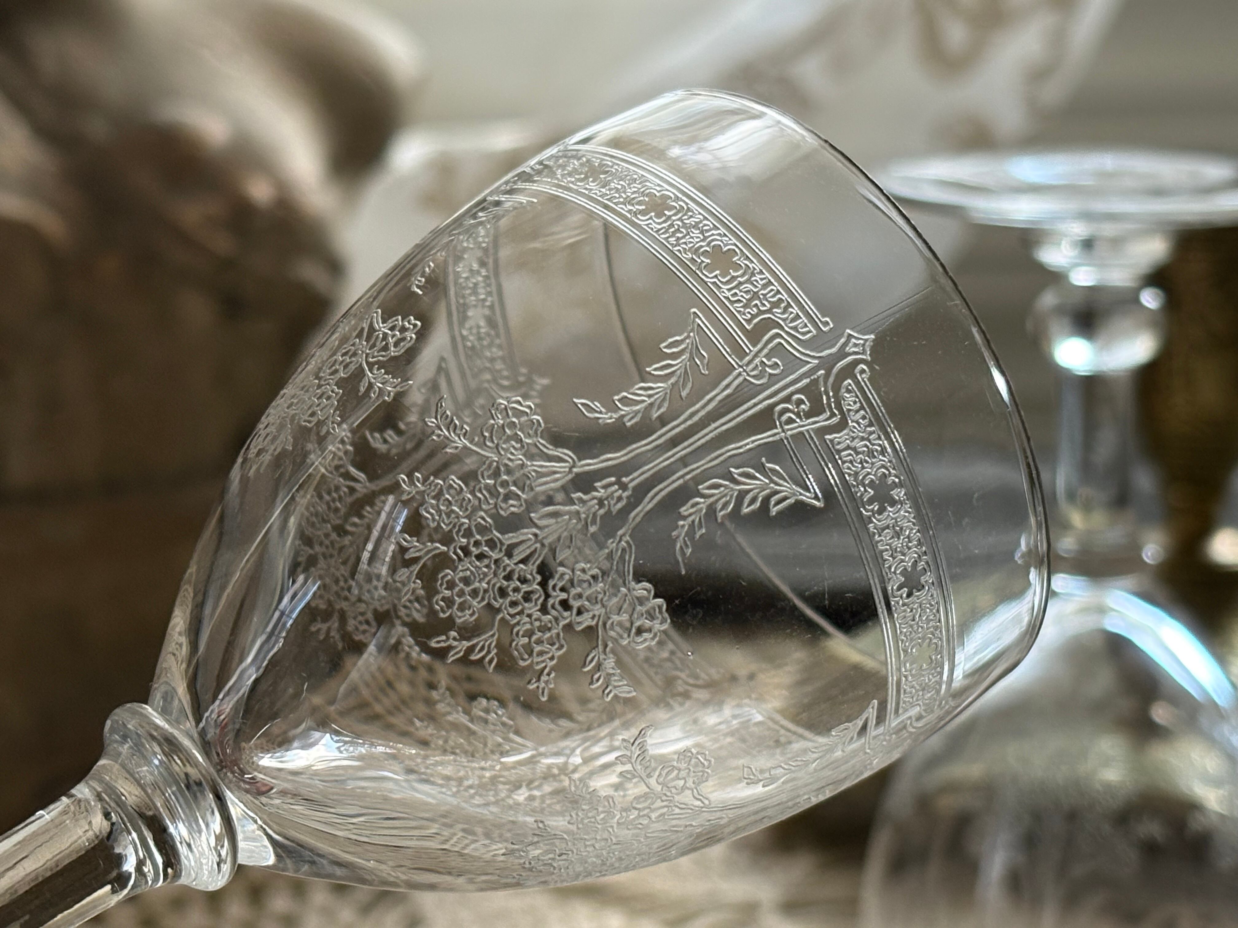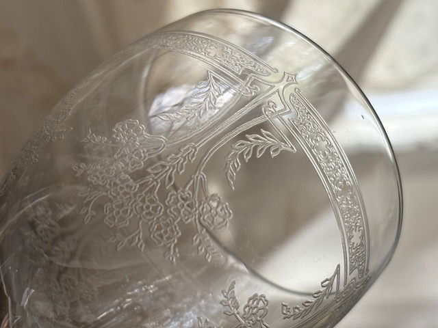 フランス ヴィンテージ エッチング クリスタル グラス 食前酒 フラワーベース テーブルウェア インテリア小物