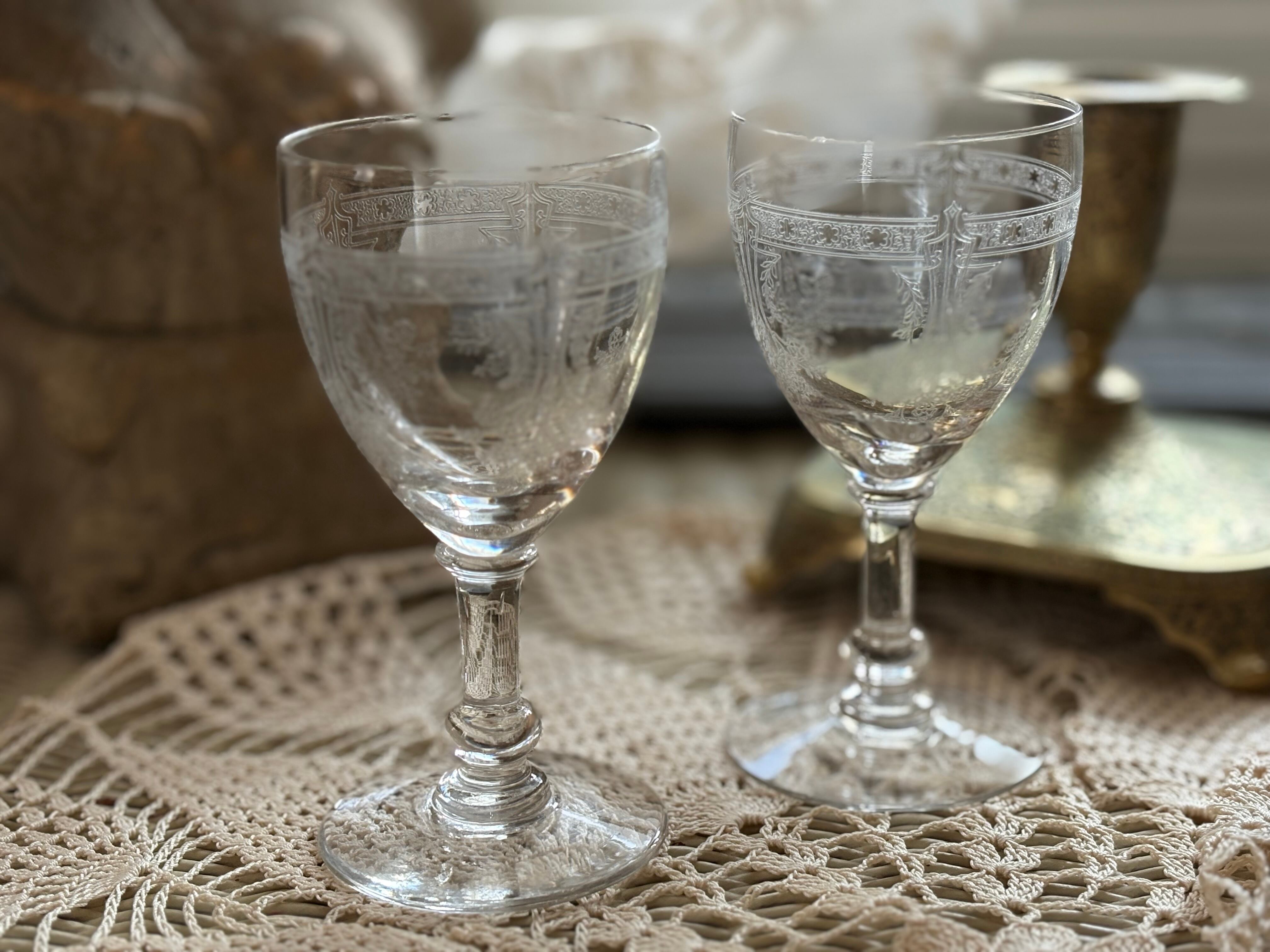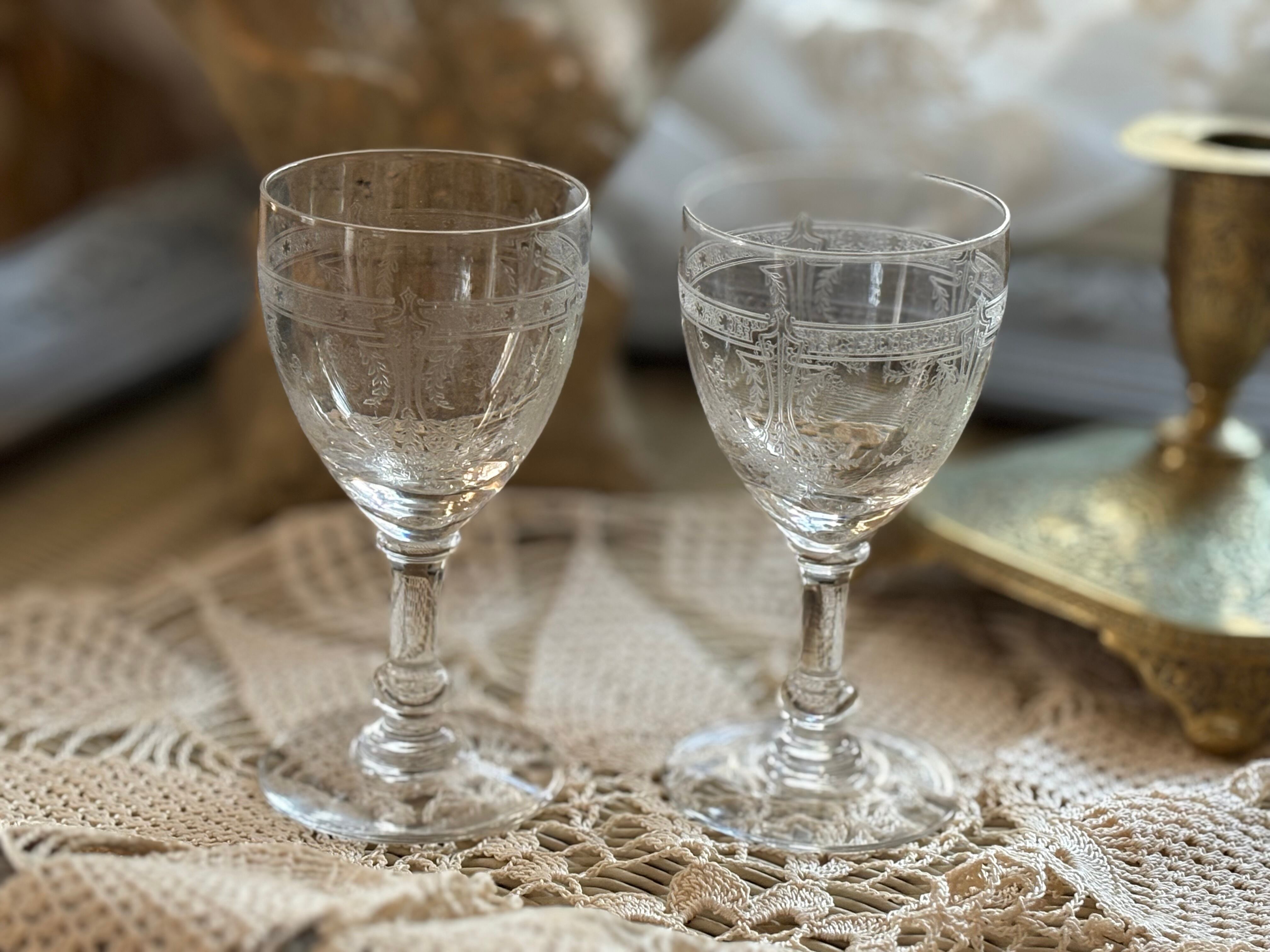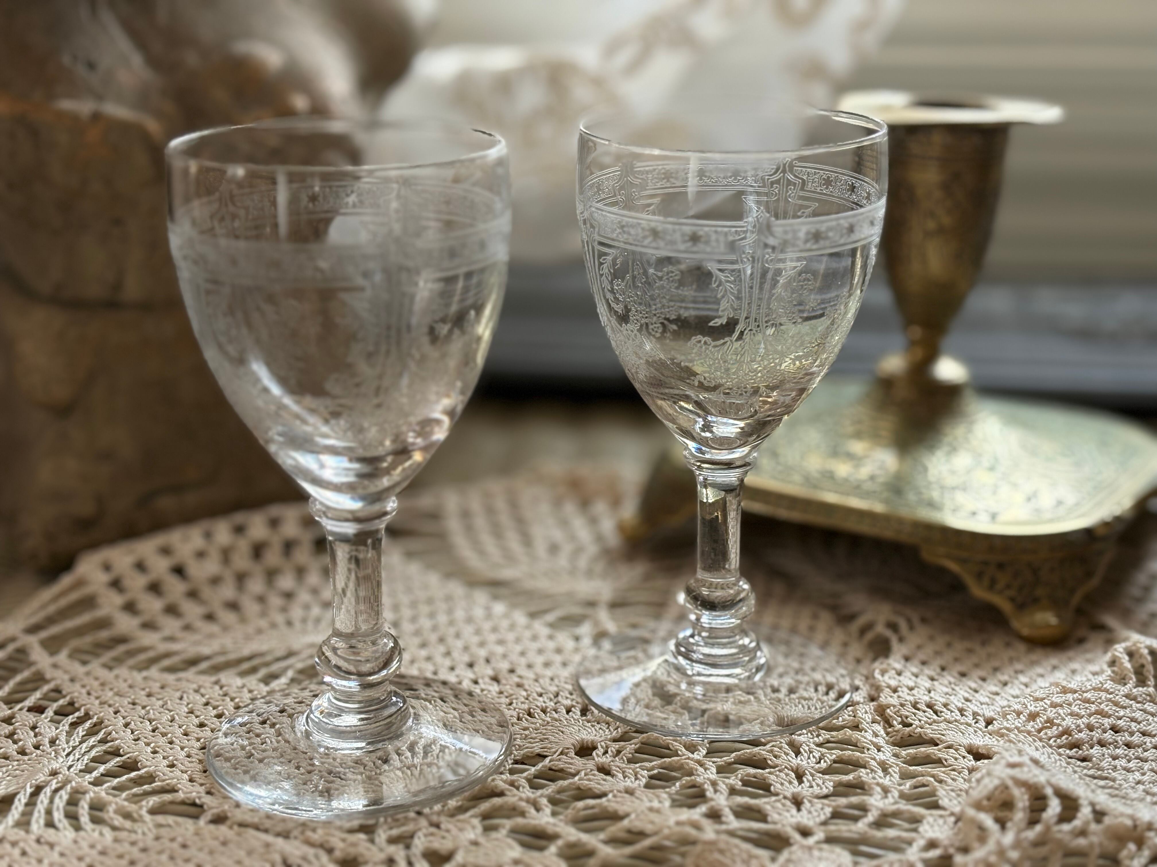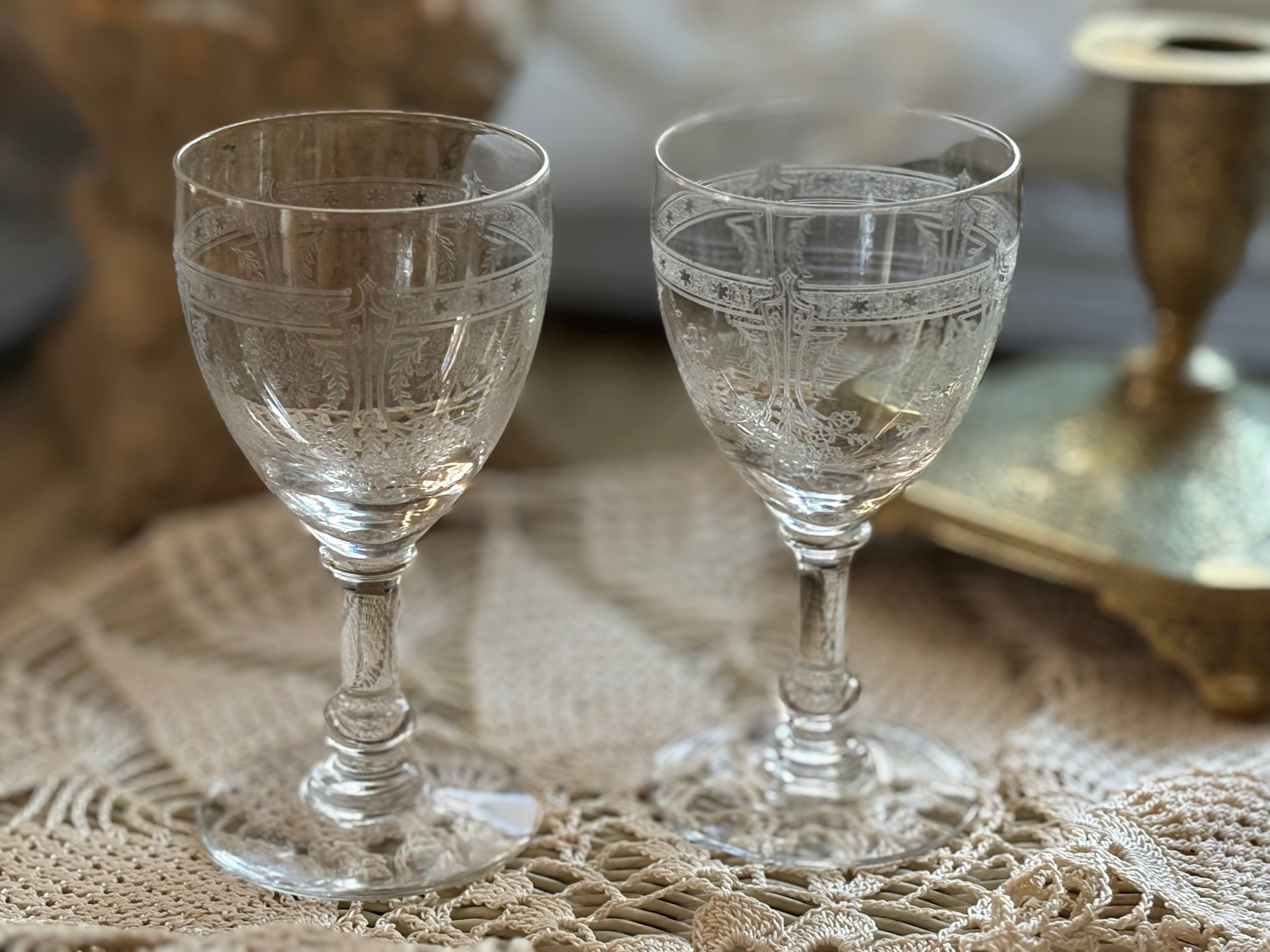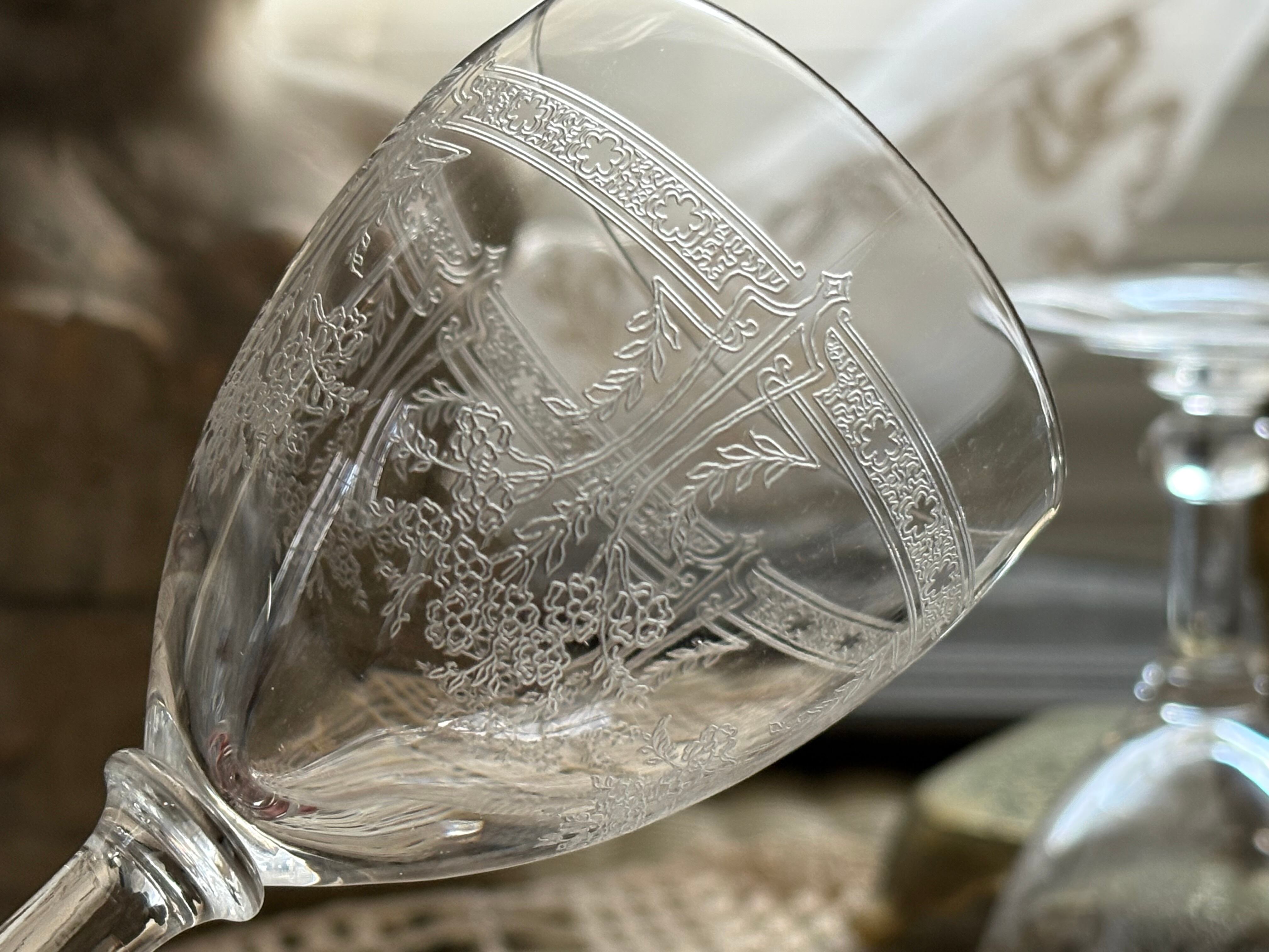 フランス ヴィンテージ エッチング クリスタル グラス 食前酒 フラワーベース テーブルウェア インテリア小物