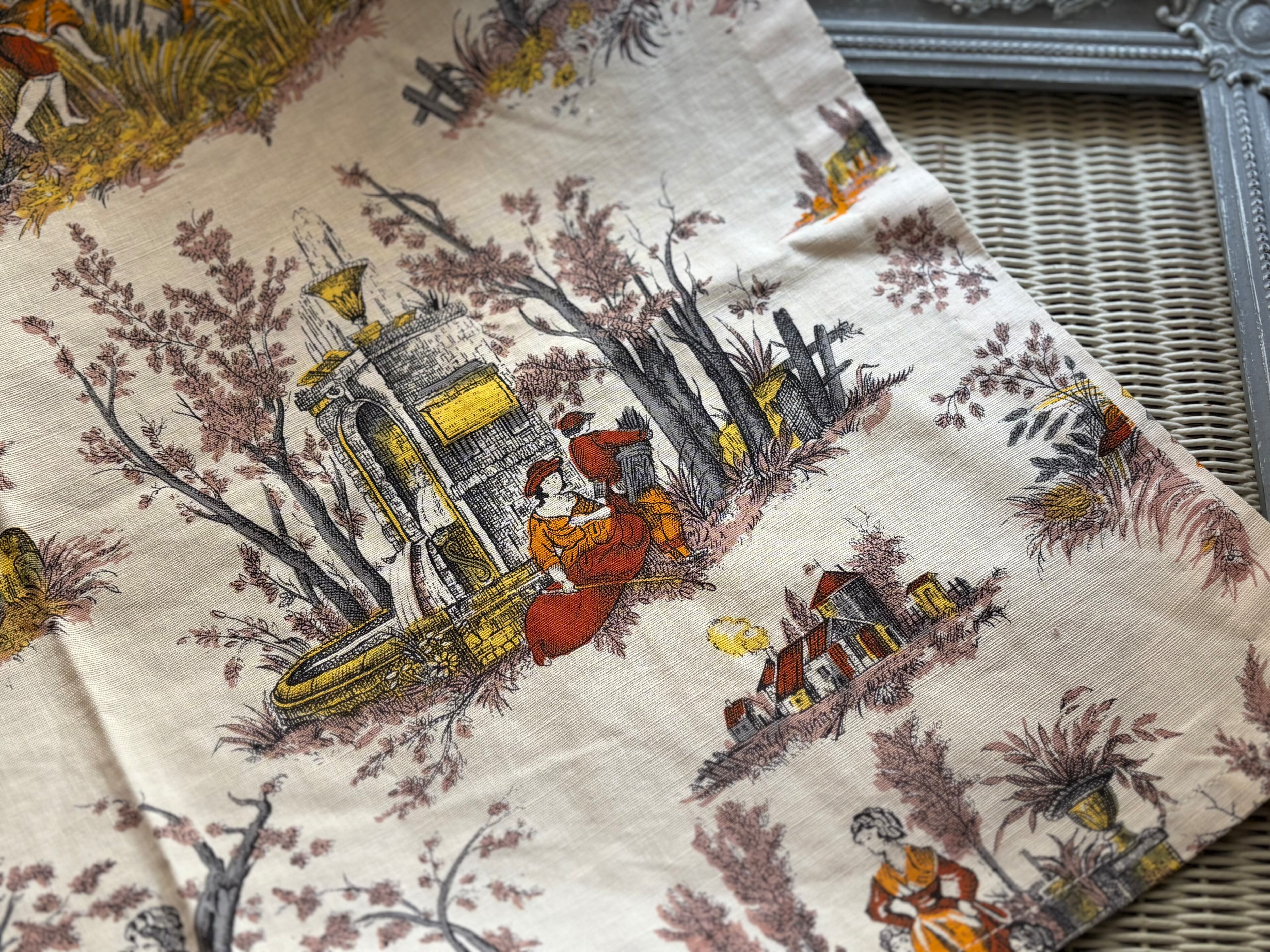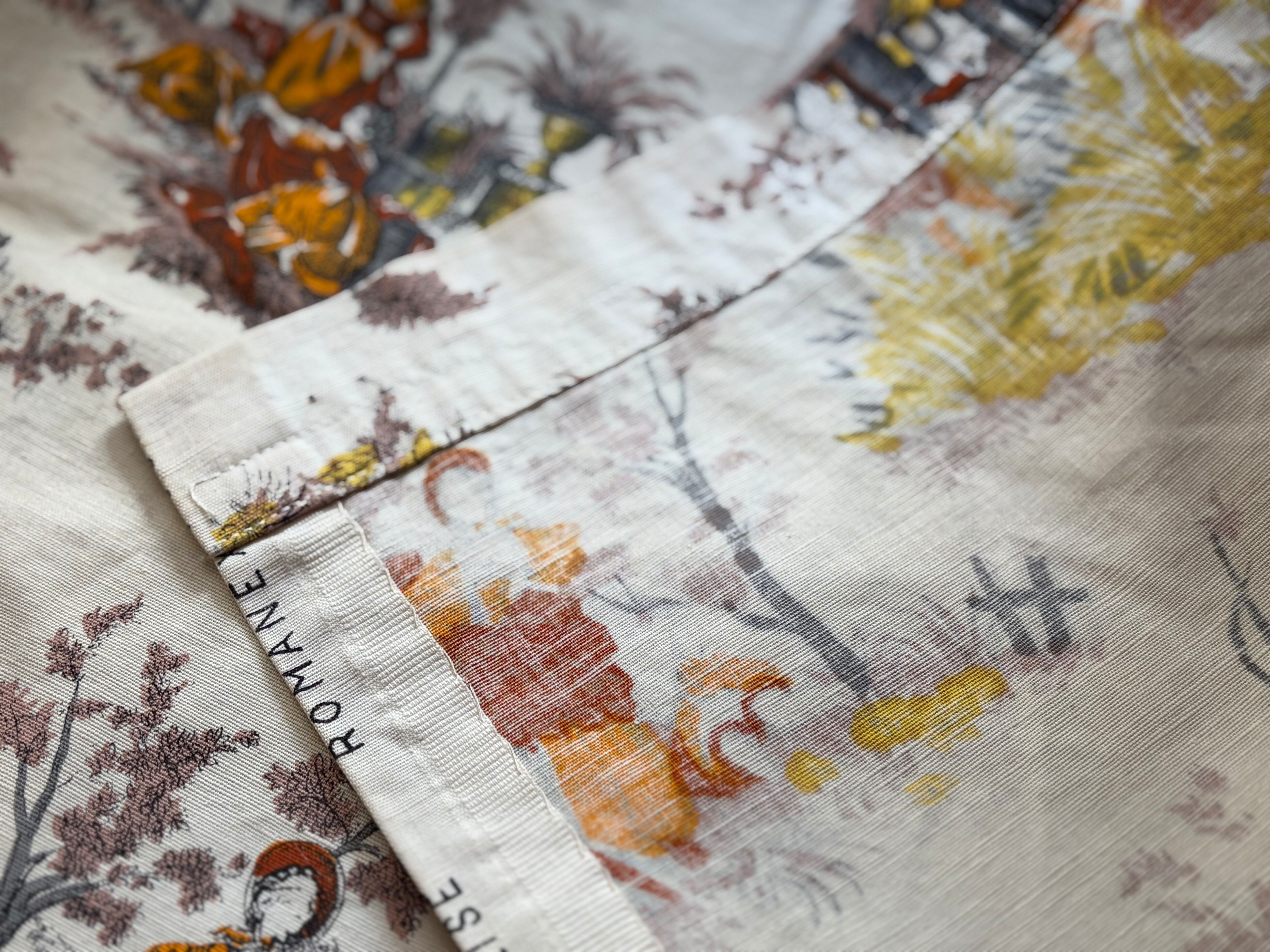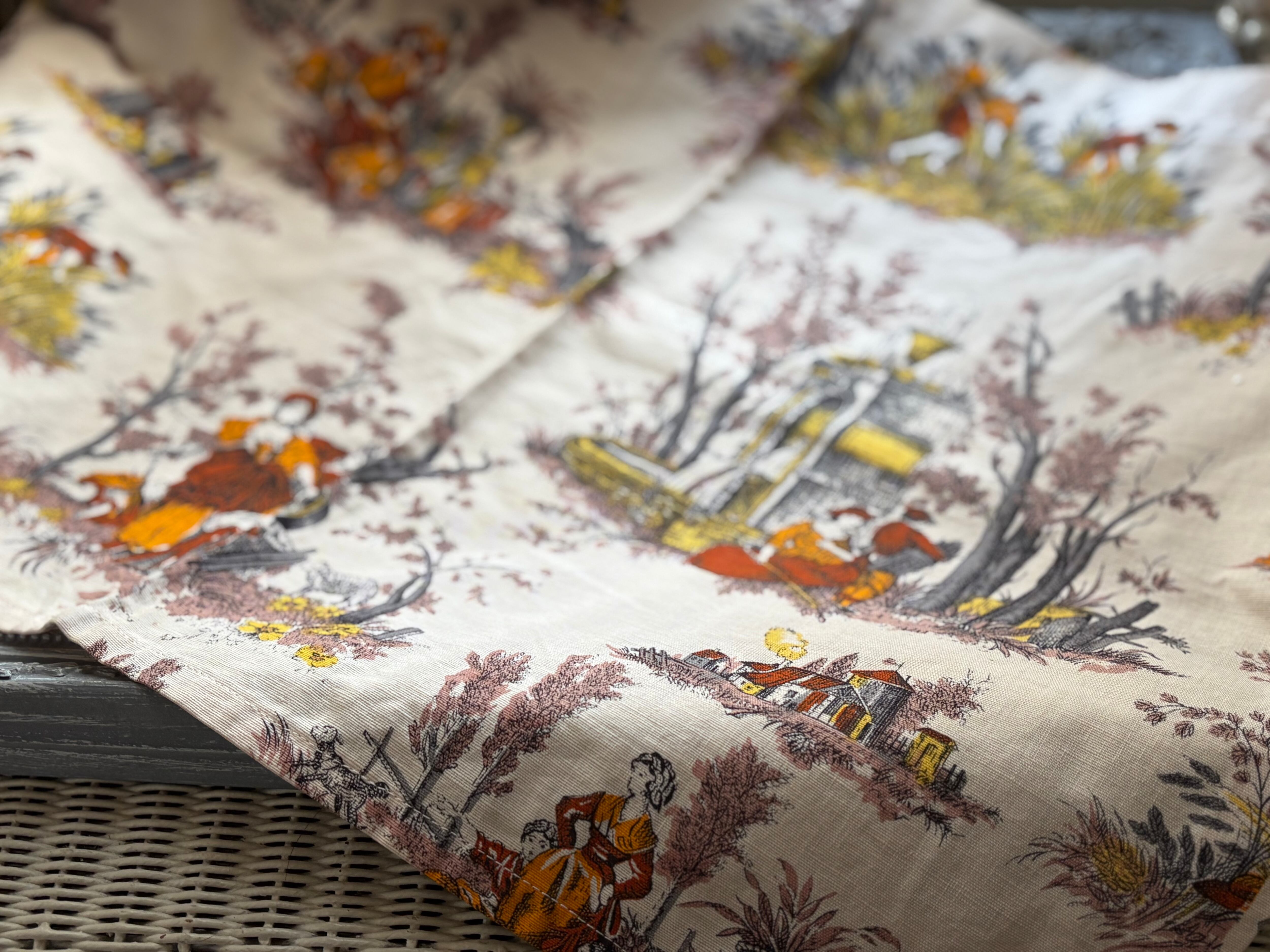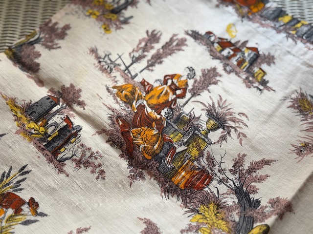 フランスVintage カフェカーテン 1960年代 ROMANEX DE BOUSSAC 生地 カルトナージュ インテリア 撮影小物