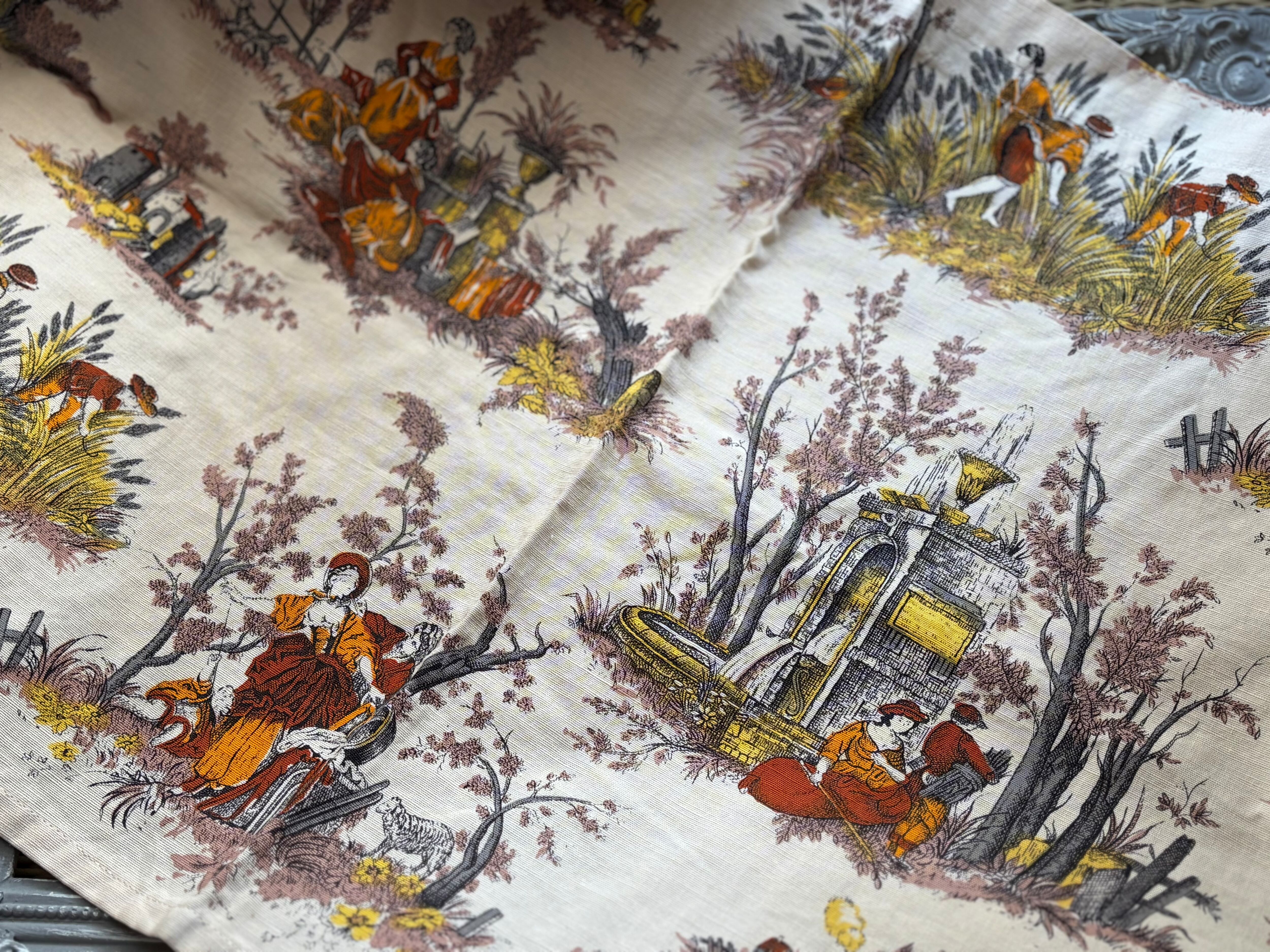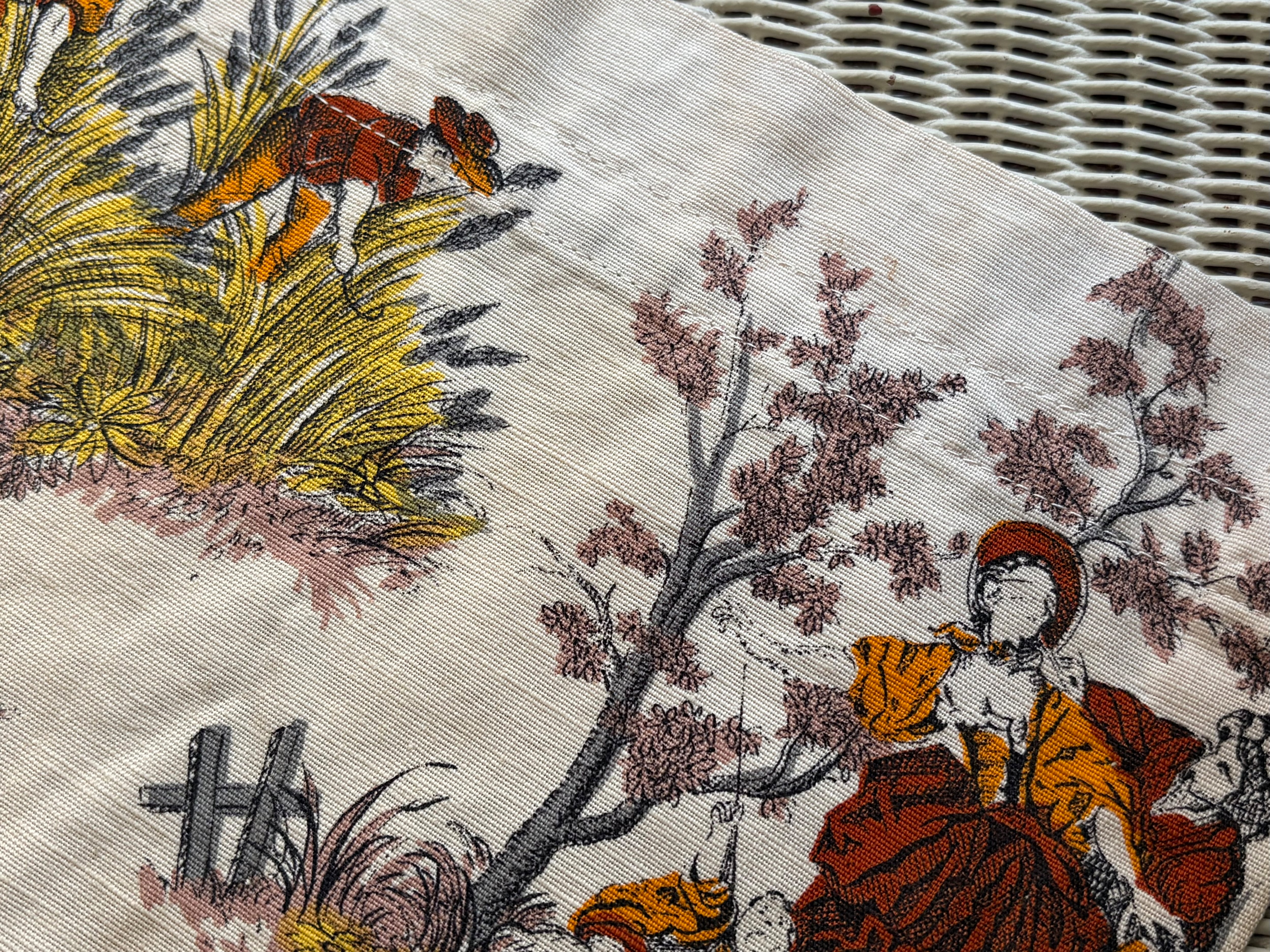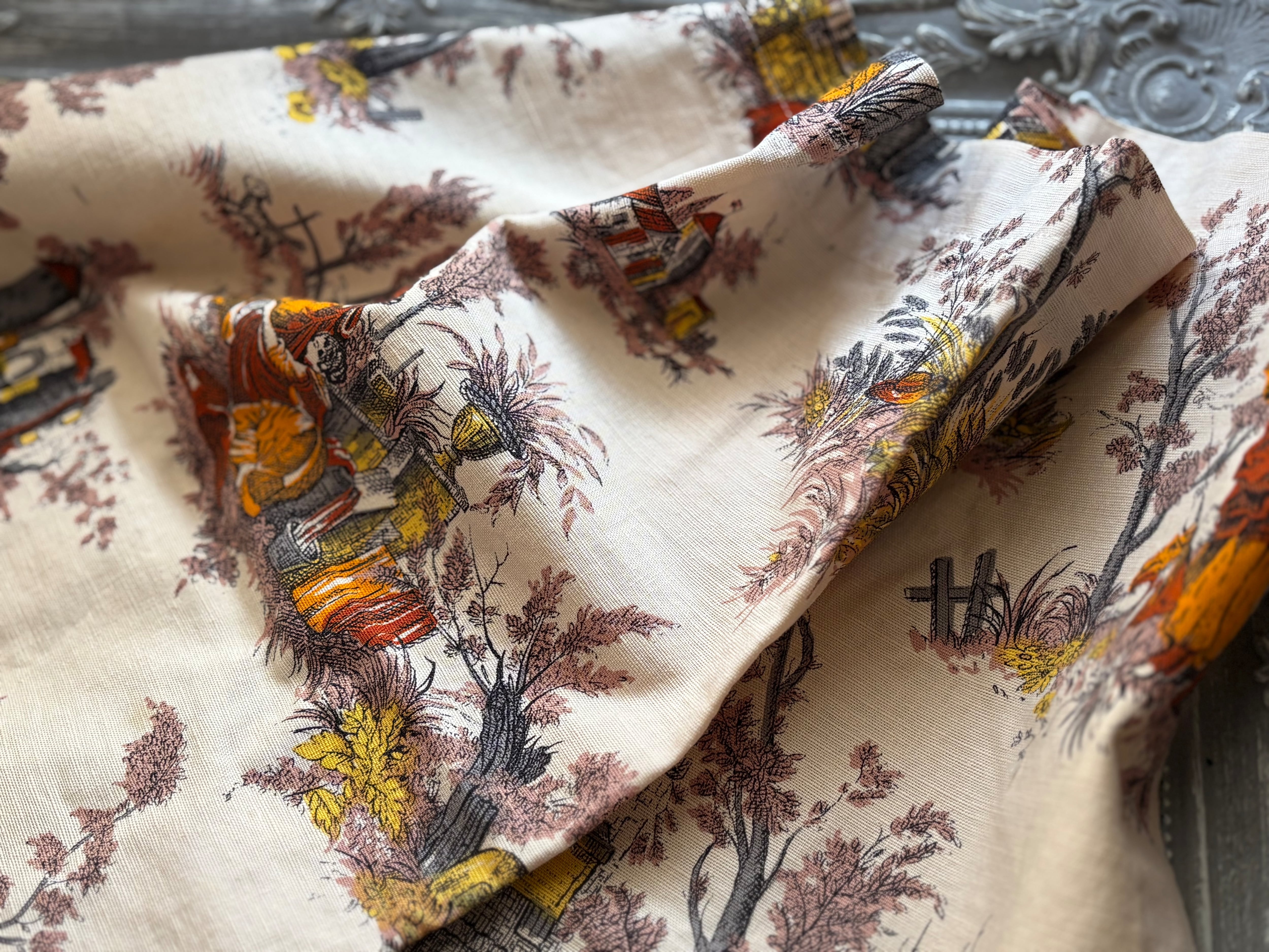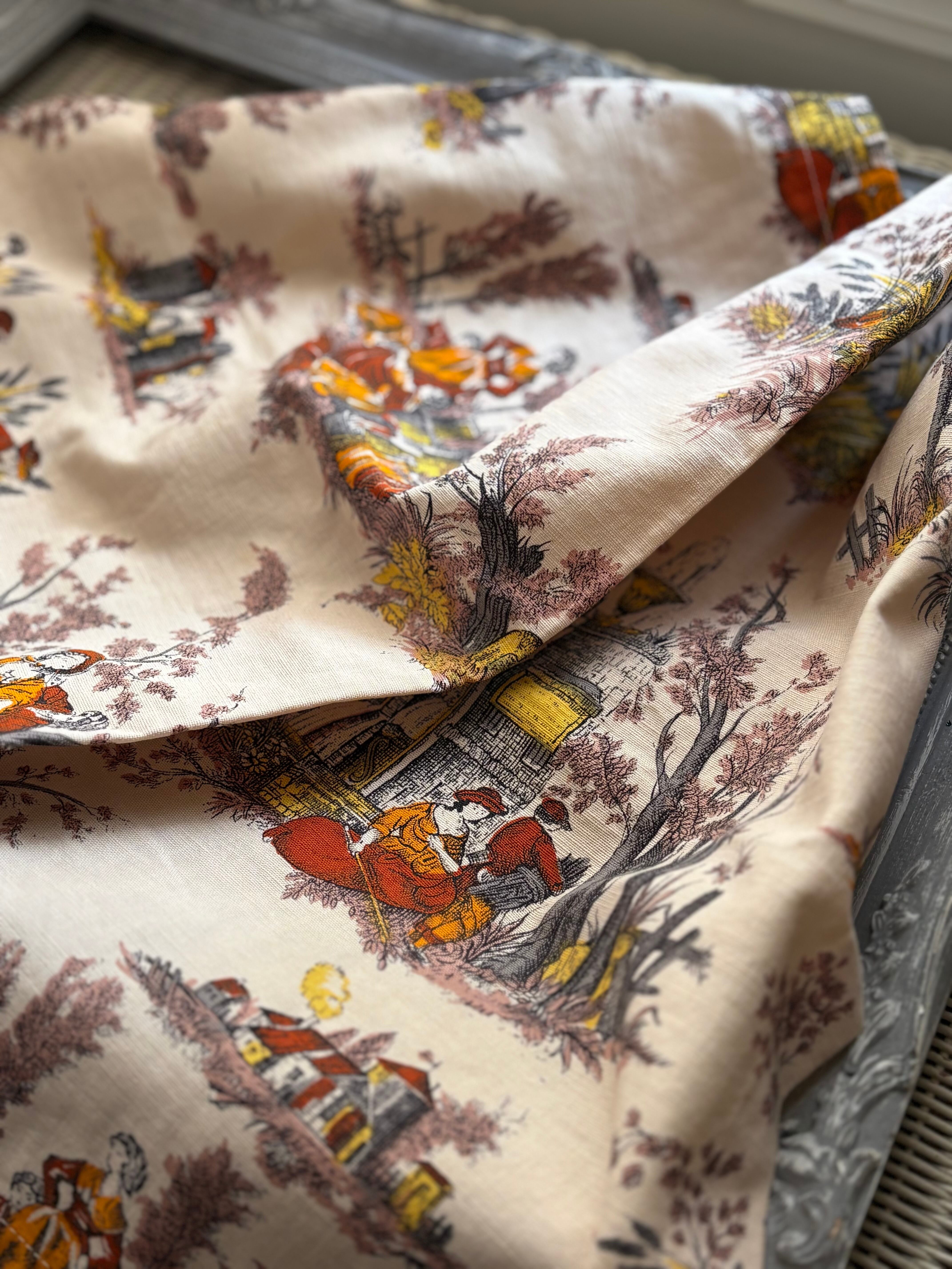 フランスVintage カフェカーテン 1960年代 ROMANEX DE BOUSSAC 生地 カルトナージュ インテリア 撮影小物