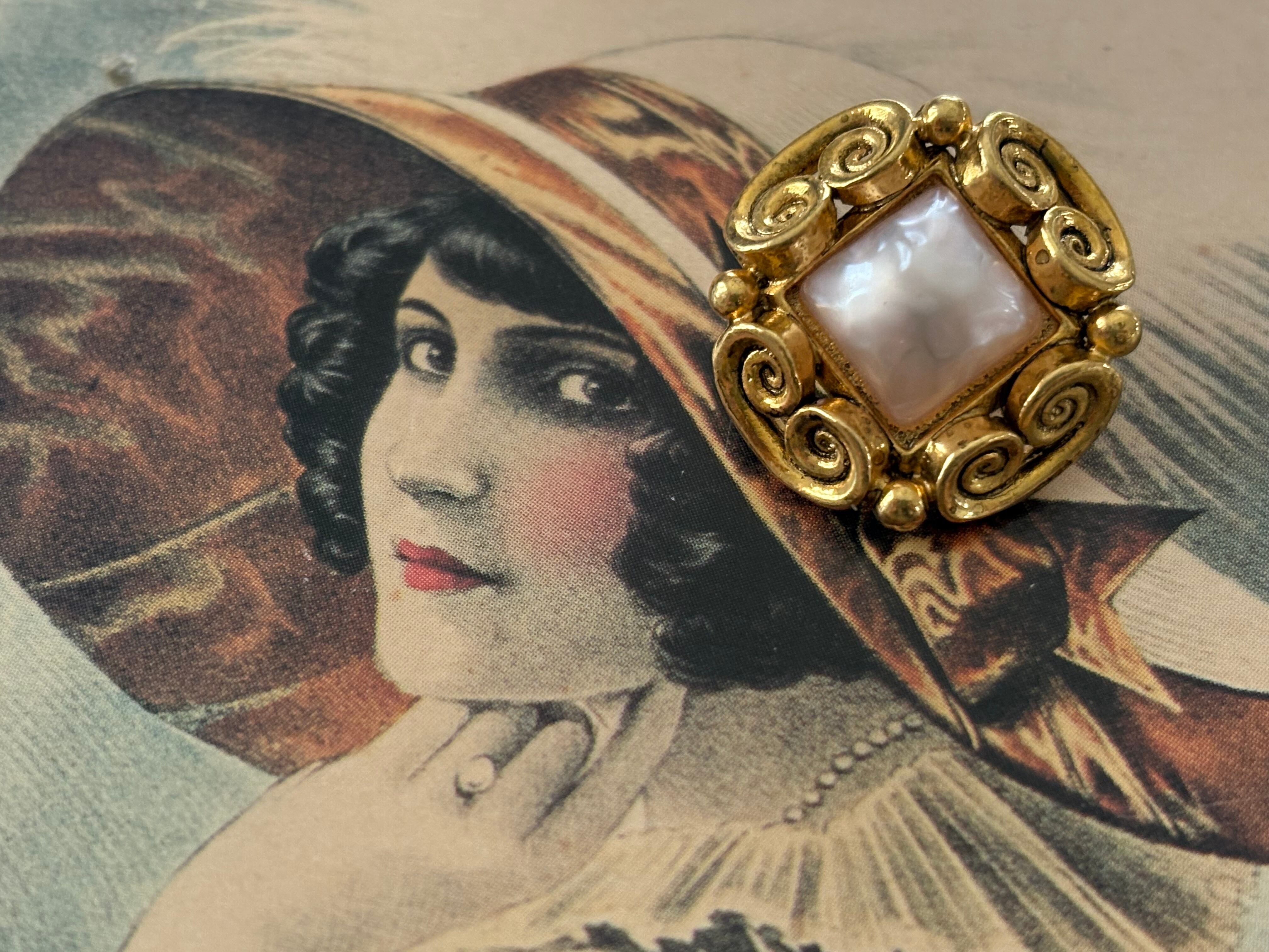 21mm Japanese Vintageボタン パール調カボション メタル 透かし アクセサリーパーツ デコレーション材