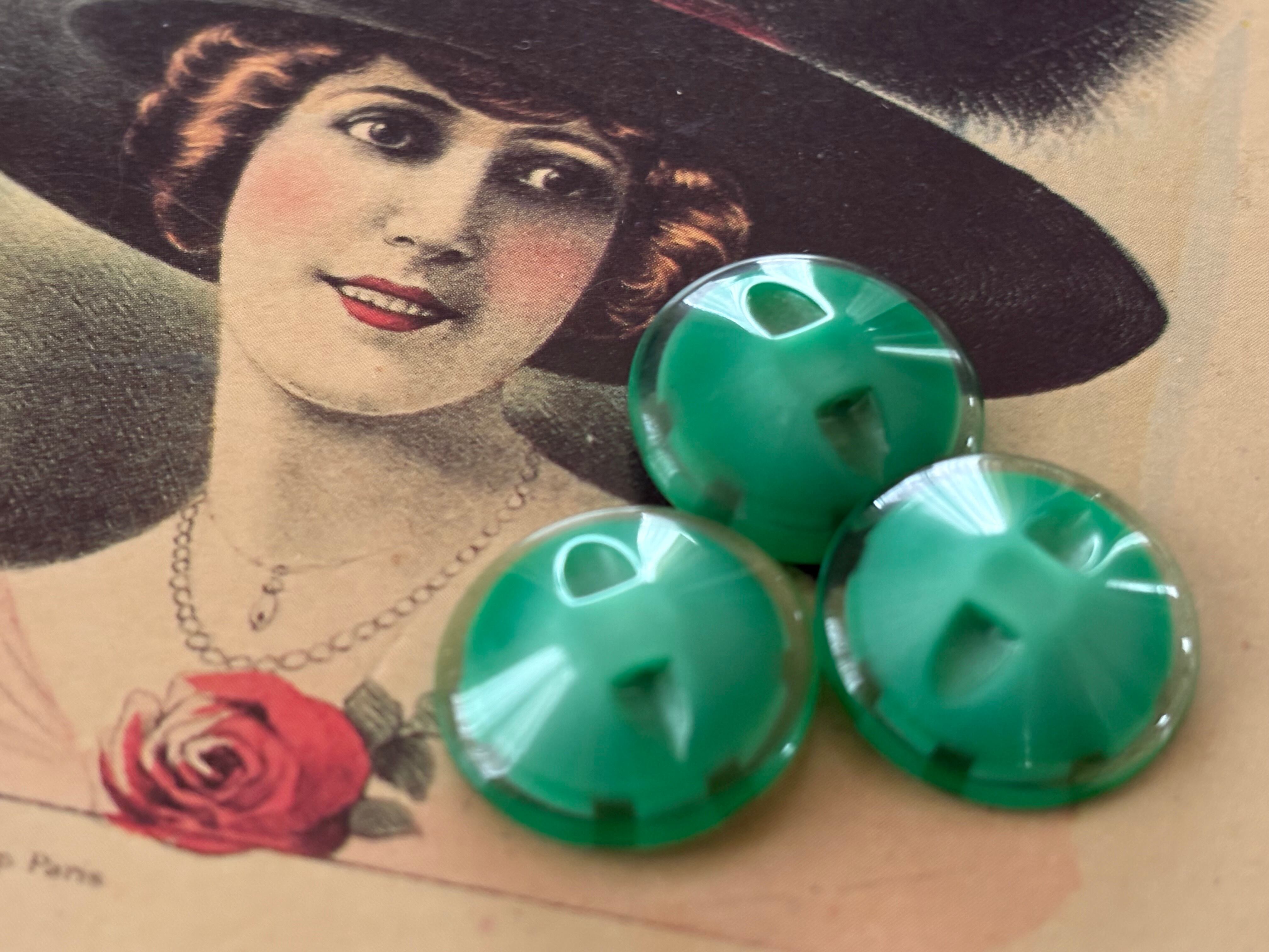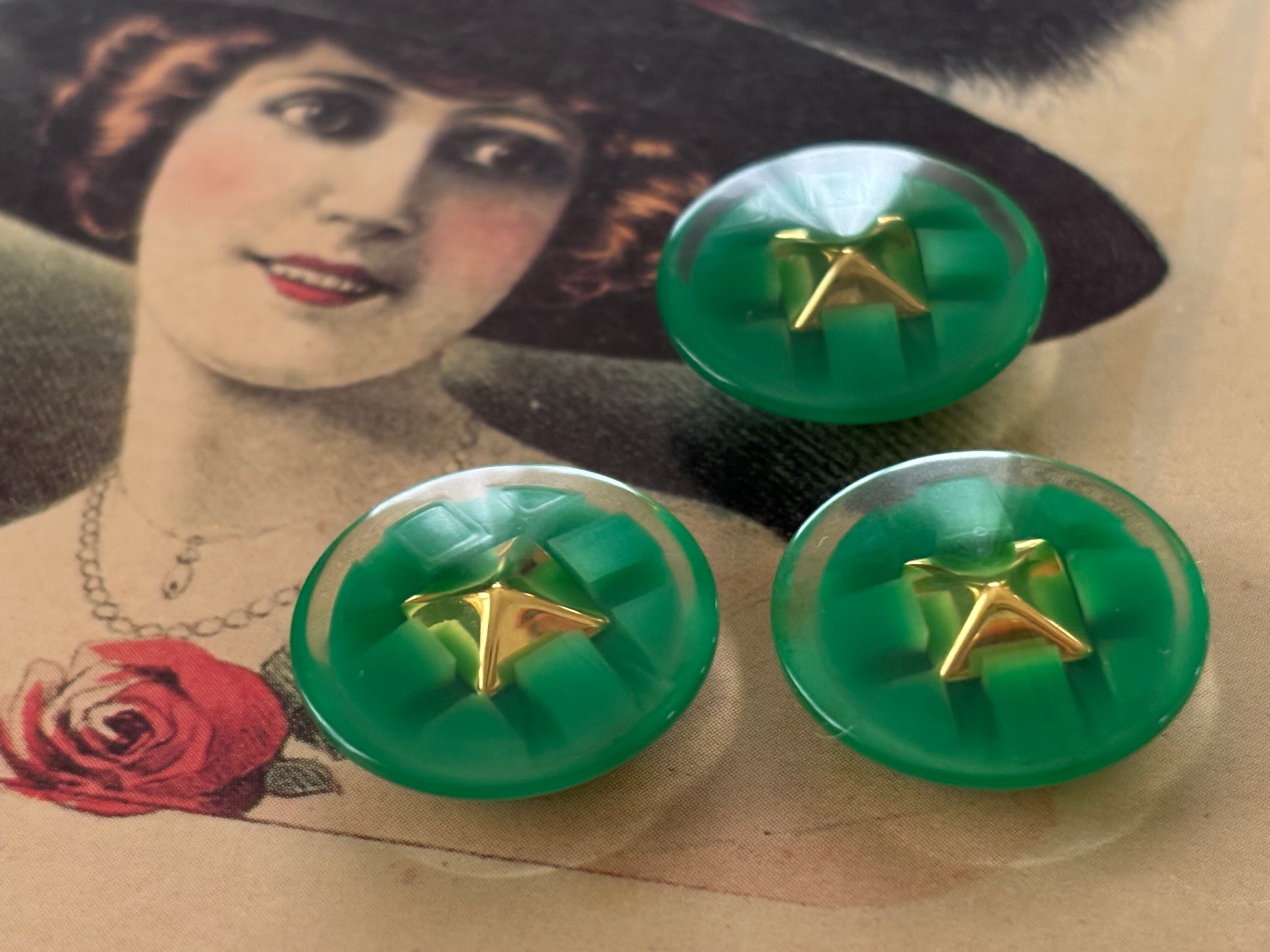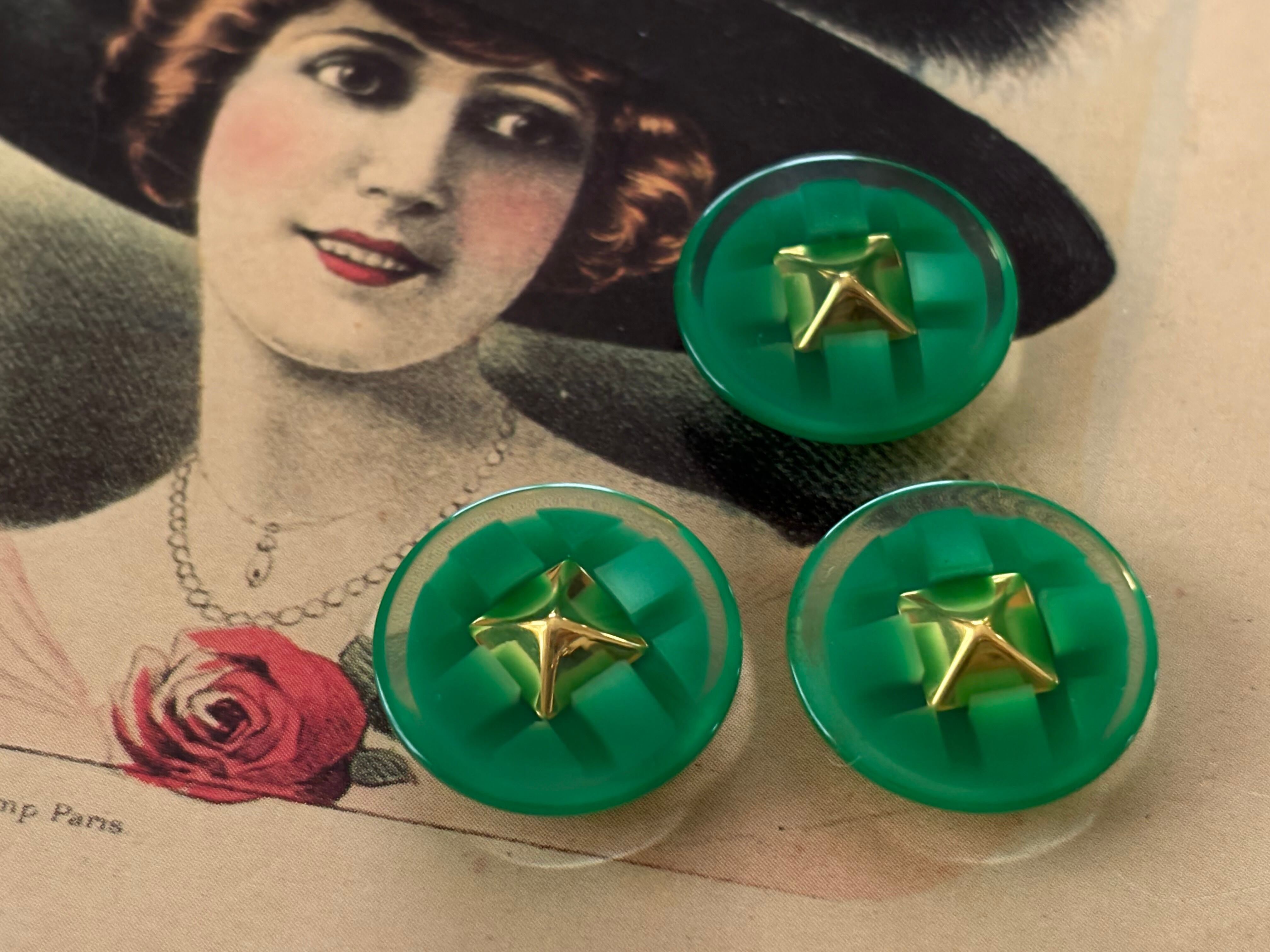 20mm Japanese ヴィンテージボタン グリーン×ゴールド 樹脂ボタン レトロ アクセサリーパーツ 装飾材 カルトナージュ