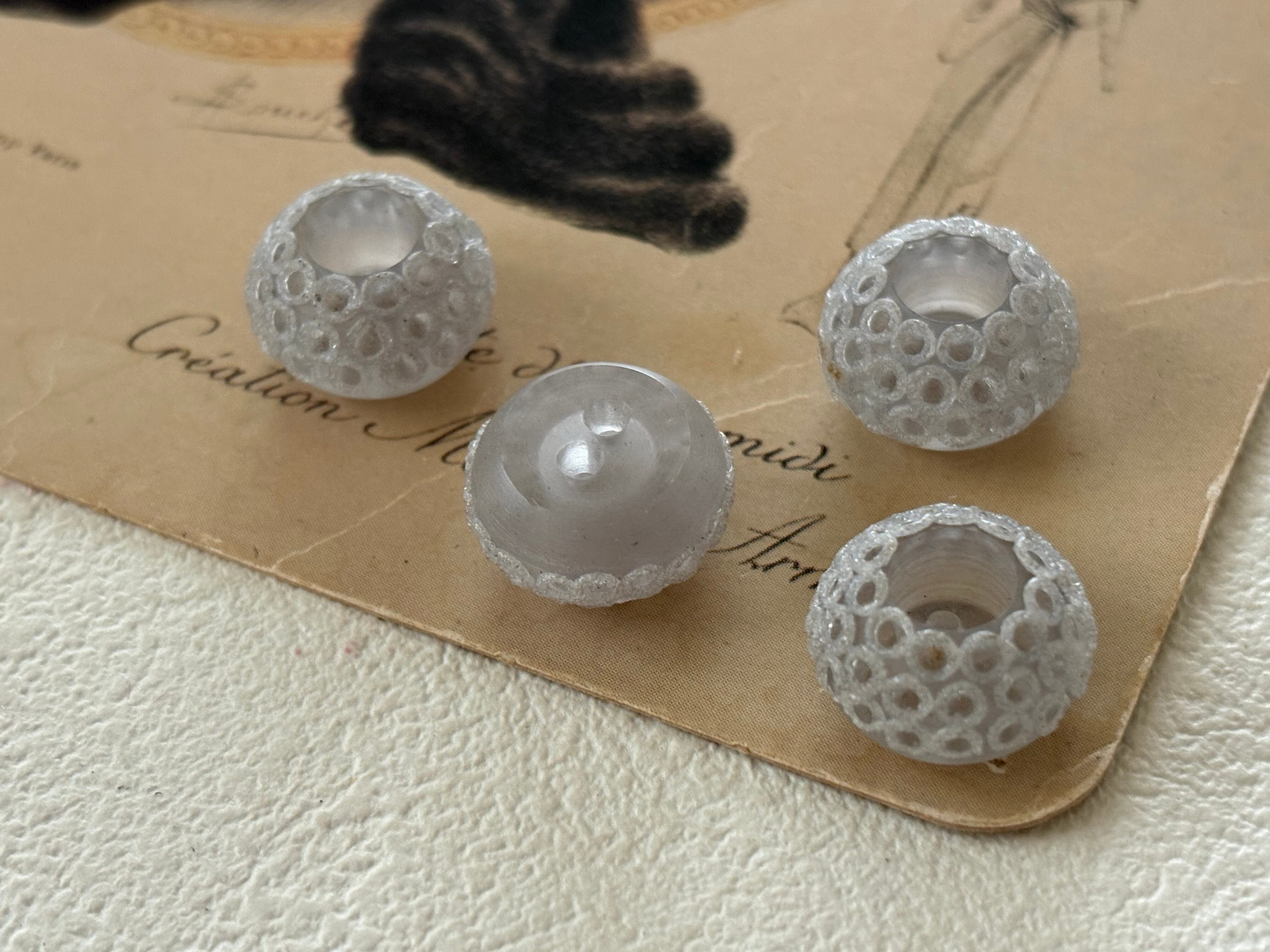 14mm フランス ヴィンテージボタン 1970年代 デッドストック フロスト ライトグレー アクセサリーパーツ