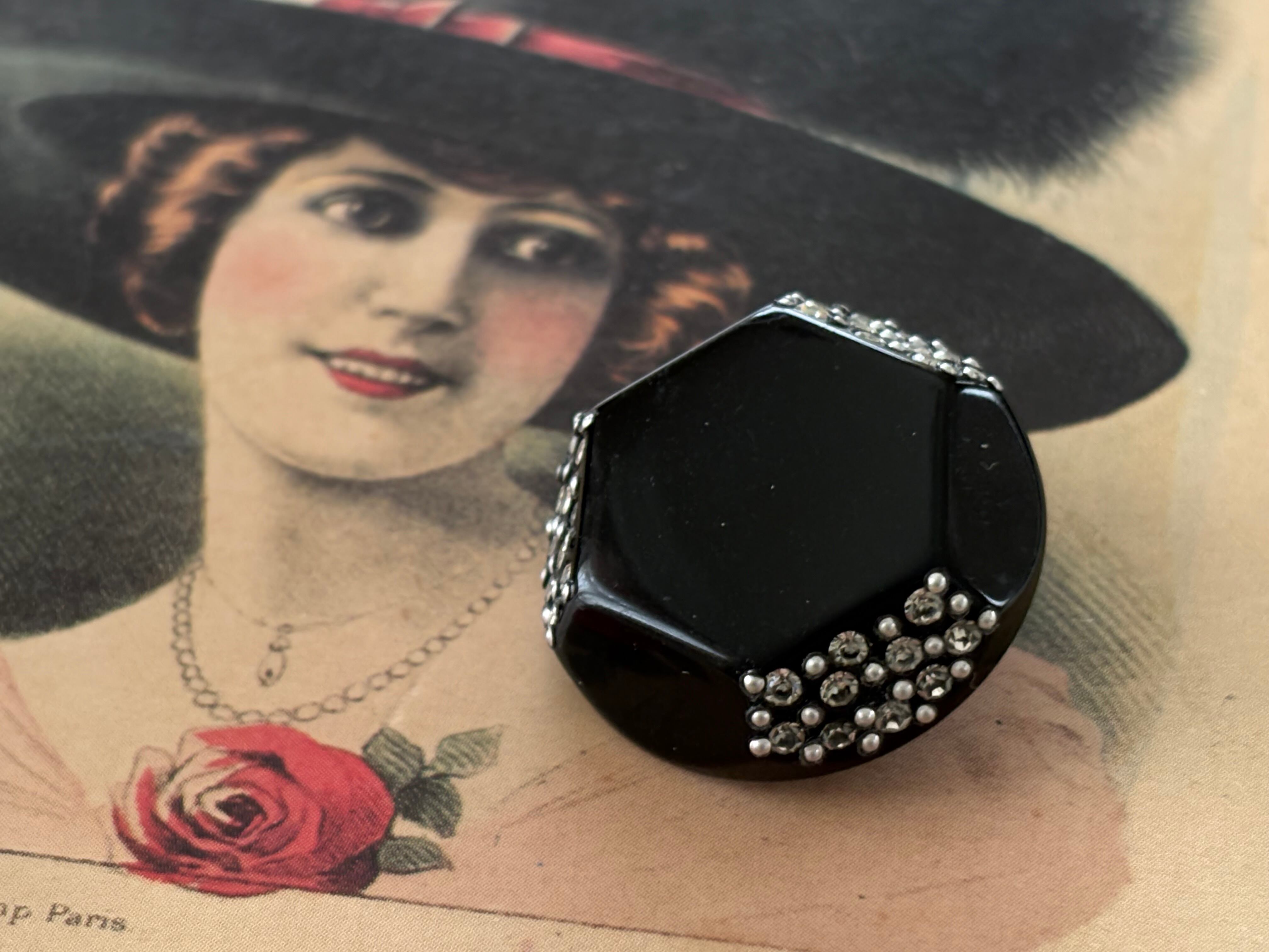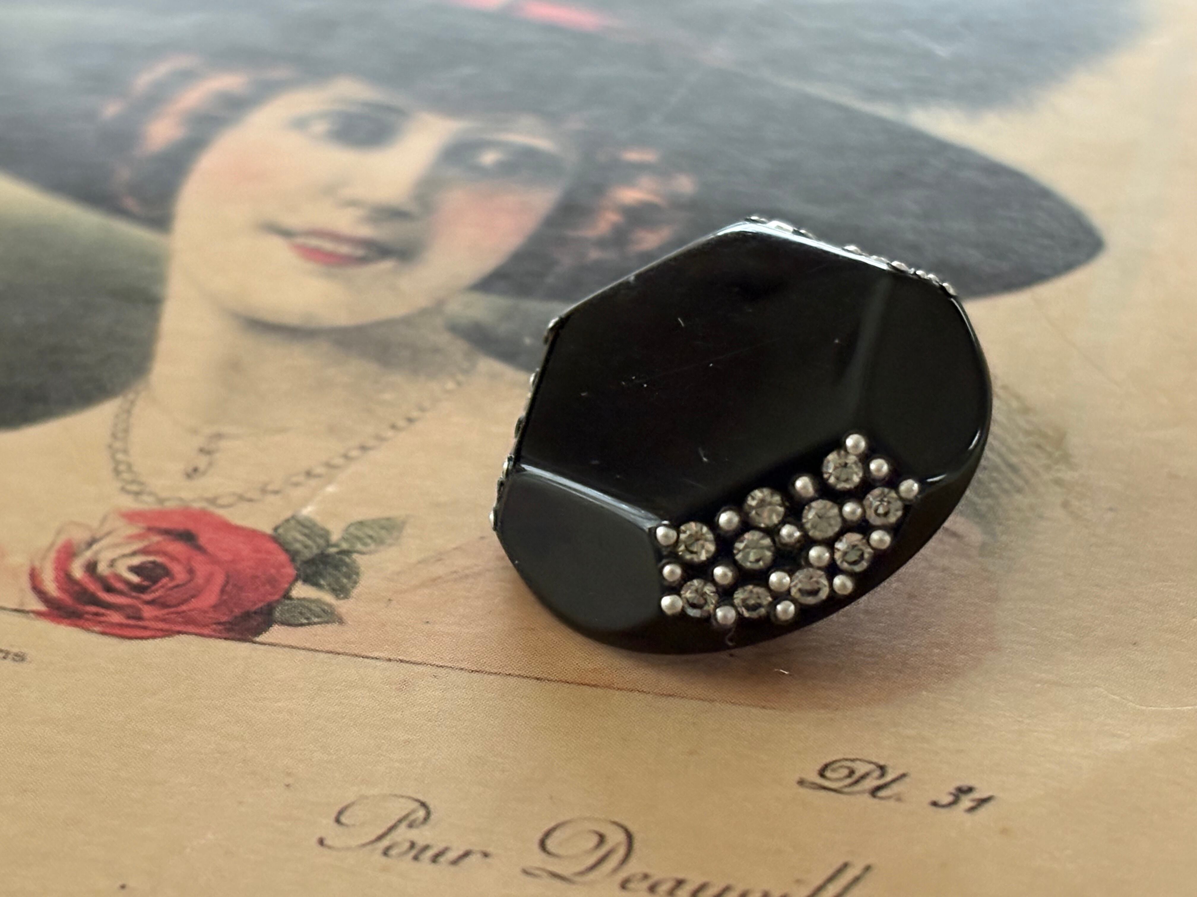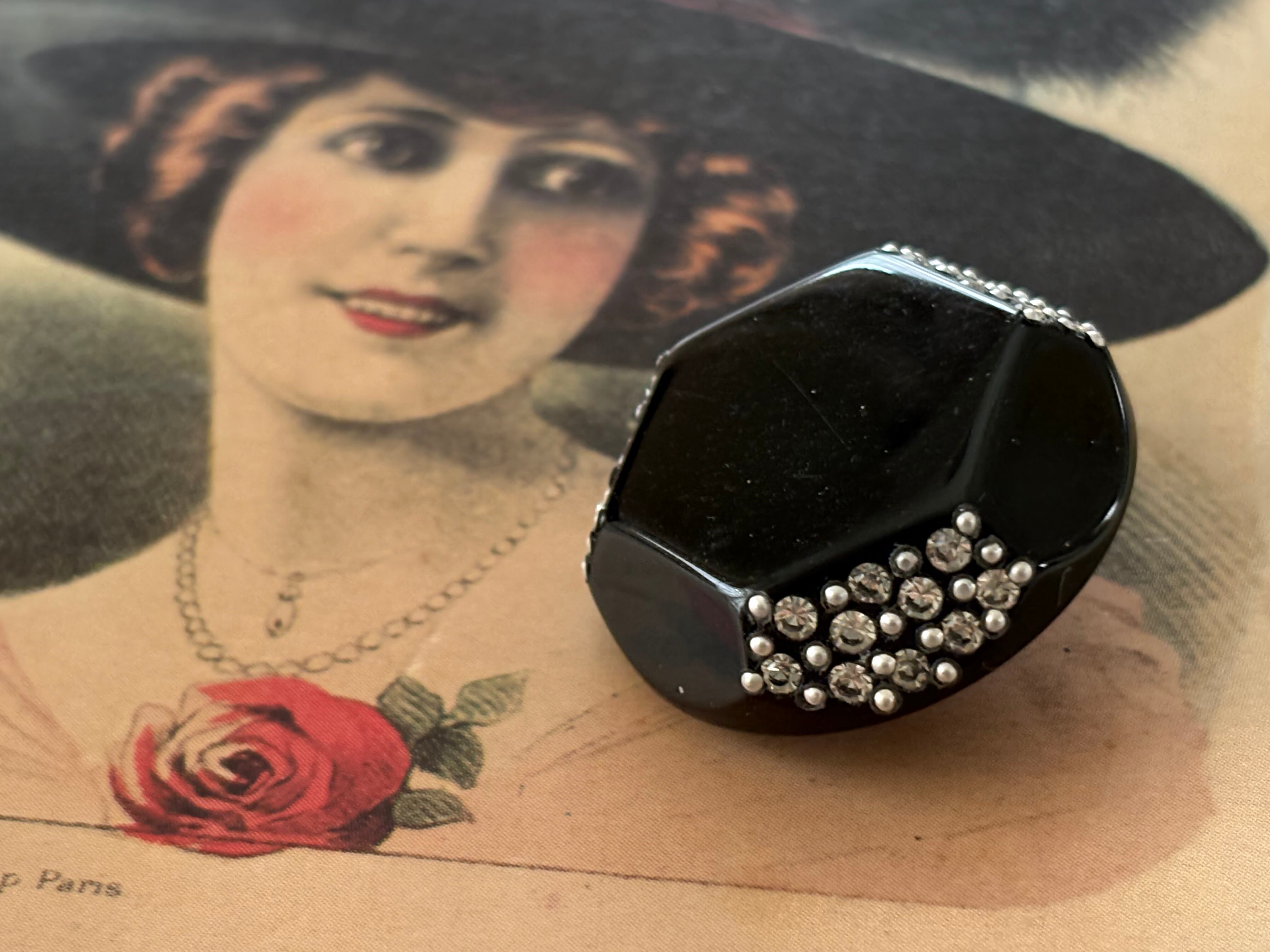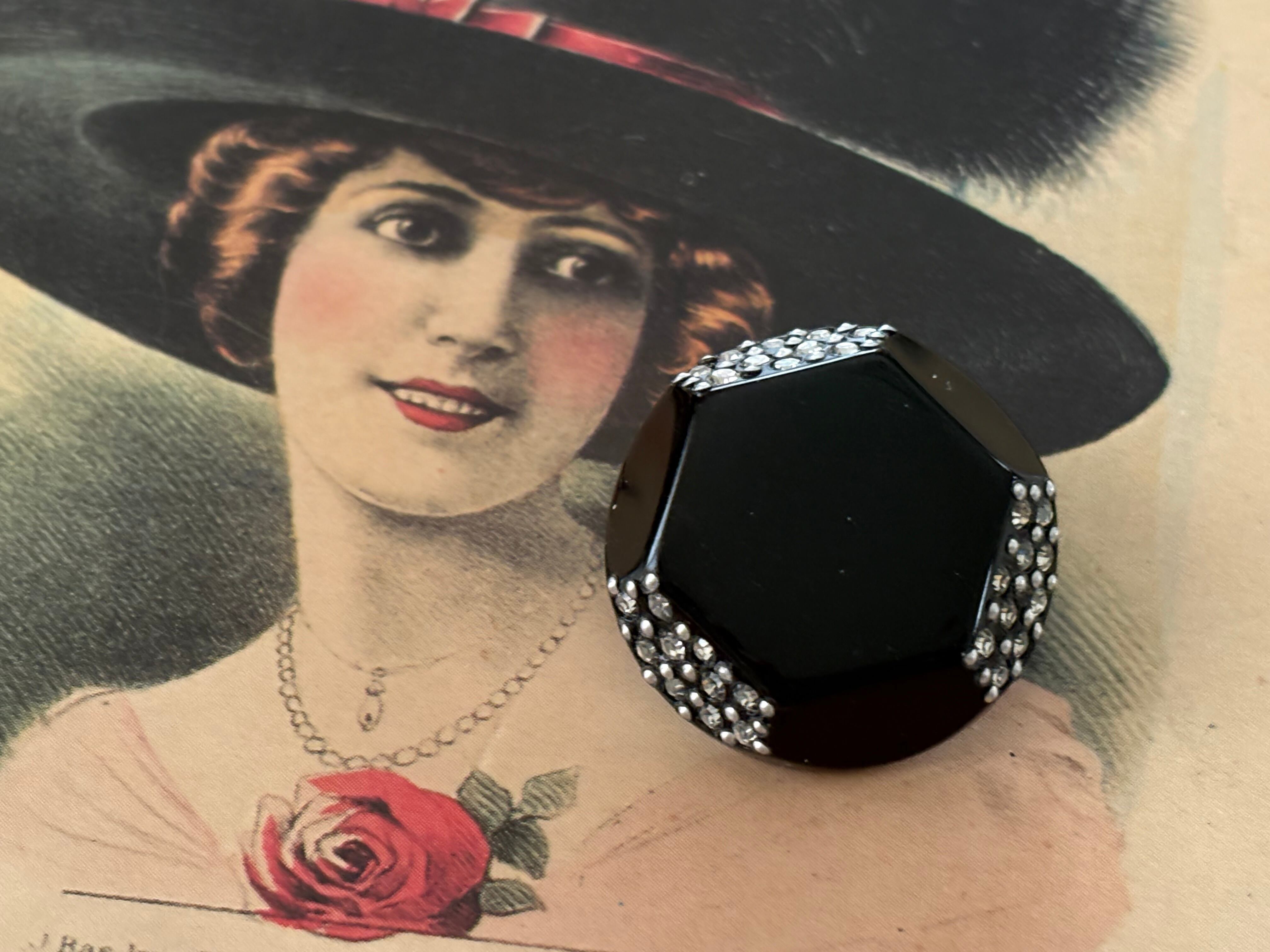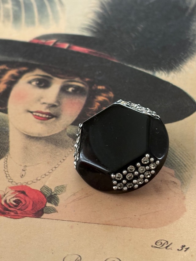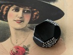 25mm Japanese ヴィンテージボタン ブラック×シルバー ストーン スタッズ 6角形 アクセサリーパーツ デコレーション材 レトロボタン