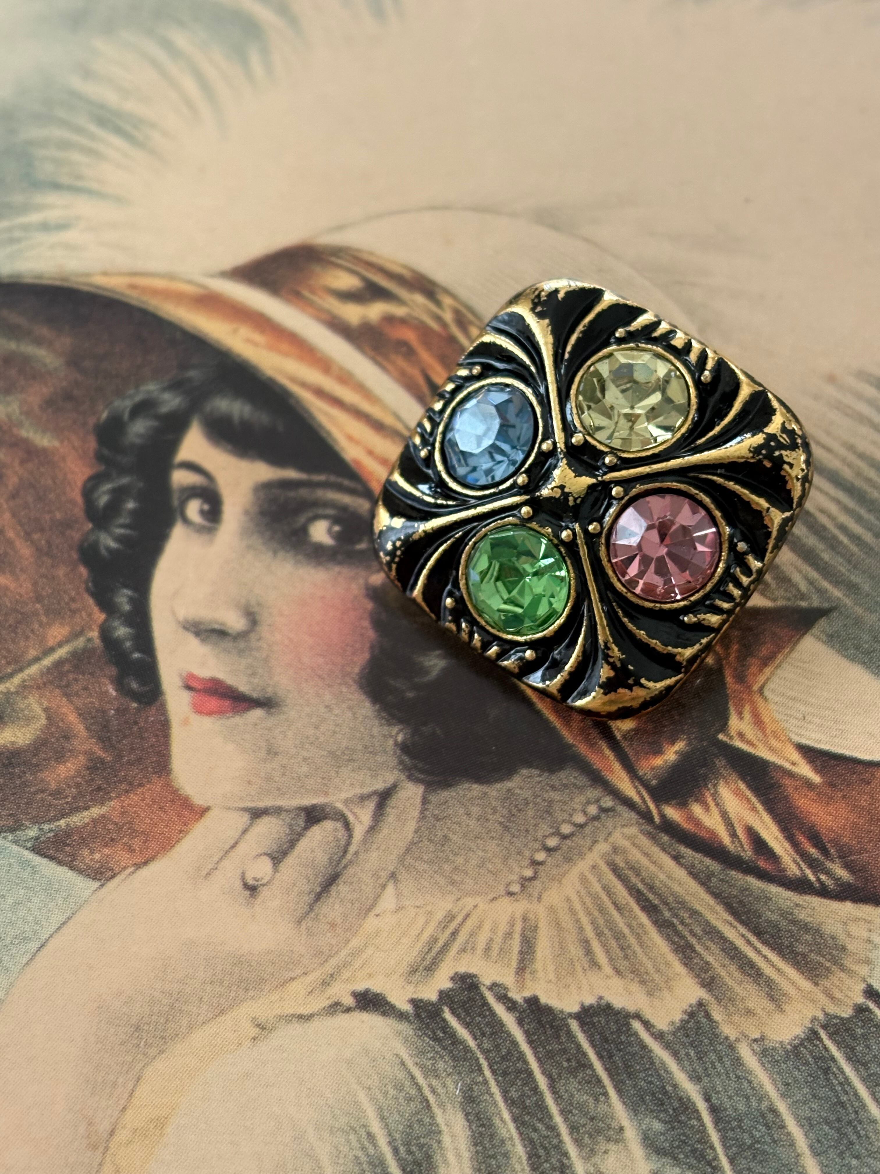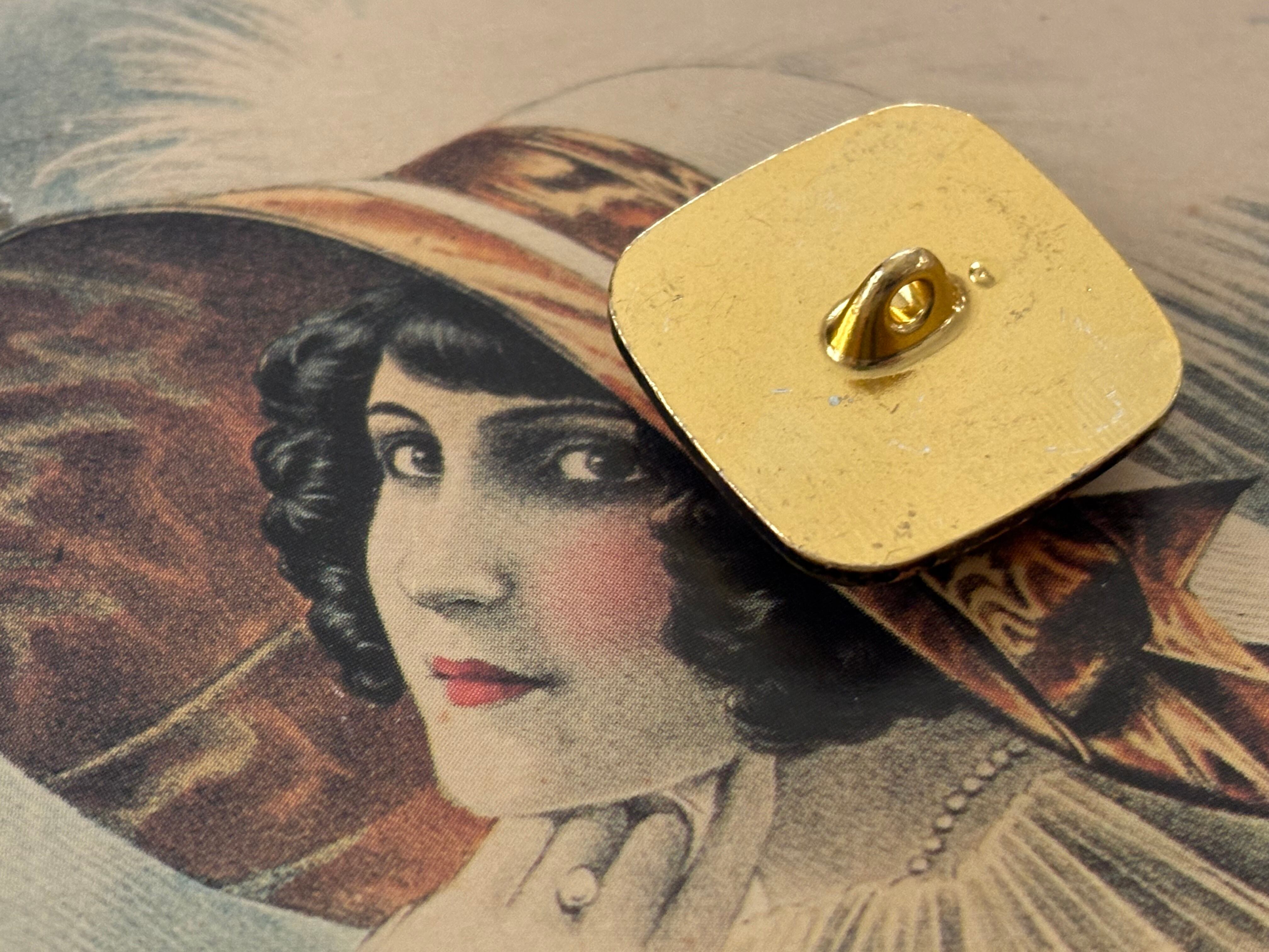 22mm 輸入デザインボタン メタル×ストーン ゴールド スクウェア アクセサリーパーツ デコレーション材 カルトナージュ 飾りボタン エレガント