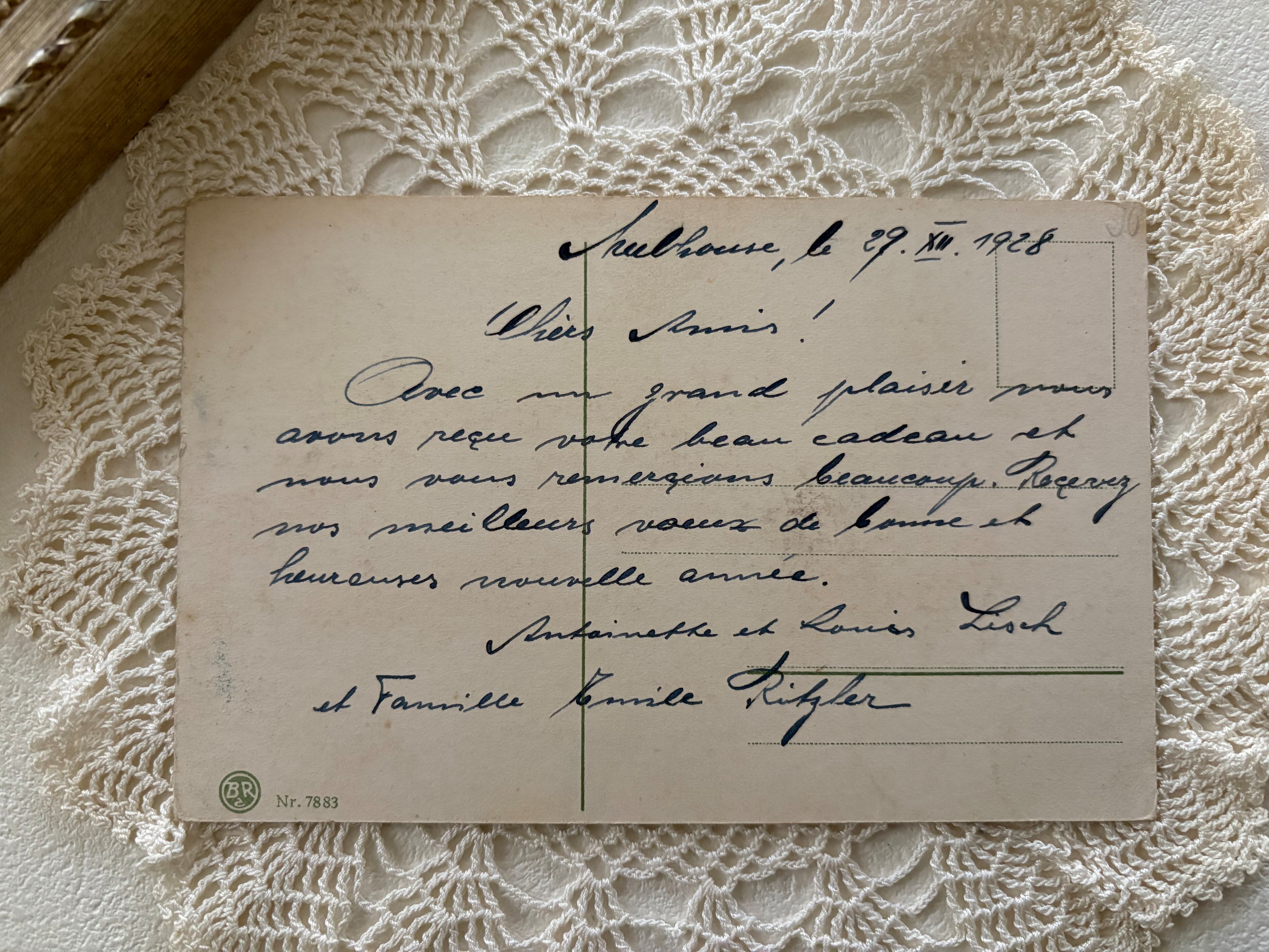 アンティークカード/ヴィンテージカードは古いものです。書き込み、切手・消印があるものをはじめ、経年による汚れや変色、破れ、折れ、キズ等のダメージがございます。