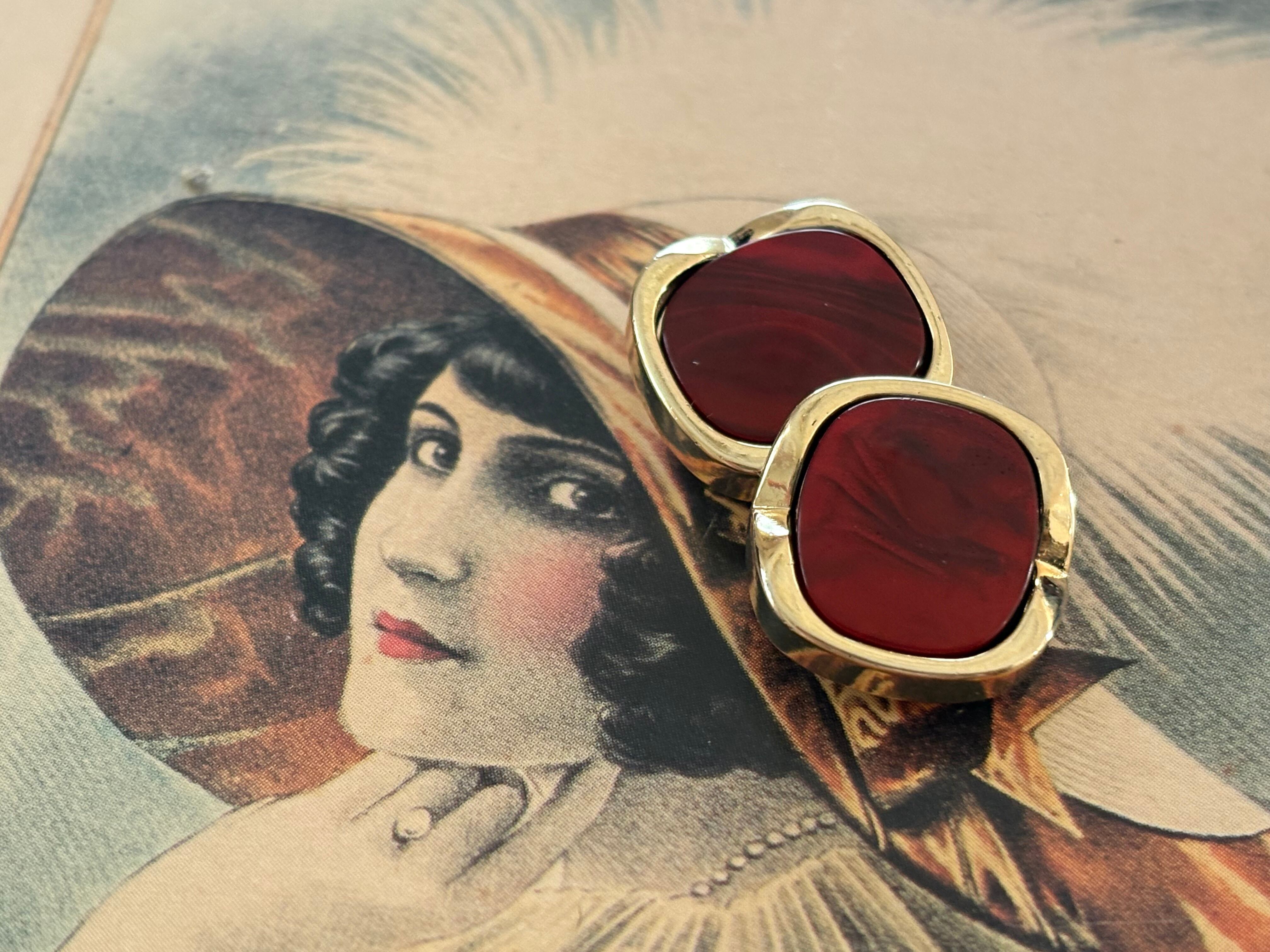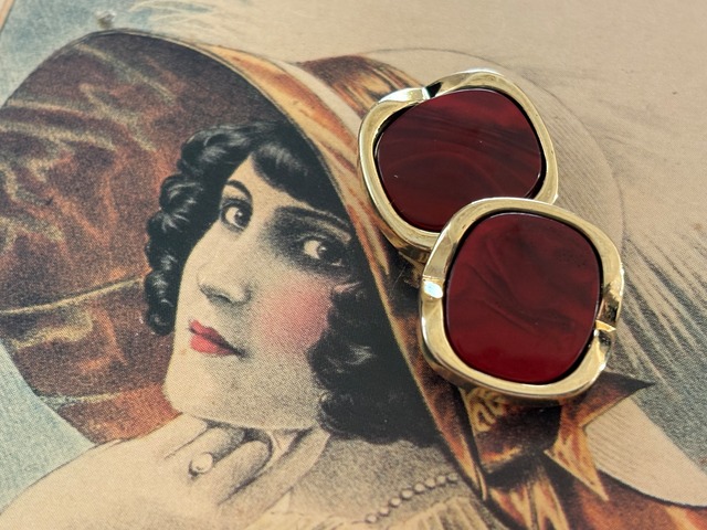 艶やかなゴージャスシックに輝くマーブル模様、レッドカラーのカボション。