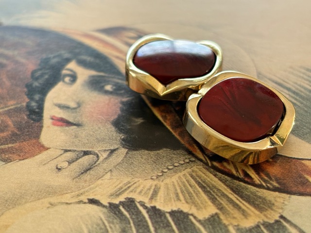 16mm Japanese ヴィンテージボタン レッド×ゴールド マーブル カボション アクセサリーパーツ デコレーション材