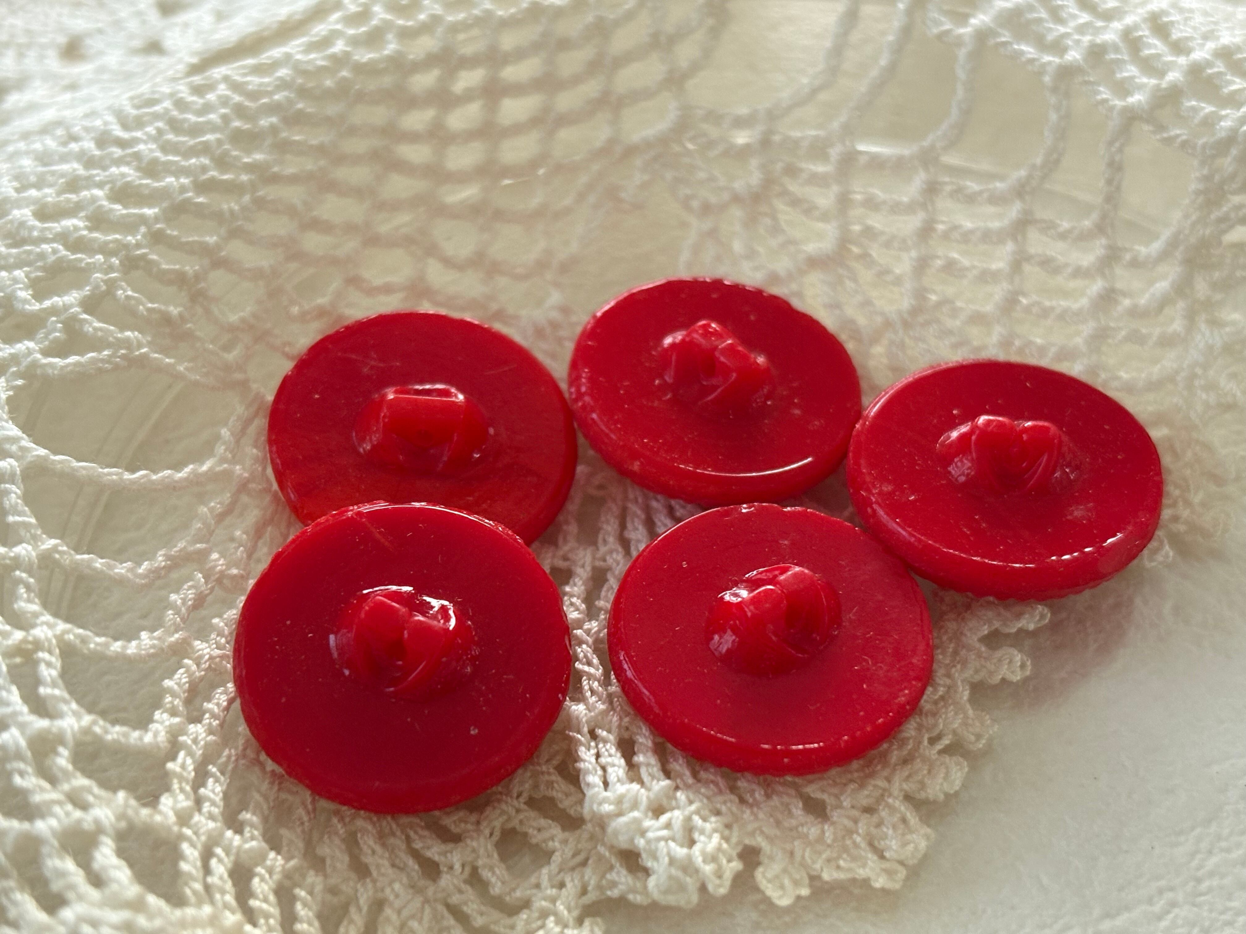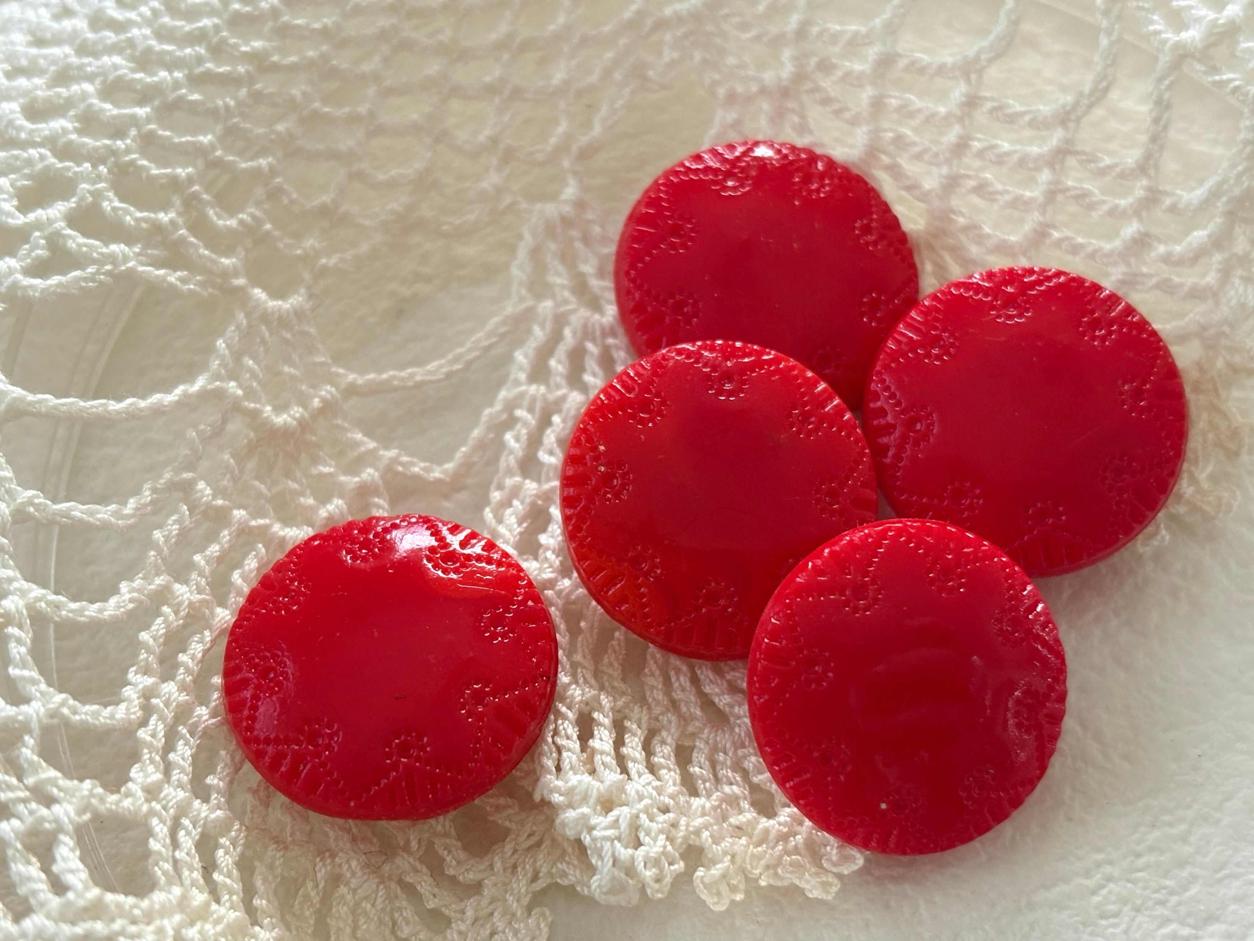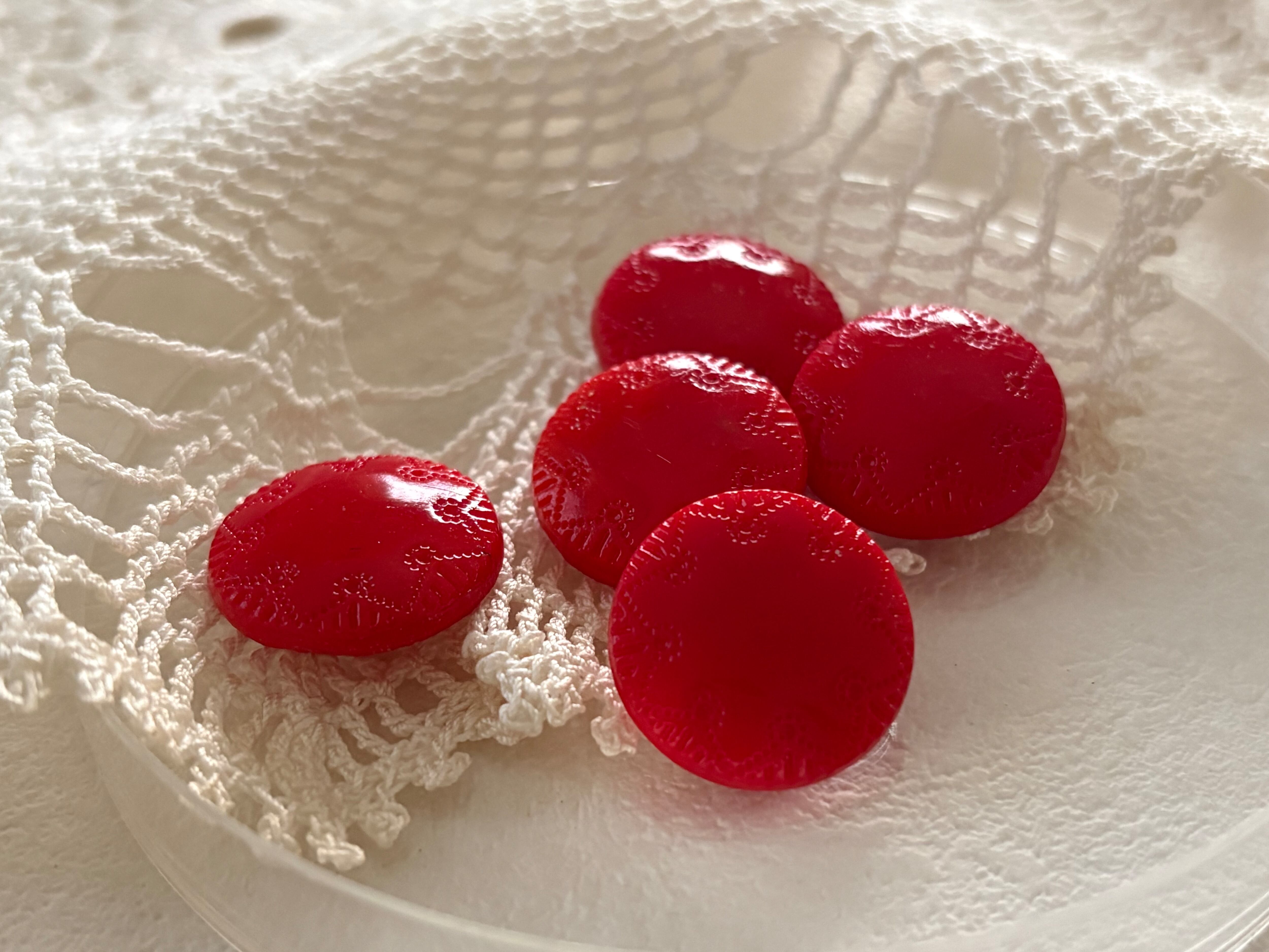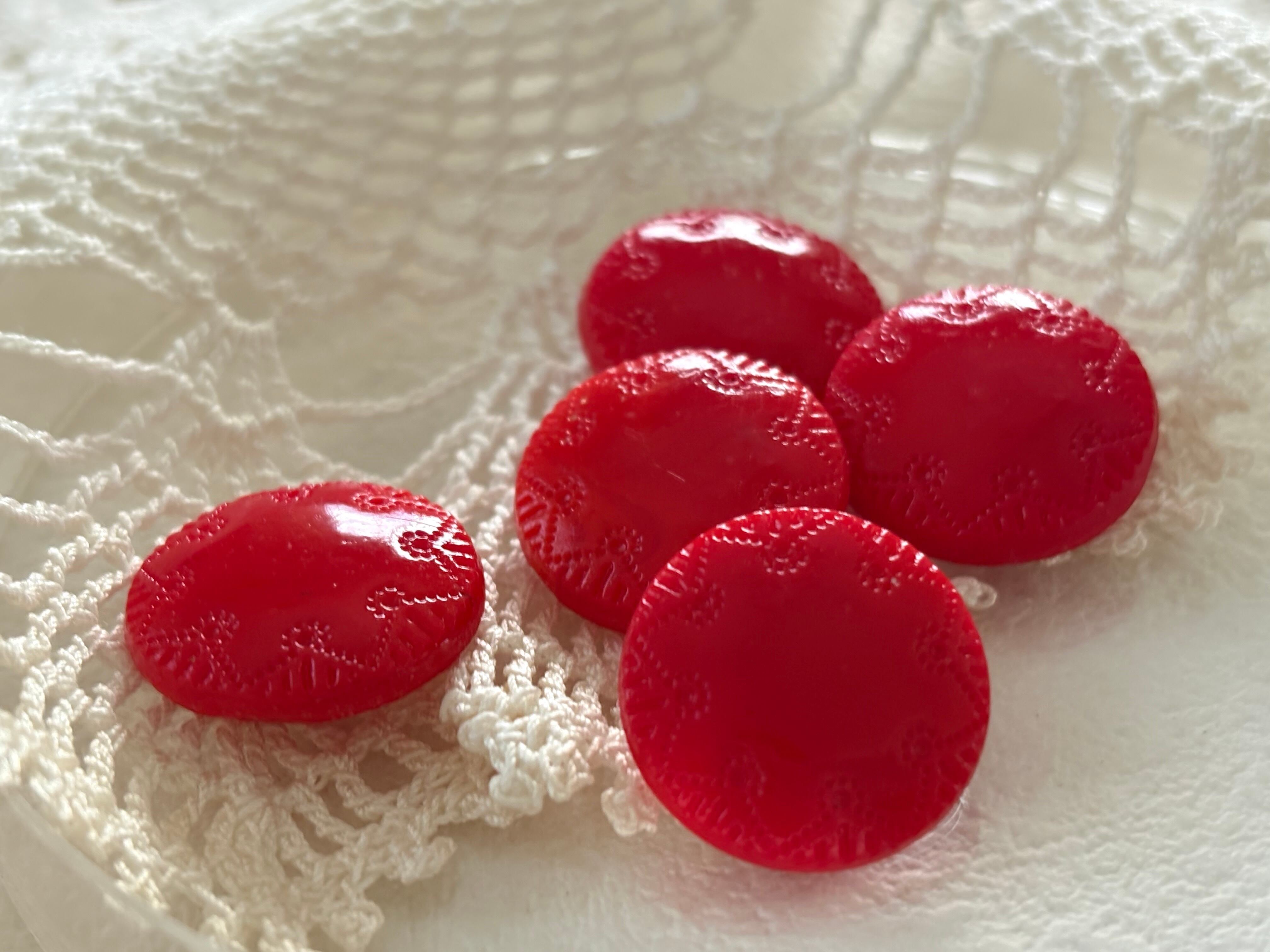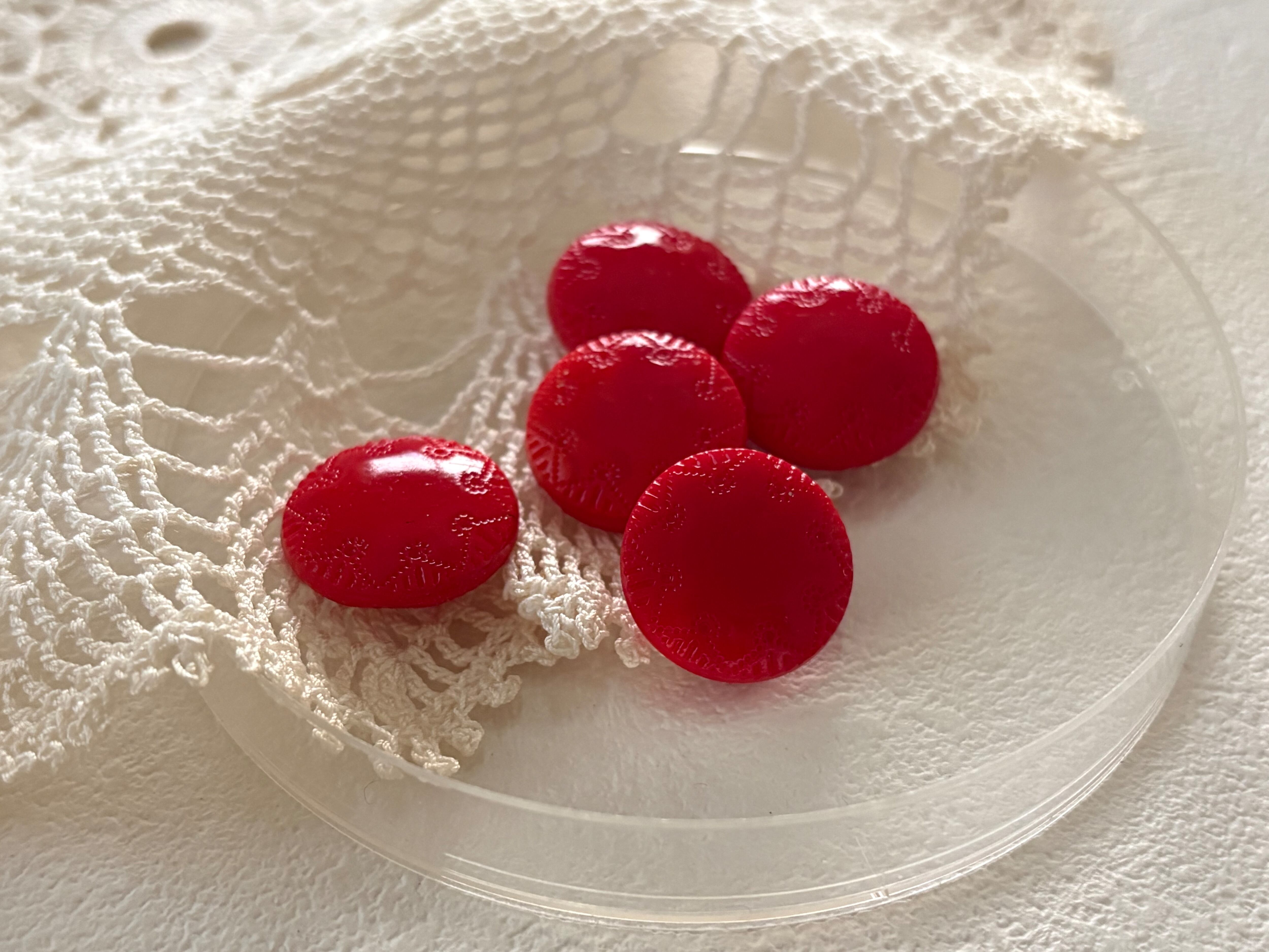 18mm フランス ヴィンテージ ガラスボタン レッド アクセサリーパーツ デコレーション材 赤