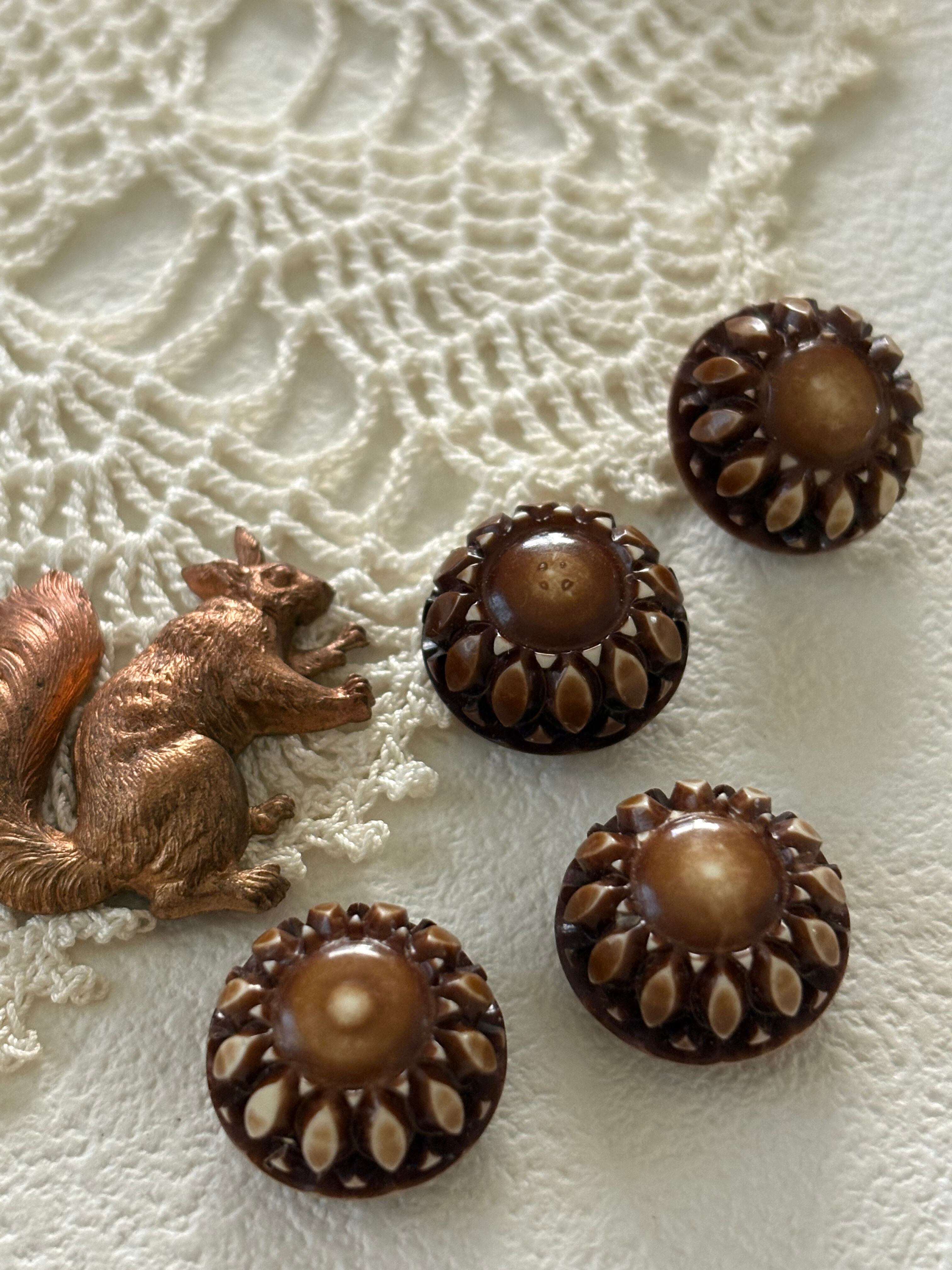 15mm フランス ヴィンテージボタン 1970年代 デッドストック ブラウンプラスチックボタン アクセサリーパーツ