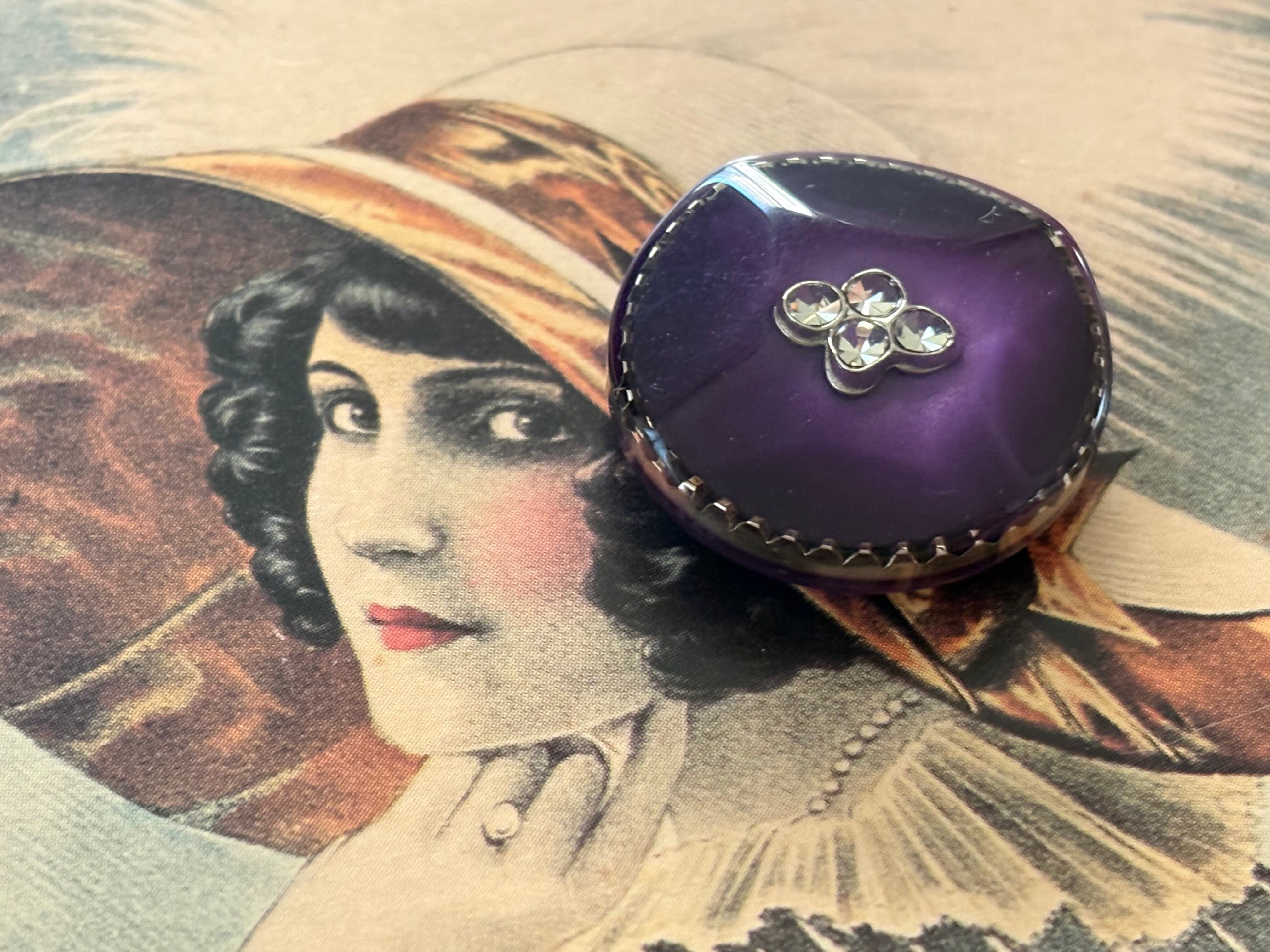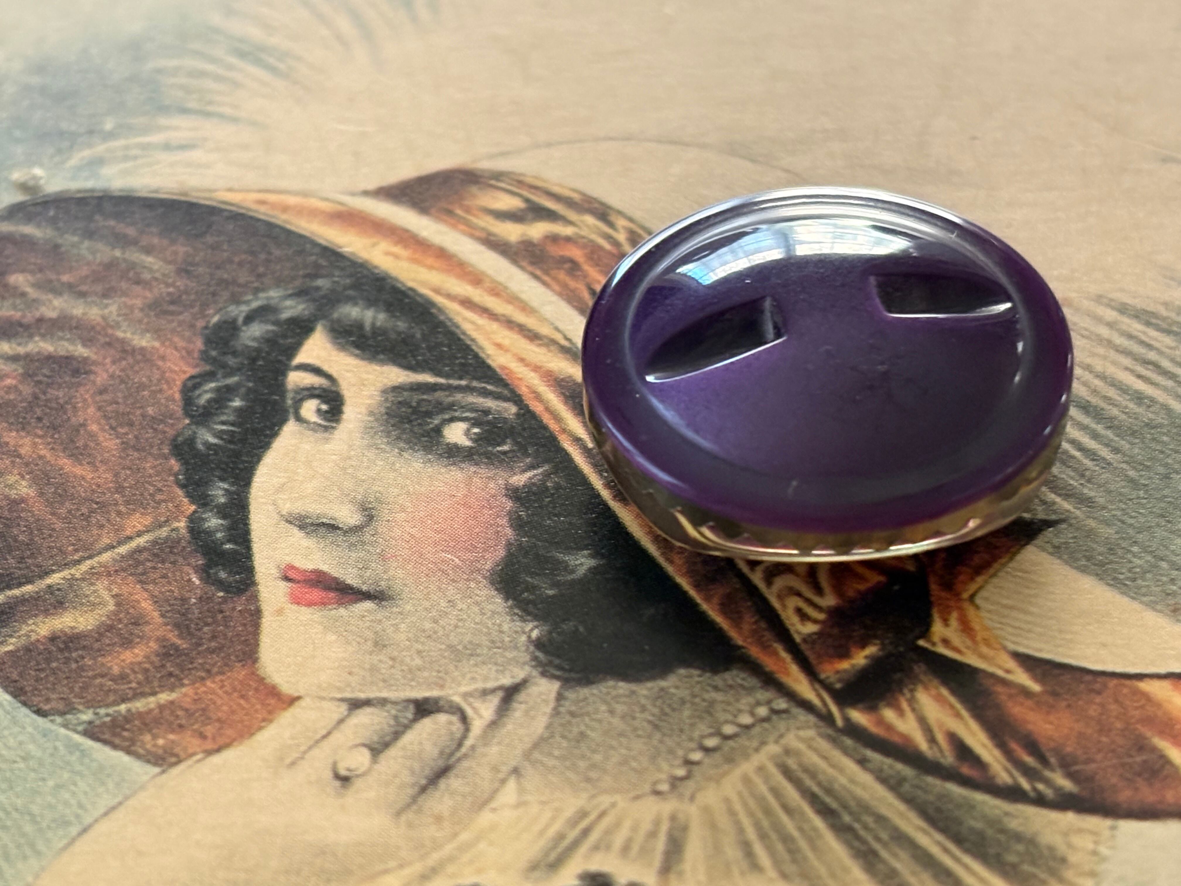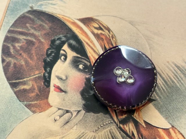 24mm Japanese ヴィンテージボタン パープル×シルバー ストーン レトロ アクセサリーパーツ 装飾材 カルトナージュ