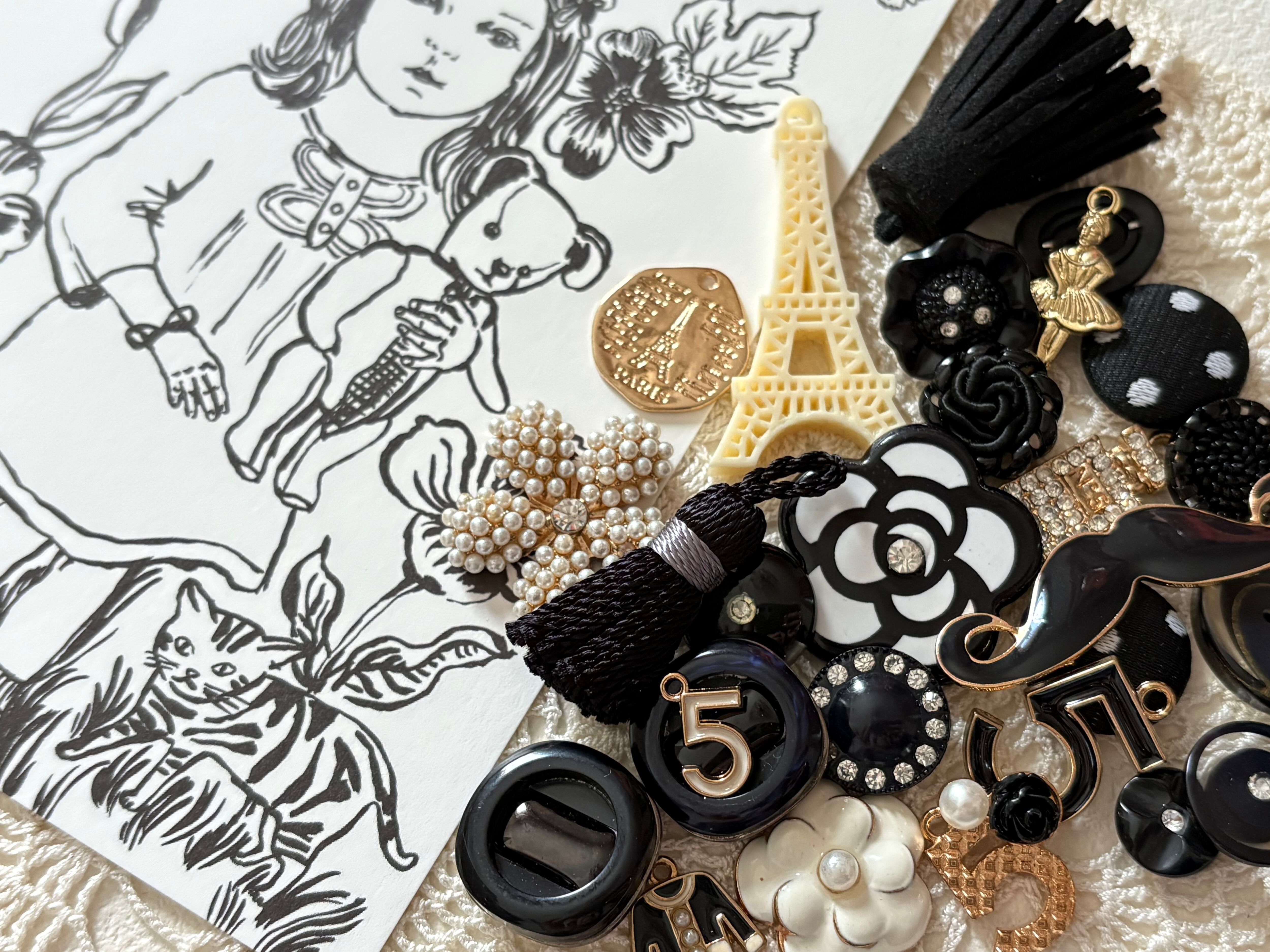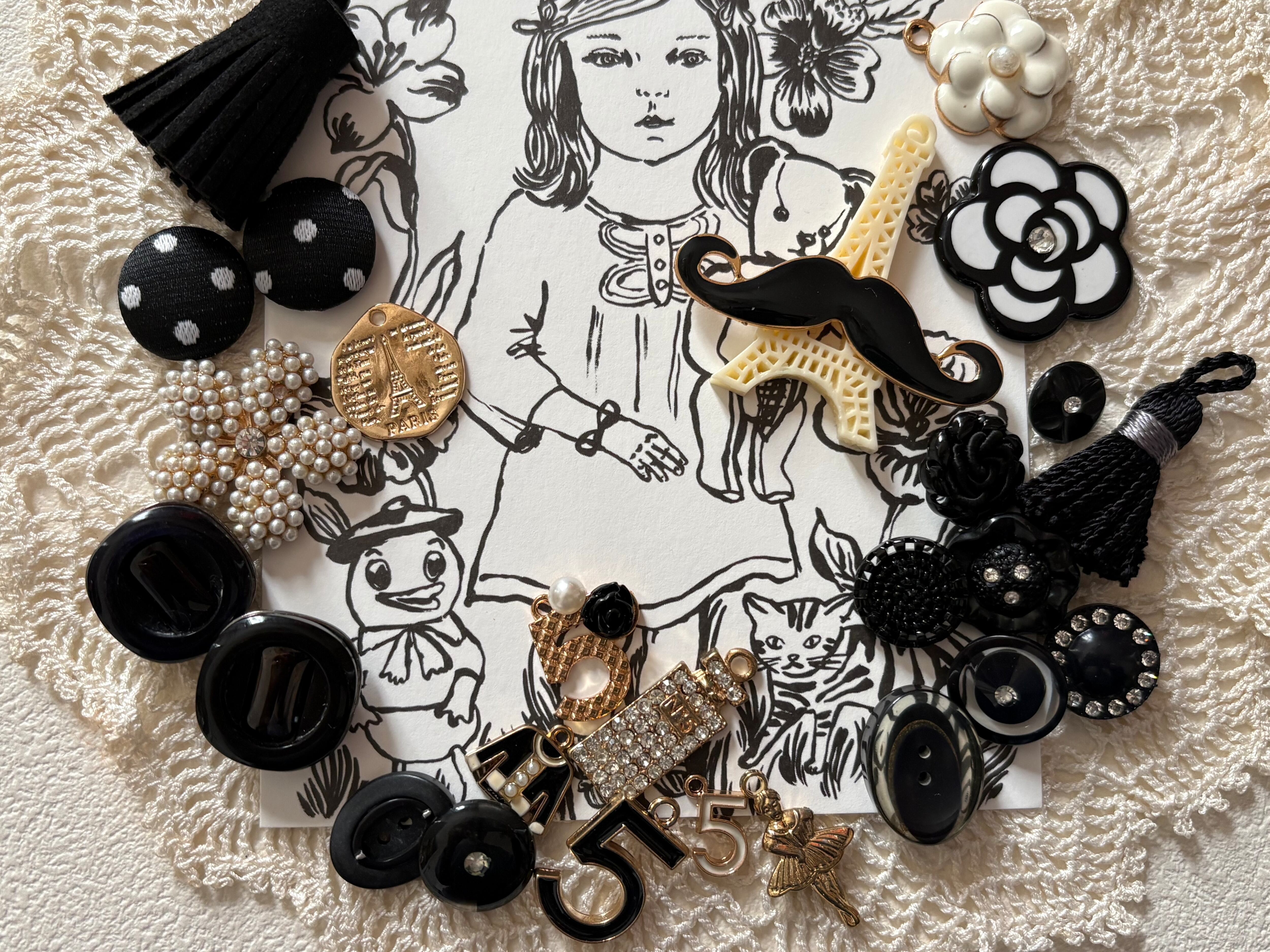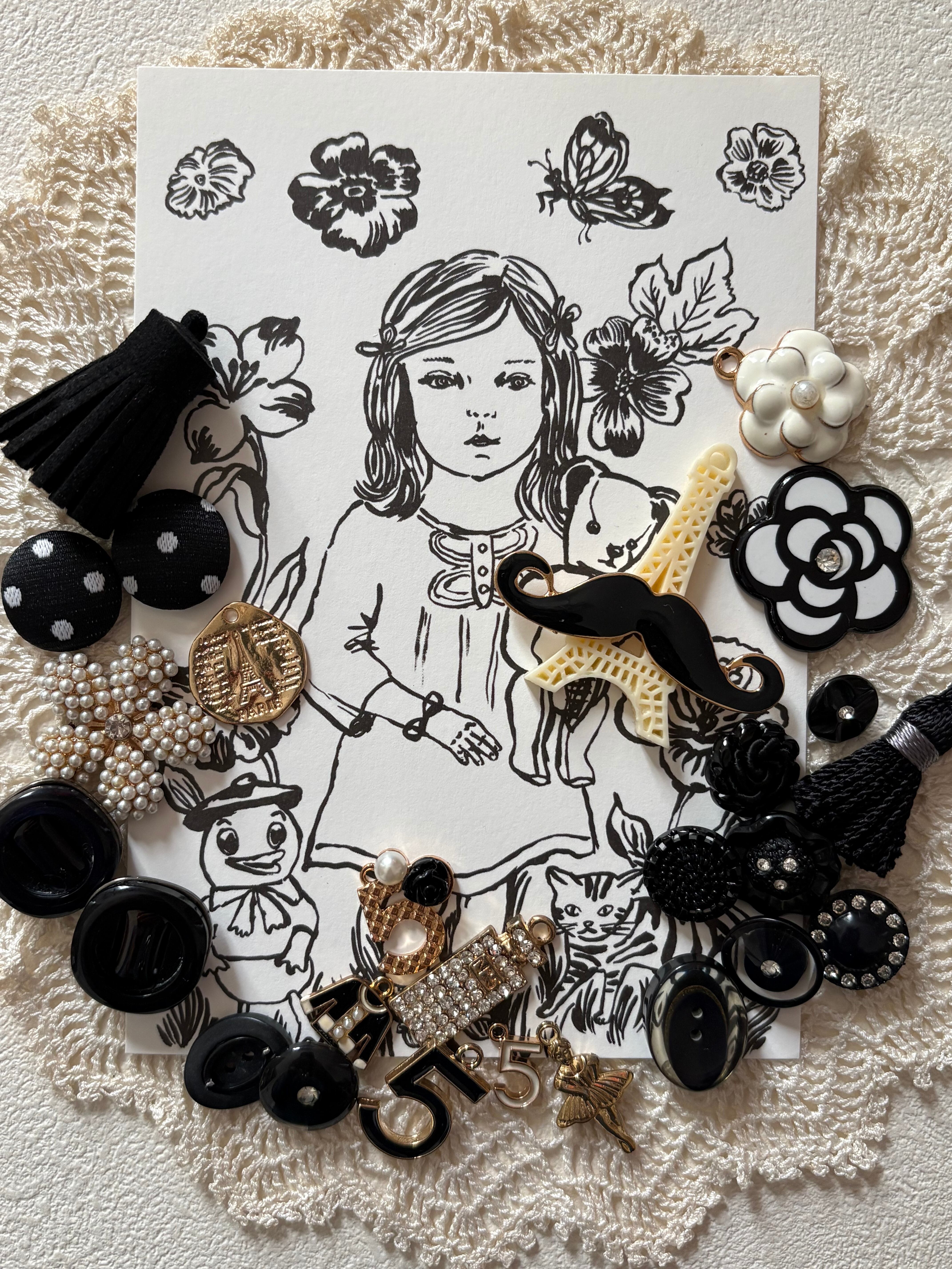 2026Happy Bag ② レトロボタン タッセル 輸入デザインパーツ ナタリーレテ ポストカード モノトーン エッフェル塔
