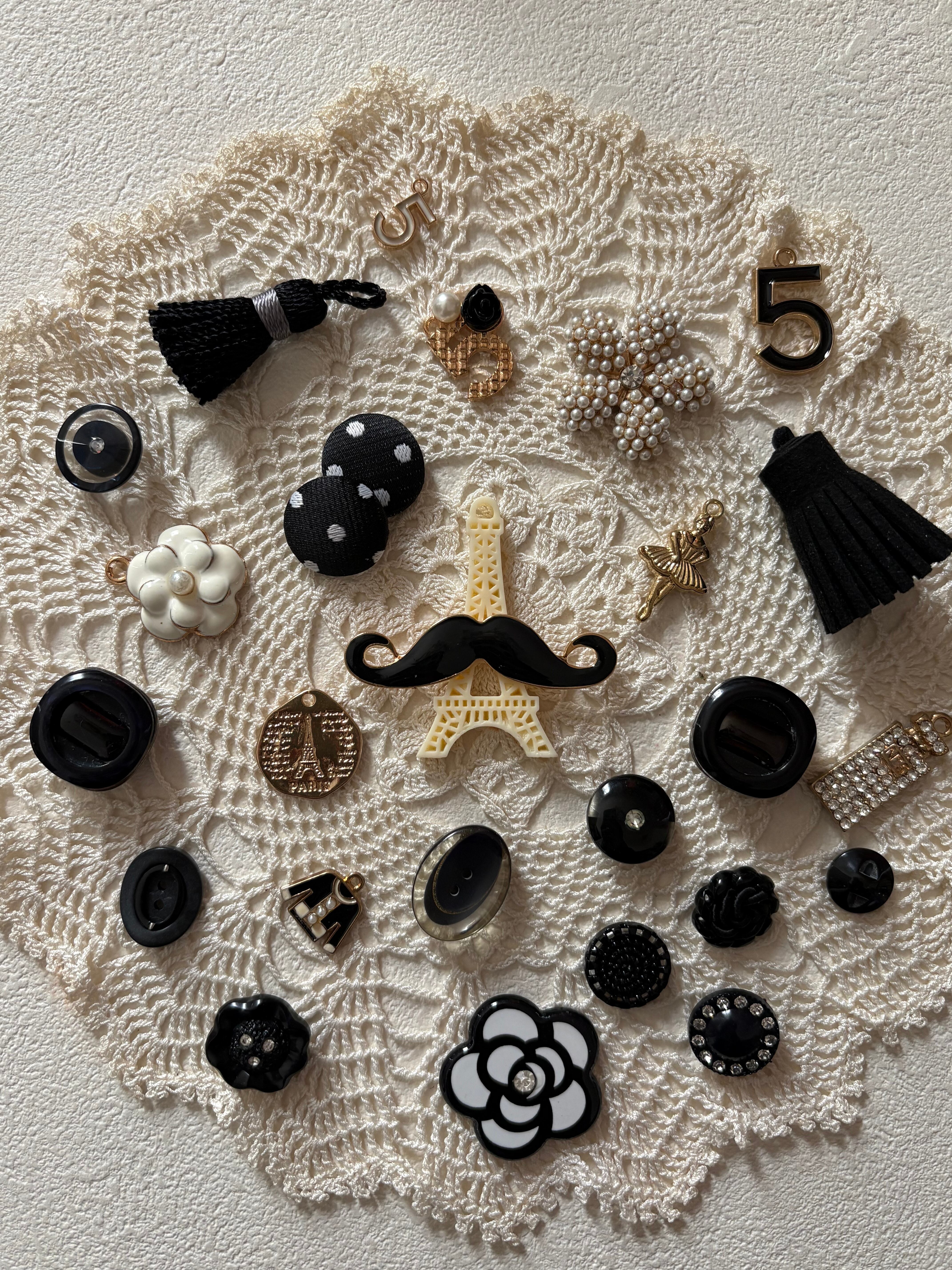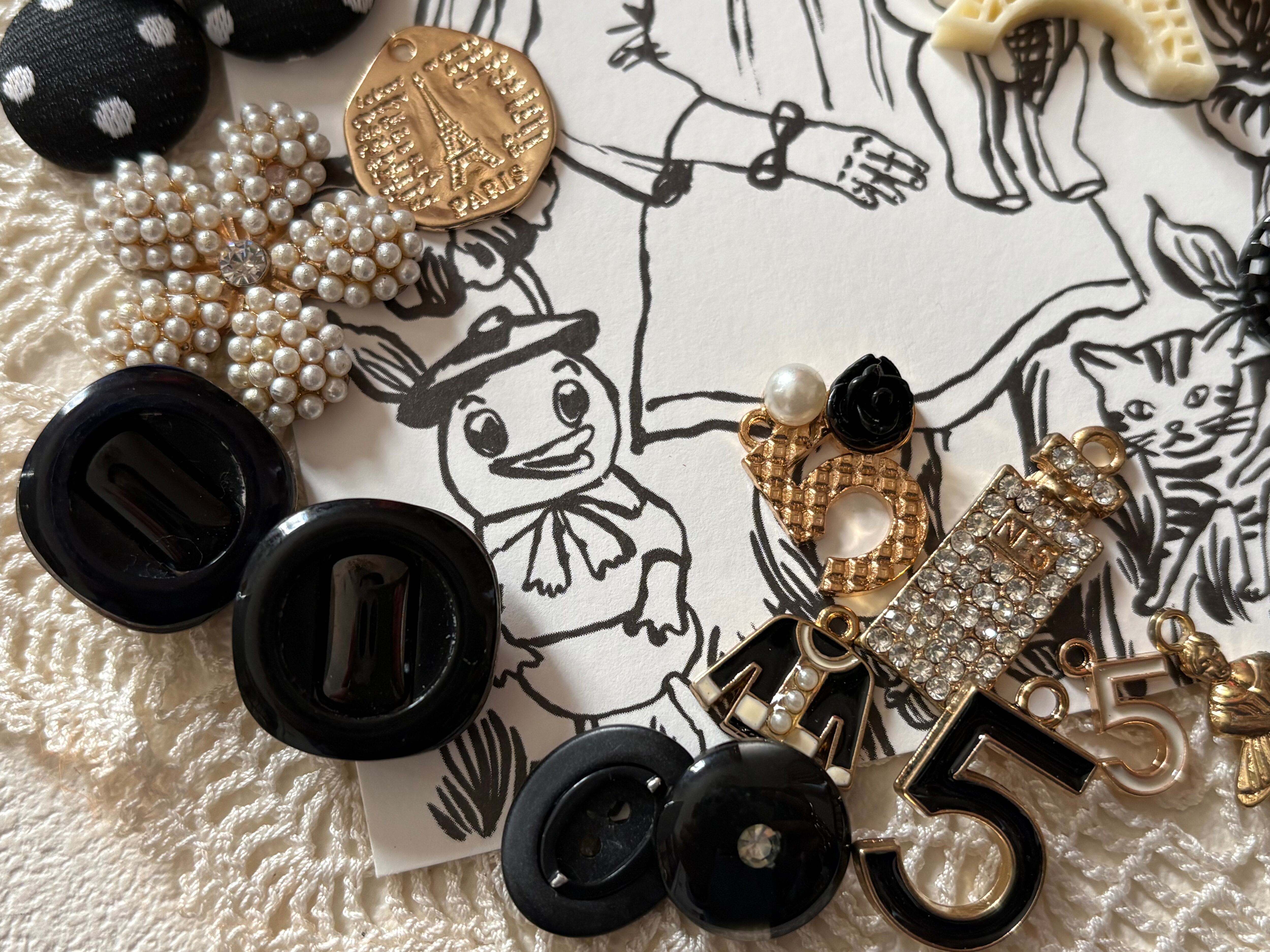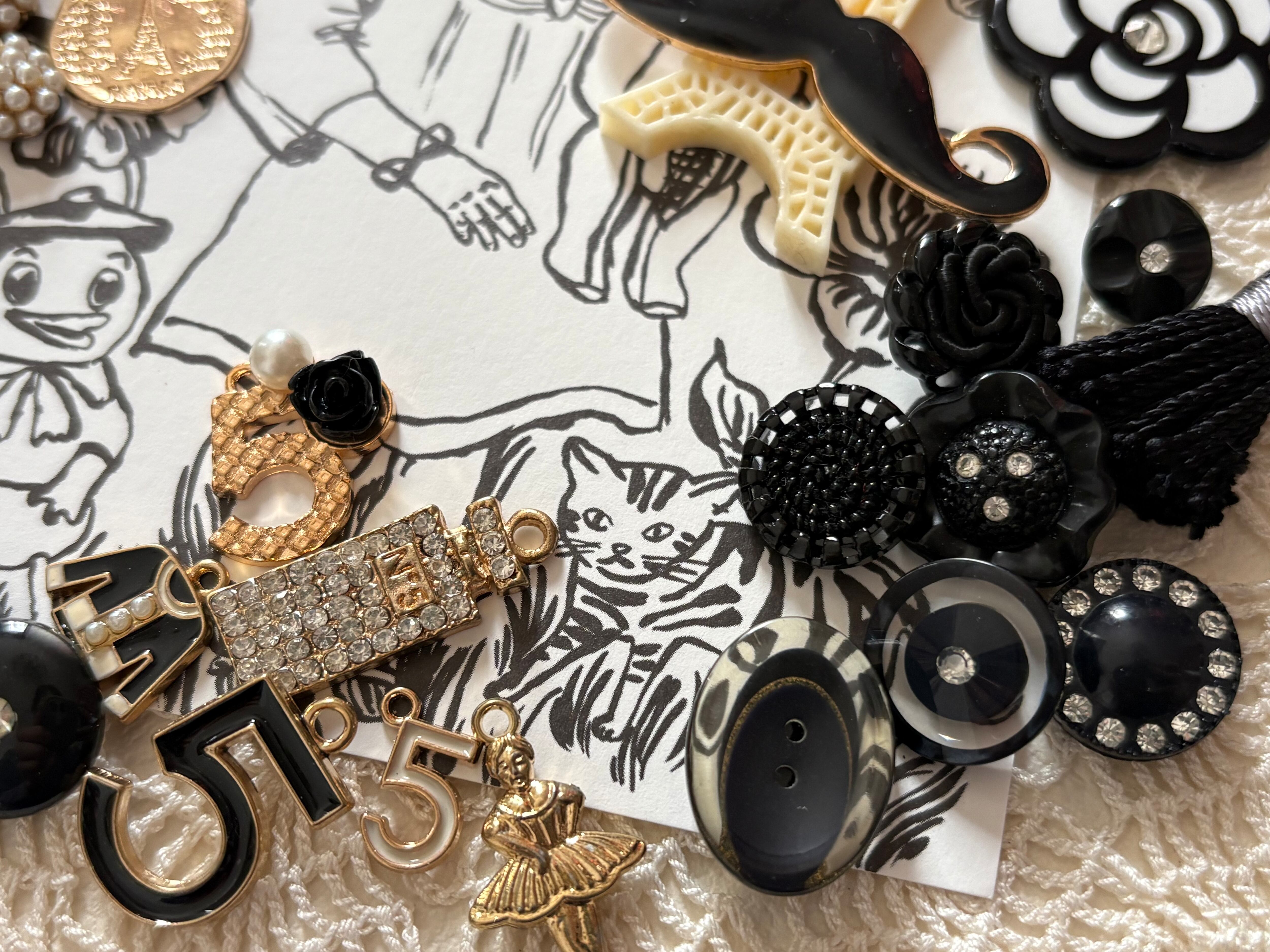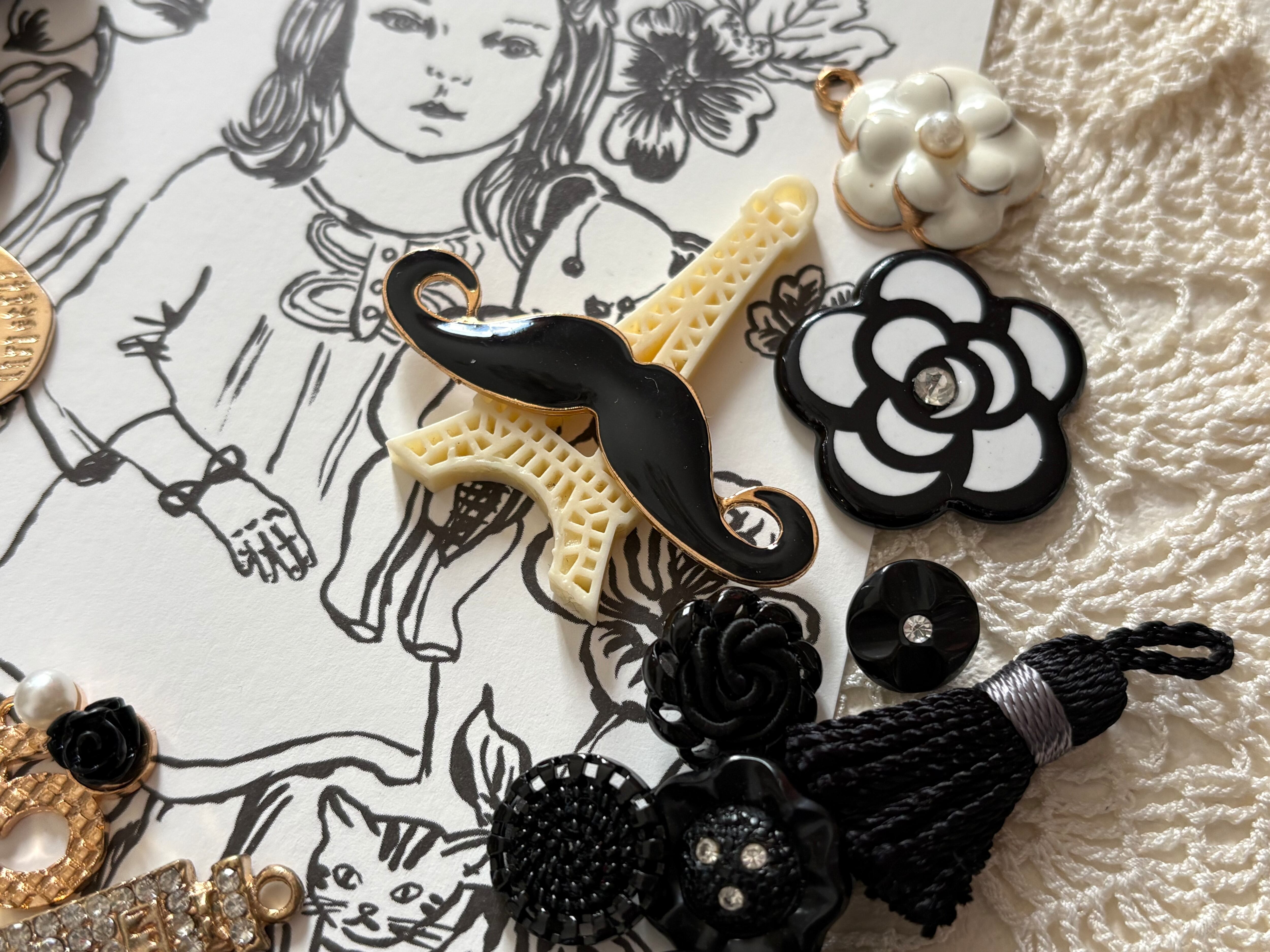2026Happy Bag ② レトロボタン タッセル 輸入デザインパーツ ナタリーレテ ポストカード モノトーン エッフェル塔