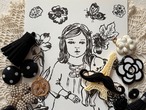 画像にございますレトロボタン、ヴィンテージとボタン、輸入デザインパーツ、輸入デザインボタン、ナタリーレテのポストカードのセットになります。