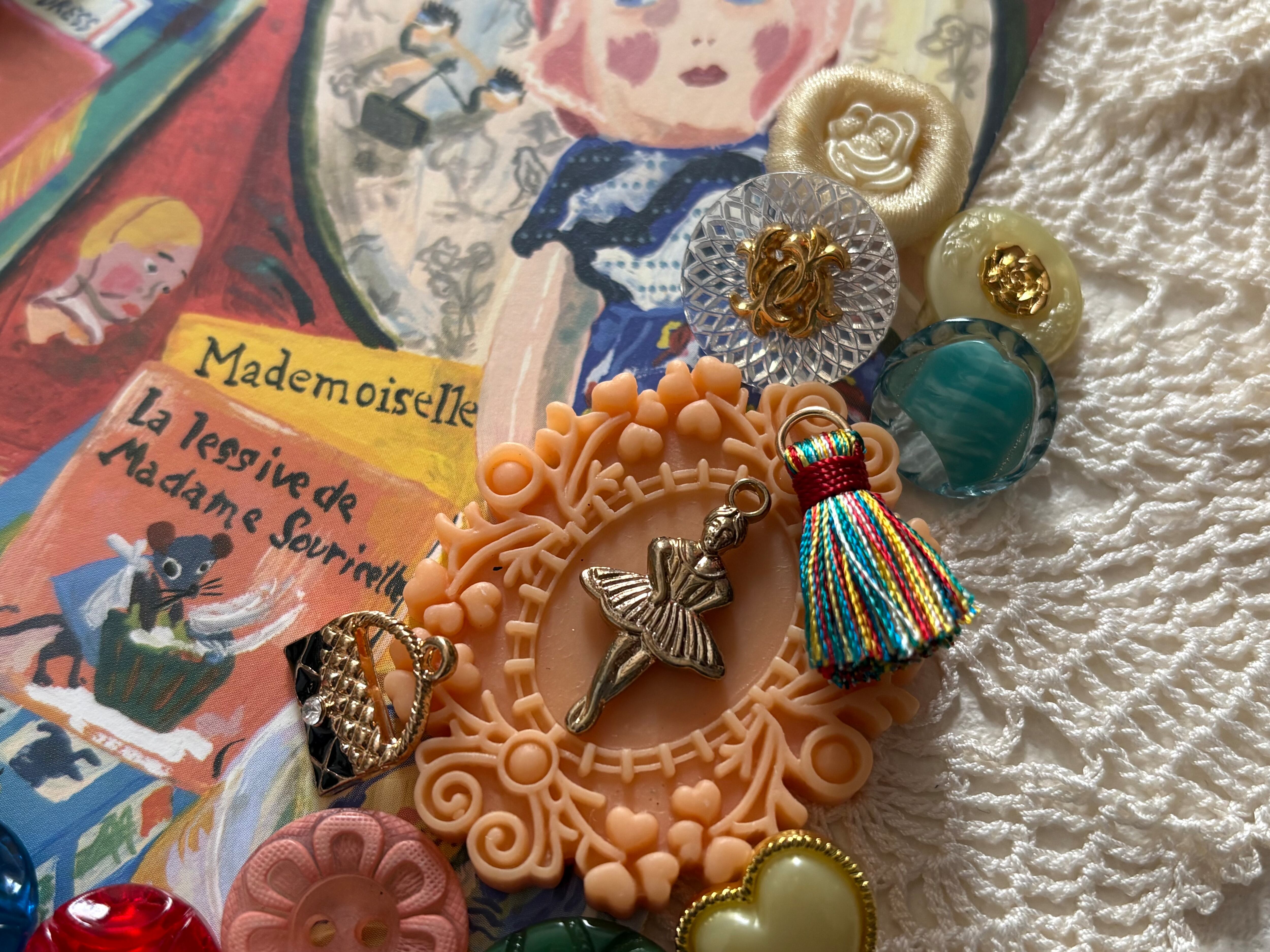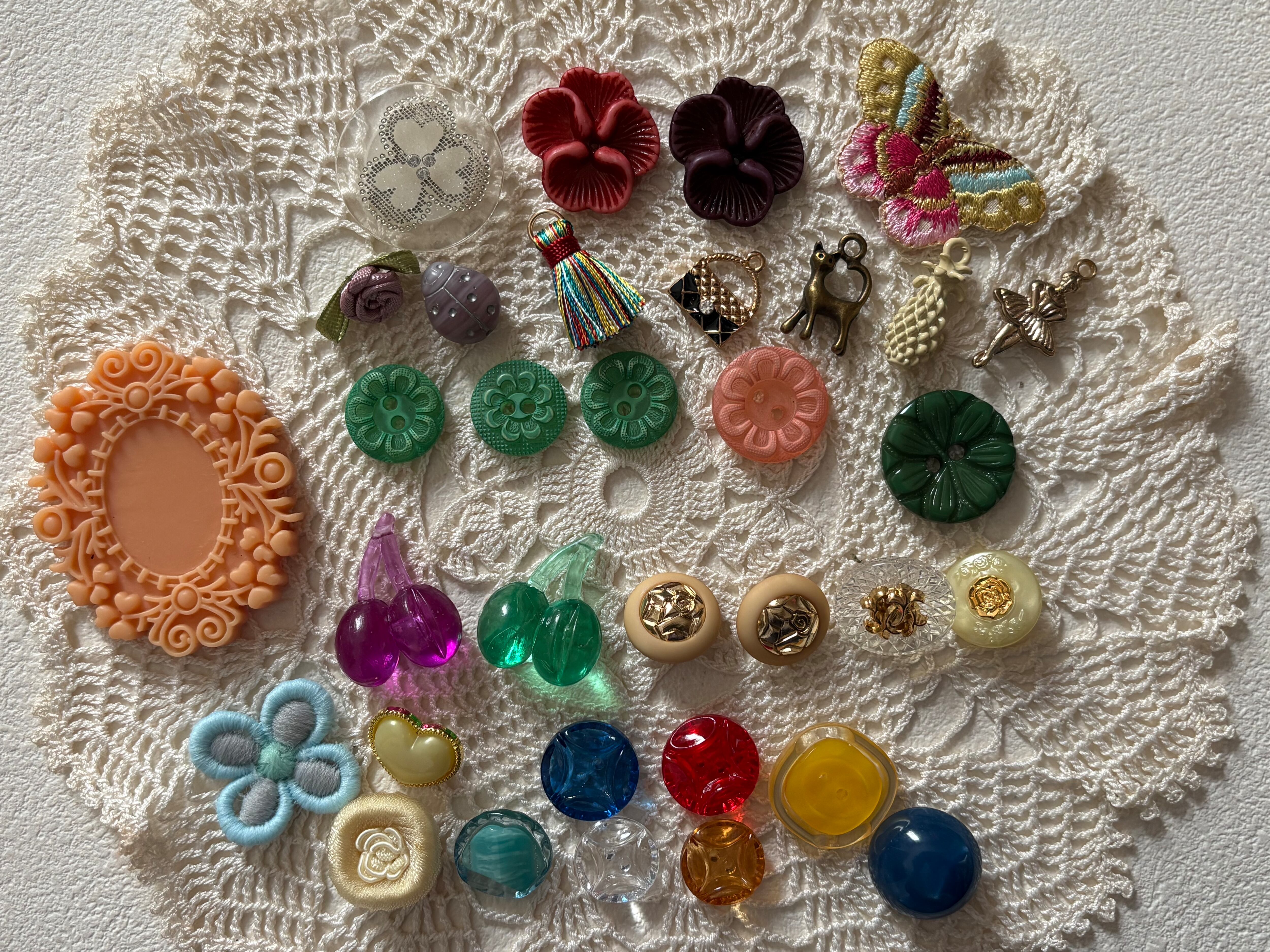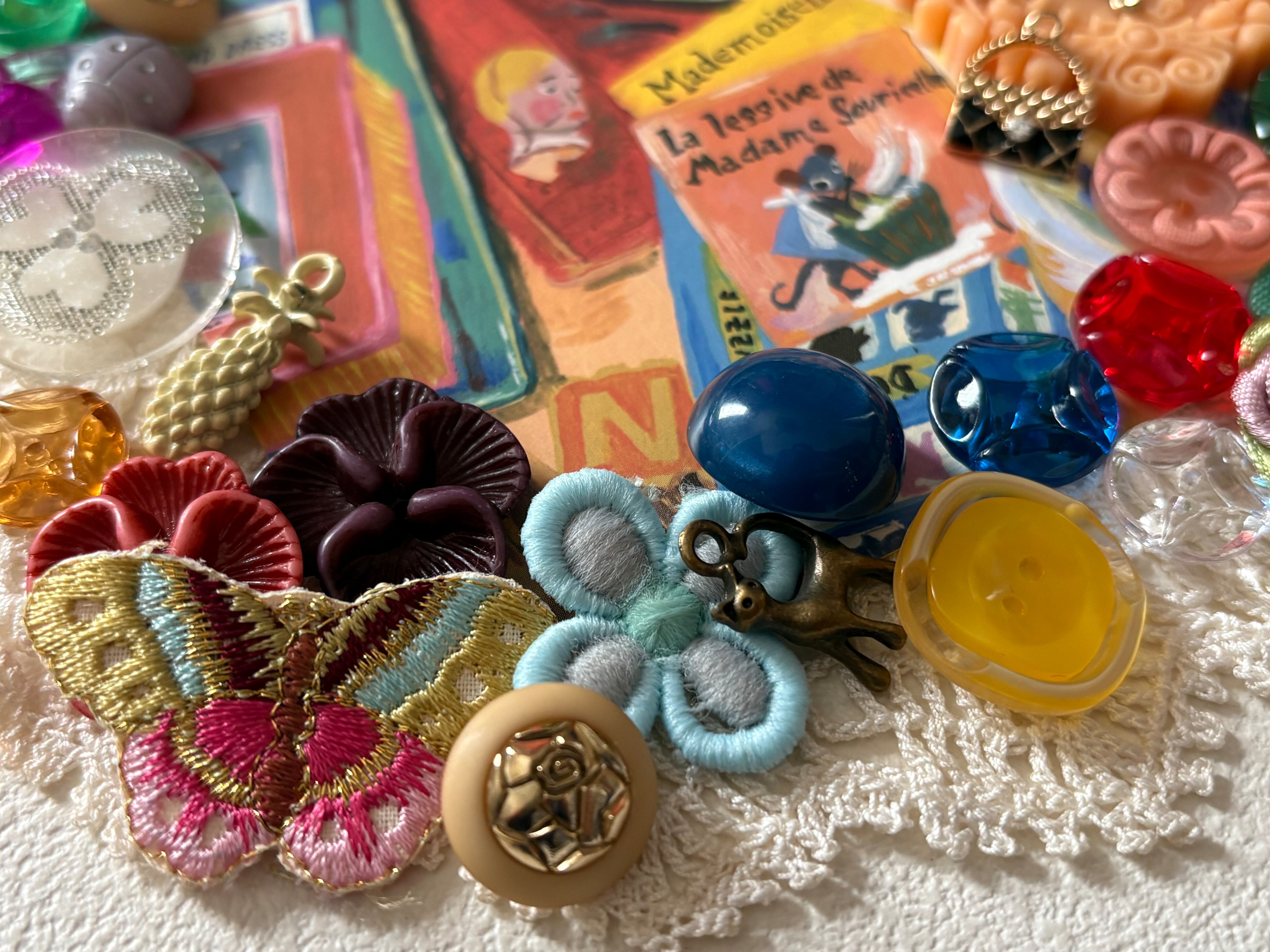 2026Happy Bag ③ ヴィンテージパーツ レトロボタン ガラスビーズ 輸入デザインボタン 輸入デザインパーツ ナタリーレテ ポストカード タッセル