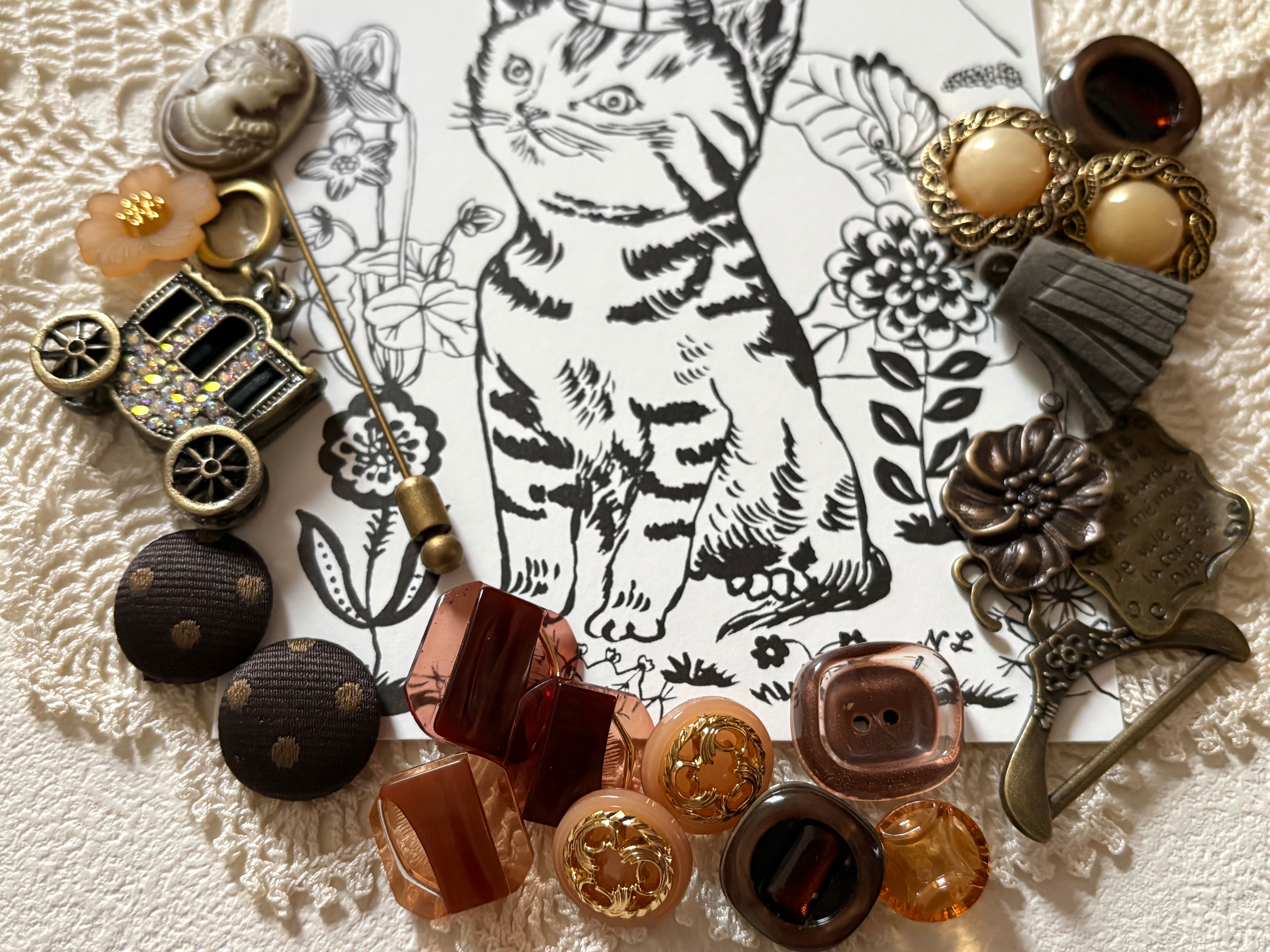 2026Happy Bag ⑦ レトロボタン 染めボタン 輸入デザインパーツ タッセル カメオ ナタリーレテ ポストカード