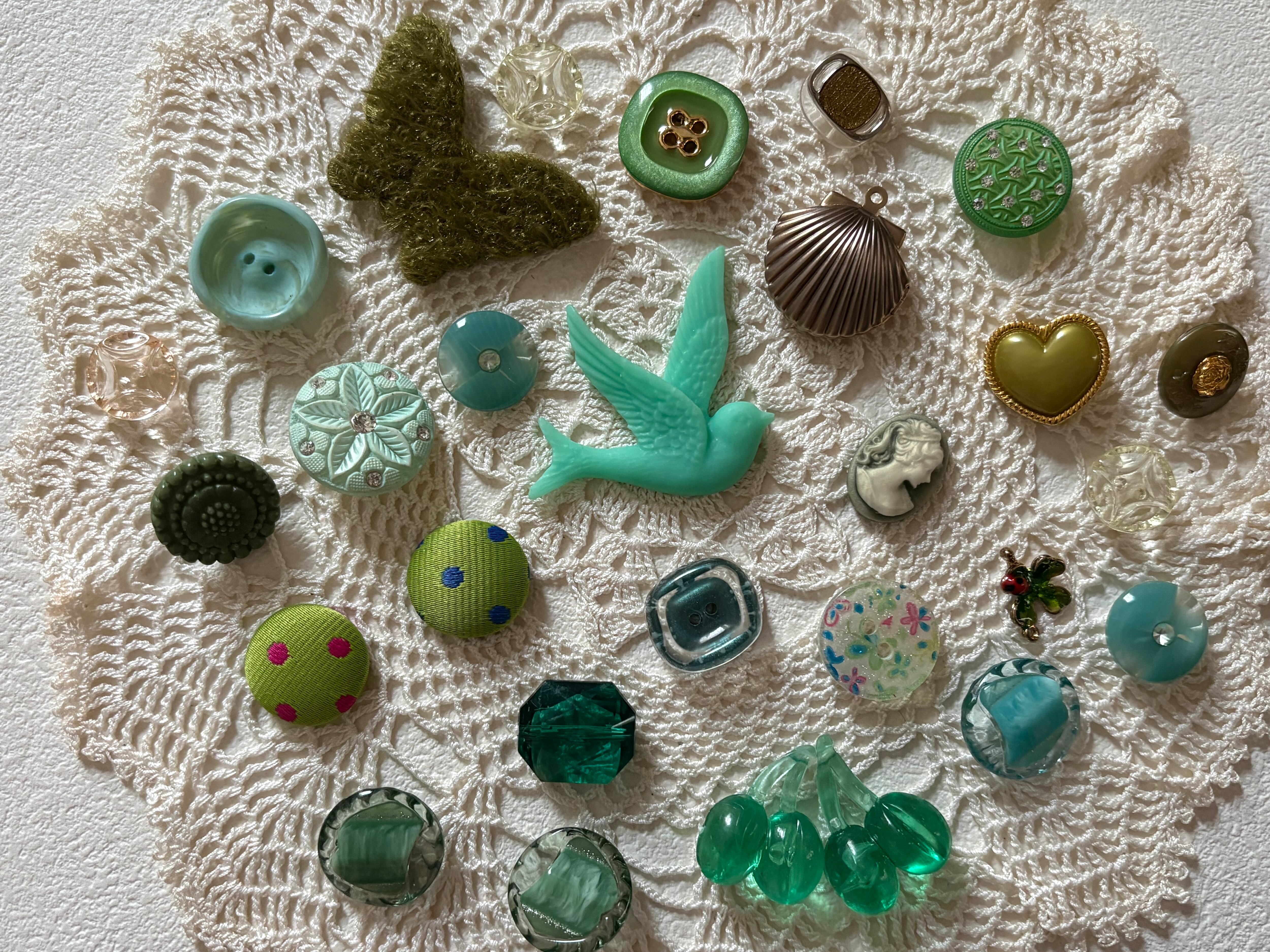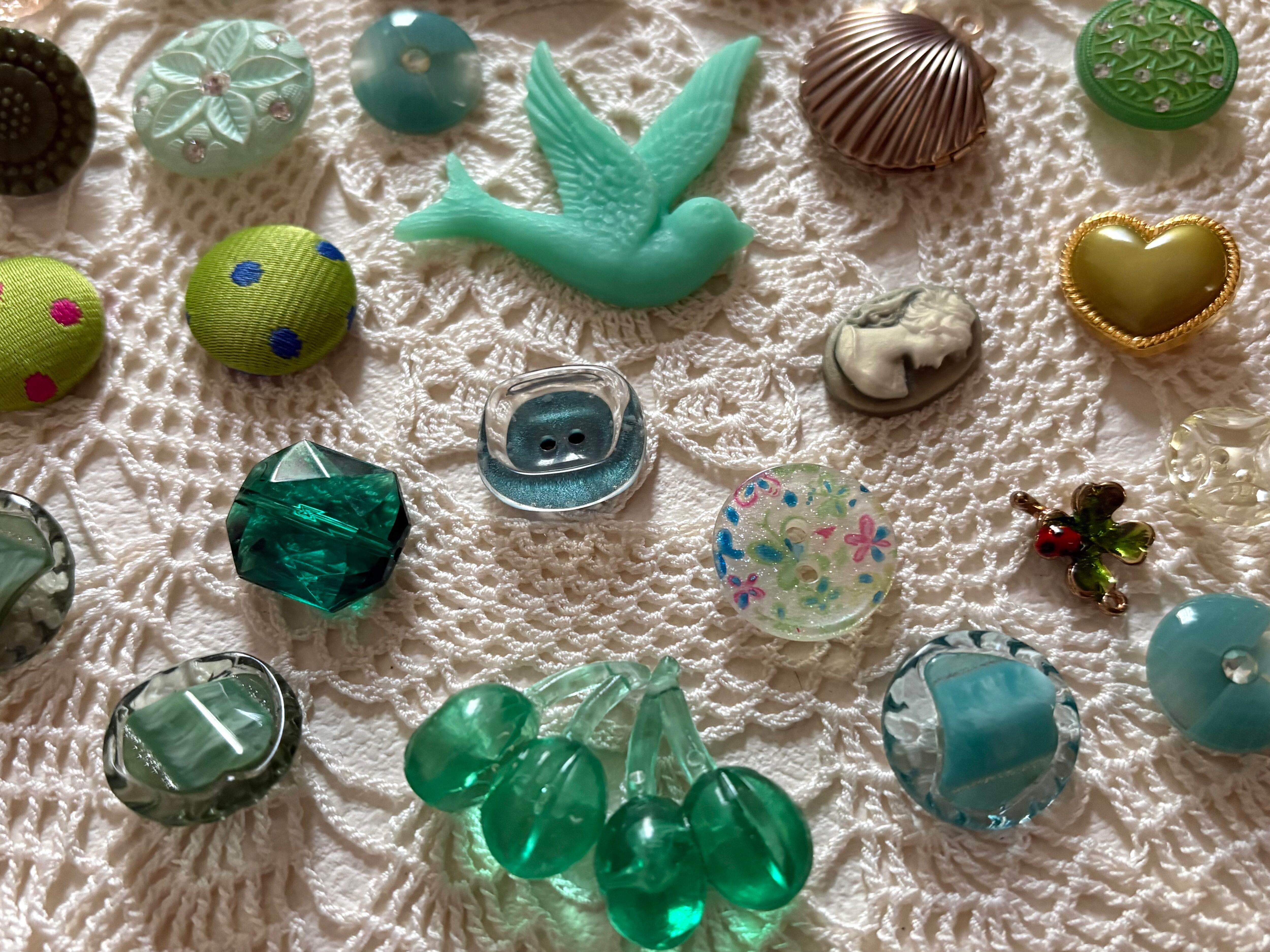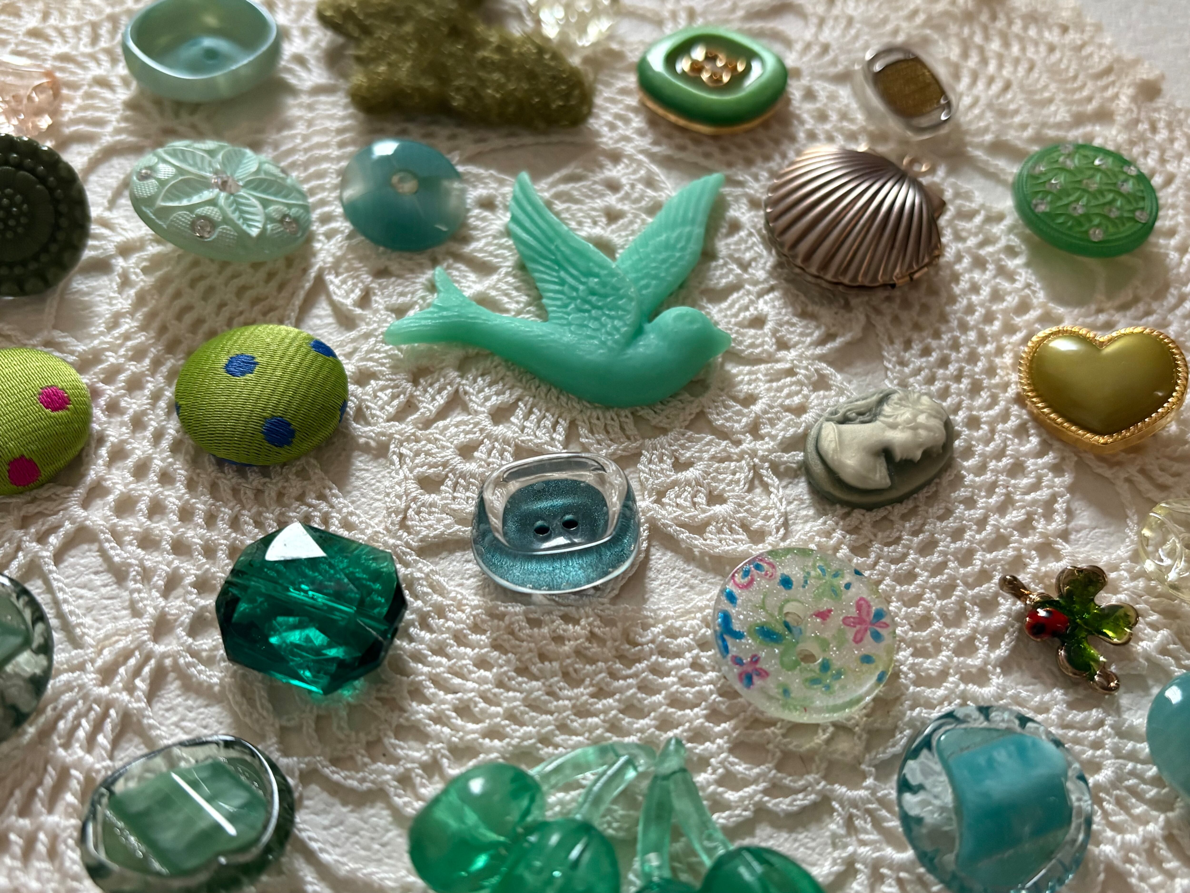 画像にございますレトロボタン、染めボタン、輸入デザインパーツ、輸入デザインボタン、カメオ、ナタリーレテのポストカードのセットになります。