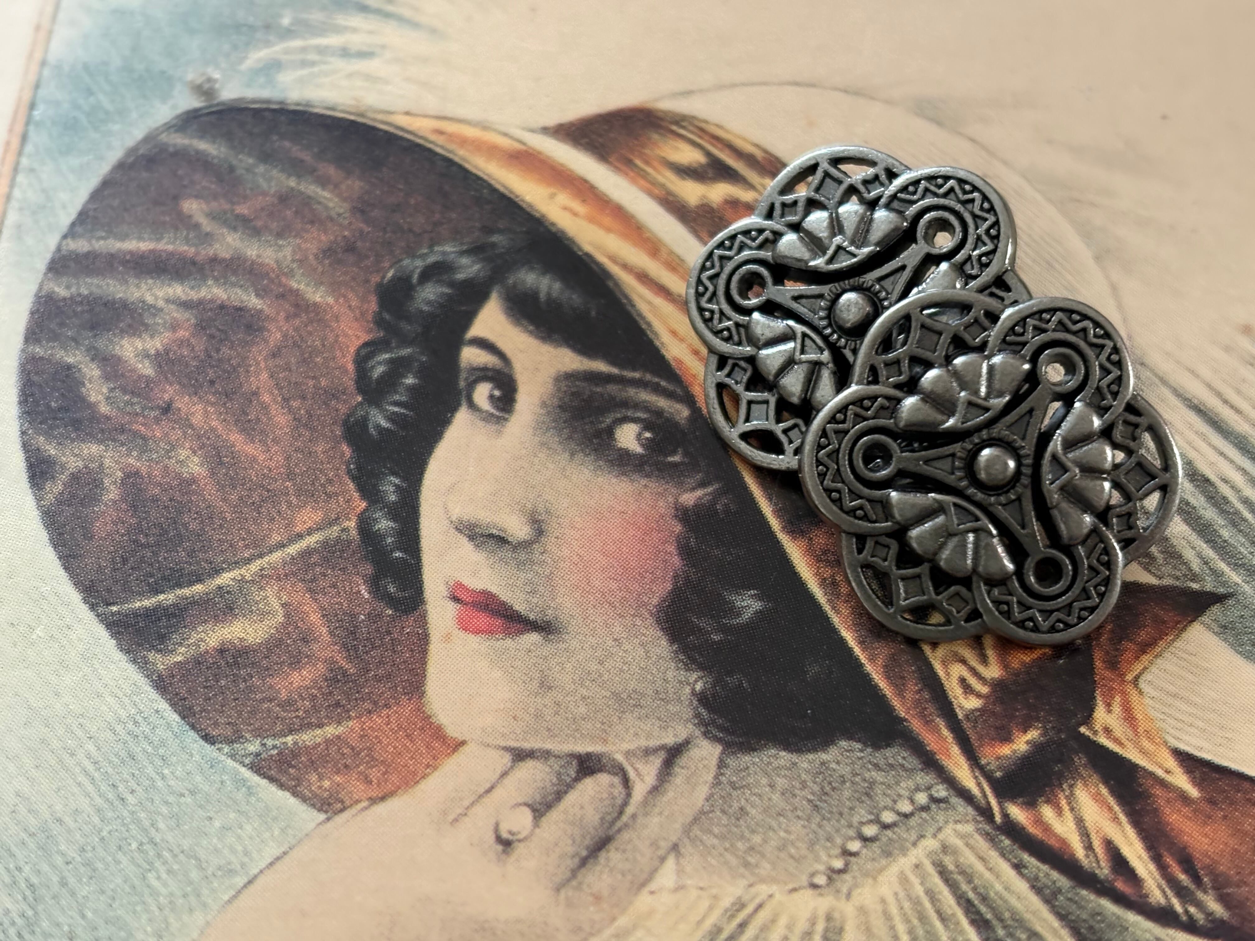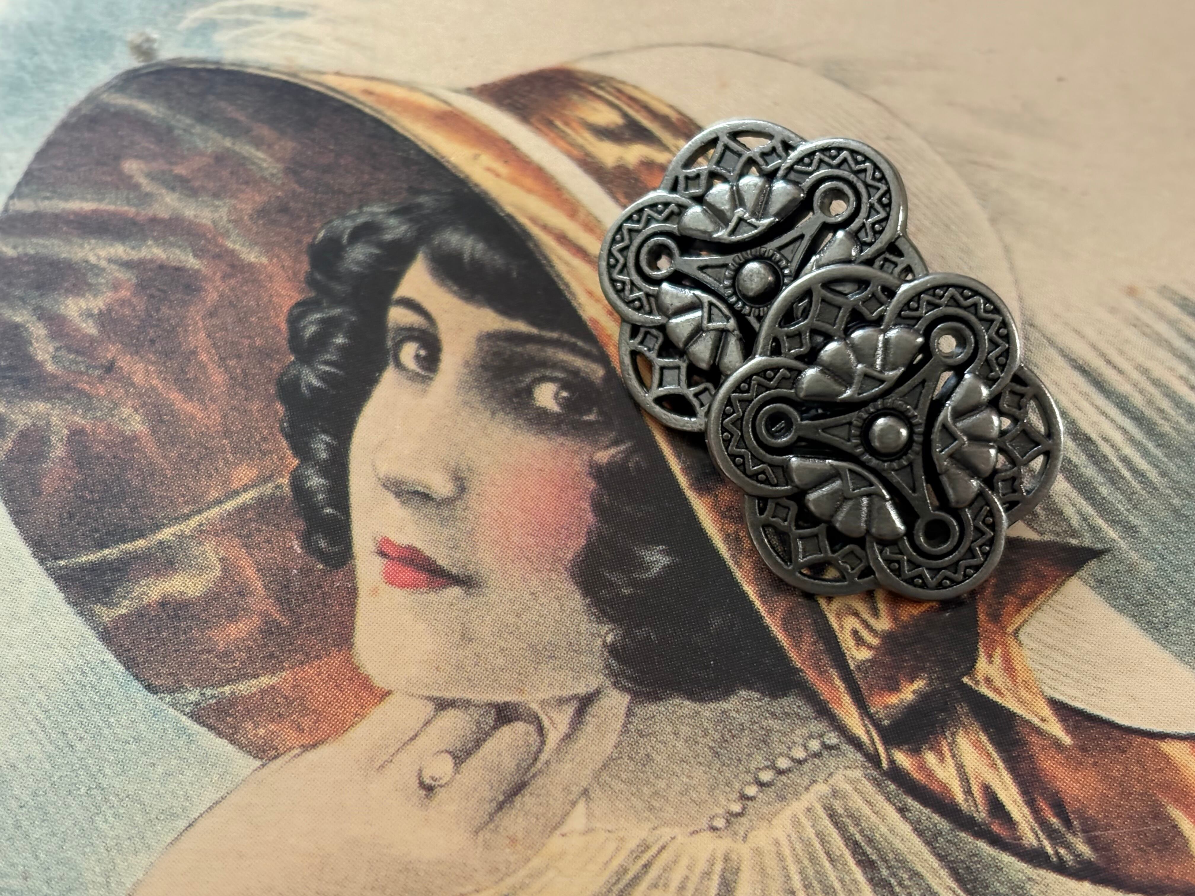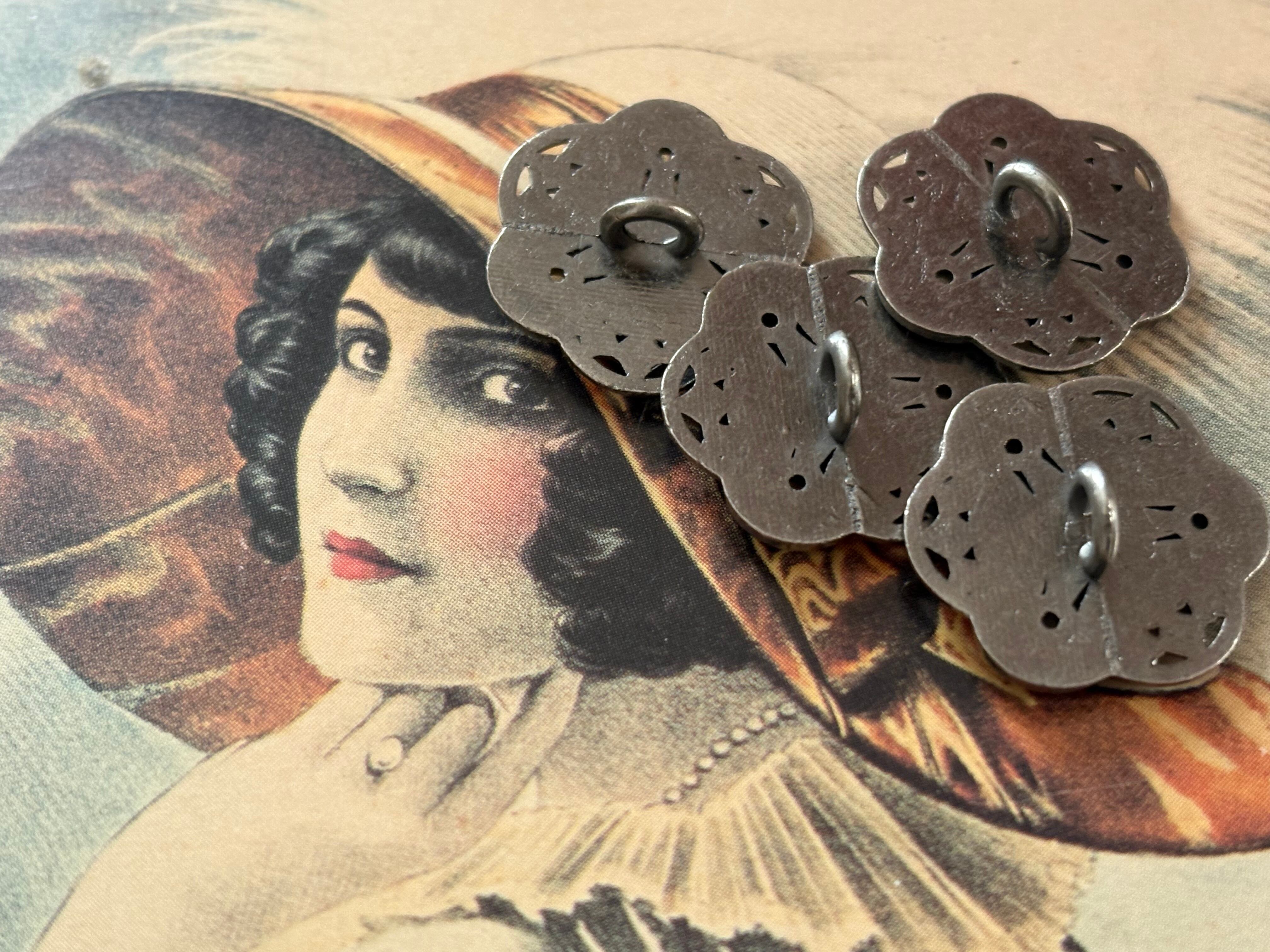 18mm 輸入デザインボタン 透かし柄 メタルボタン シルバー クラシカル アクセサリーパーツ カルトナージュ デコレーション材