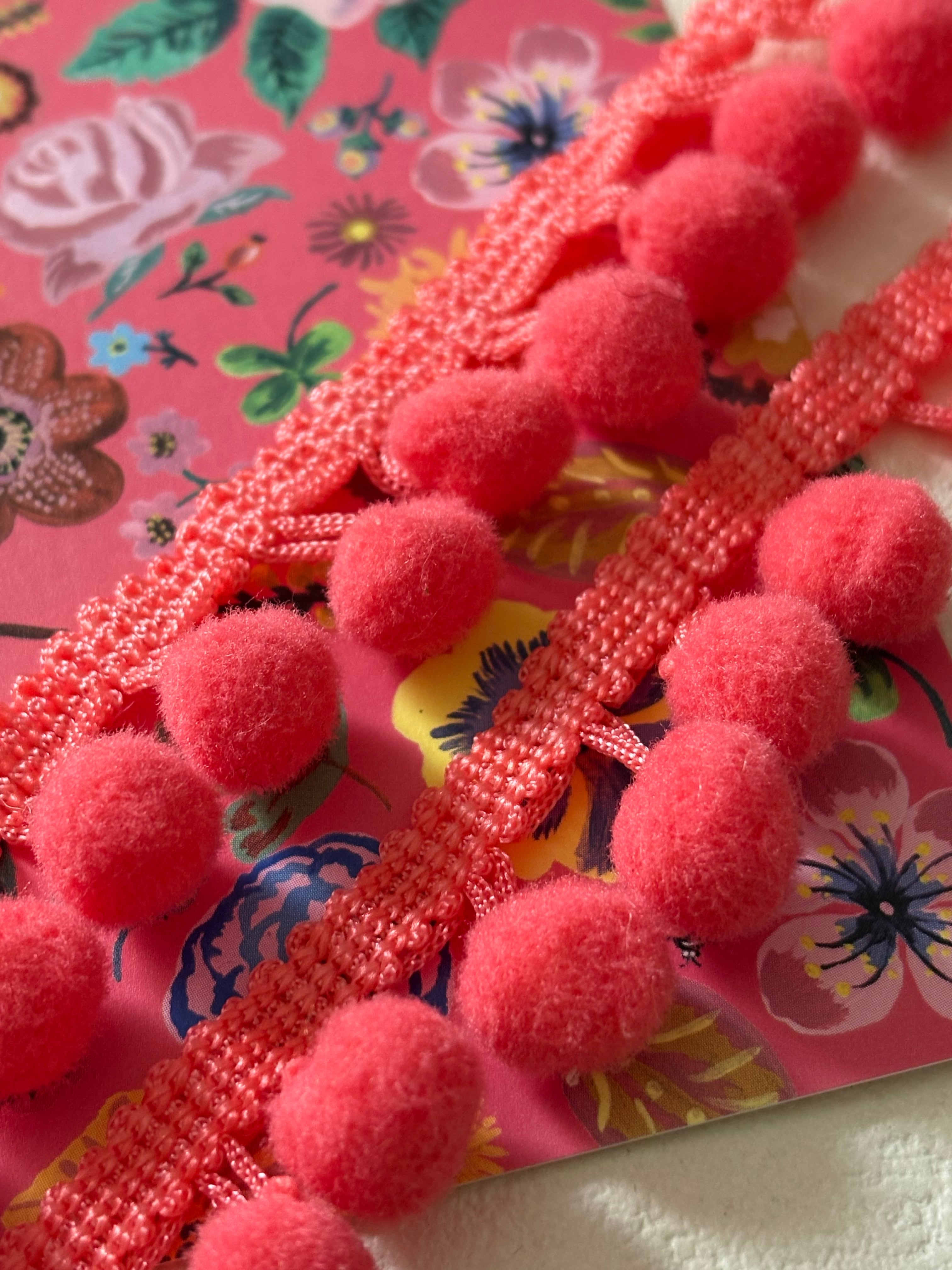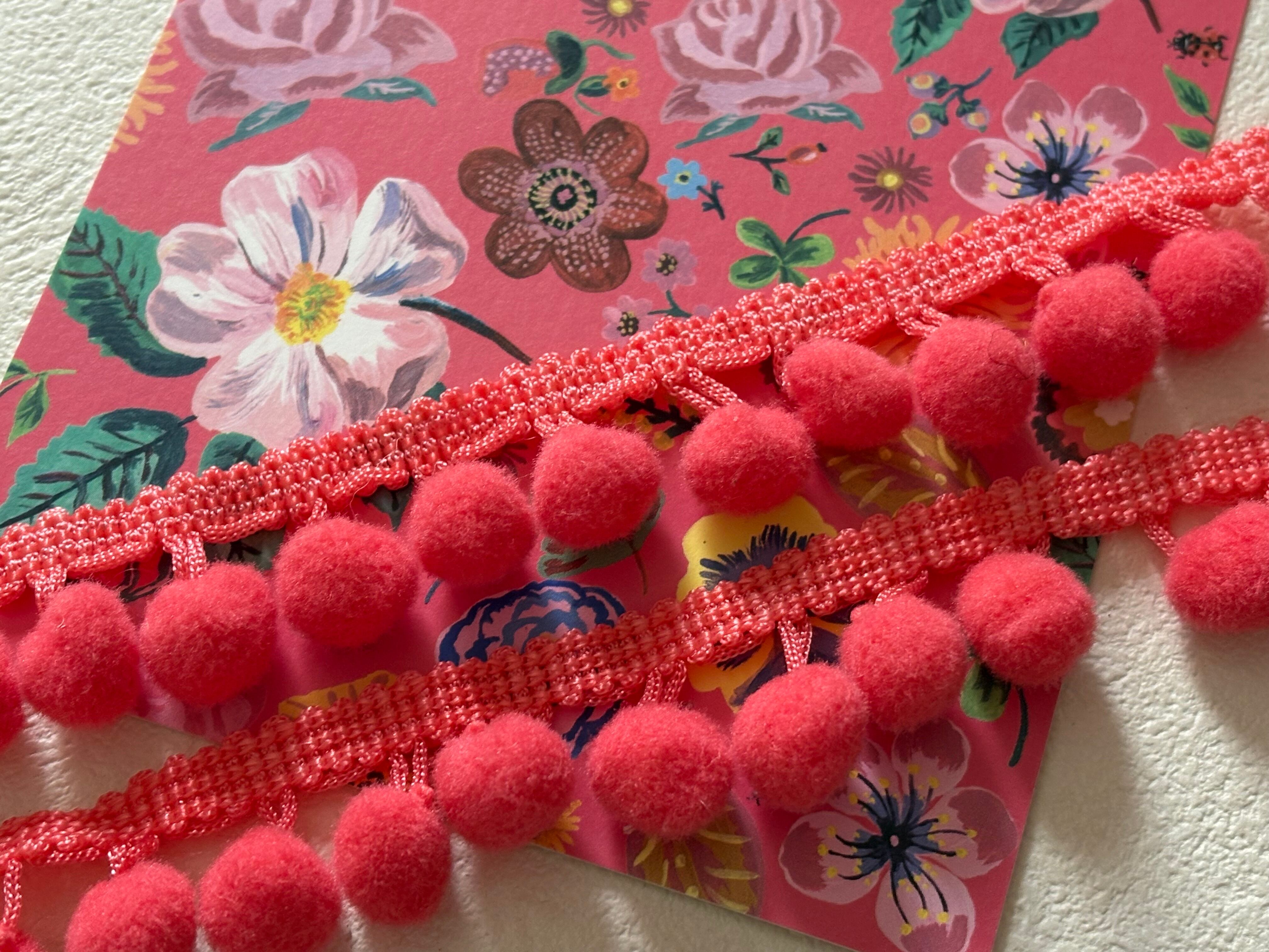 輸入デザインタッセルブレード ポンポンブレード 50cm/カット 全長 25mm ピンク系 カルトナージュ スツール デコレーション材