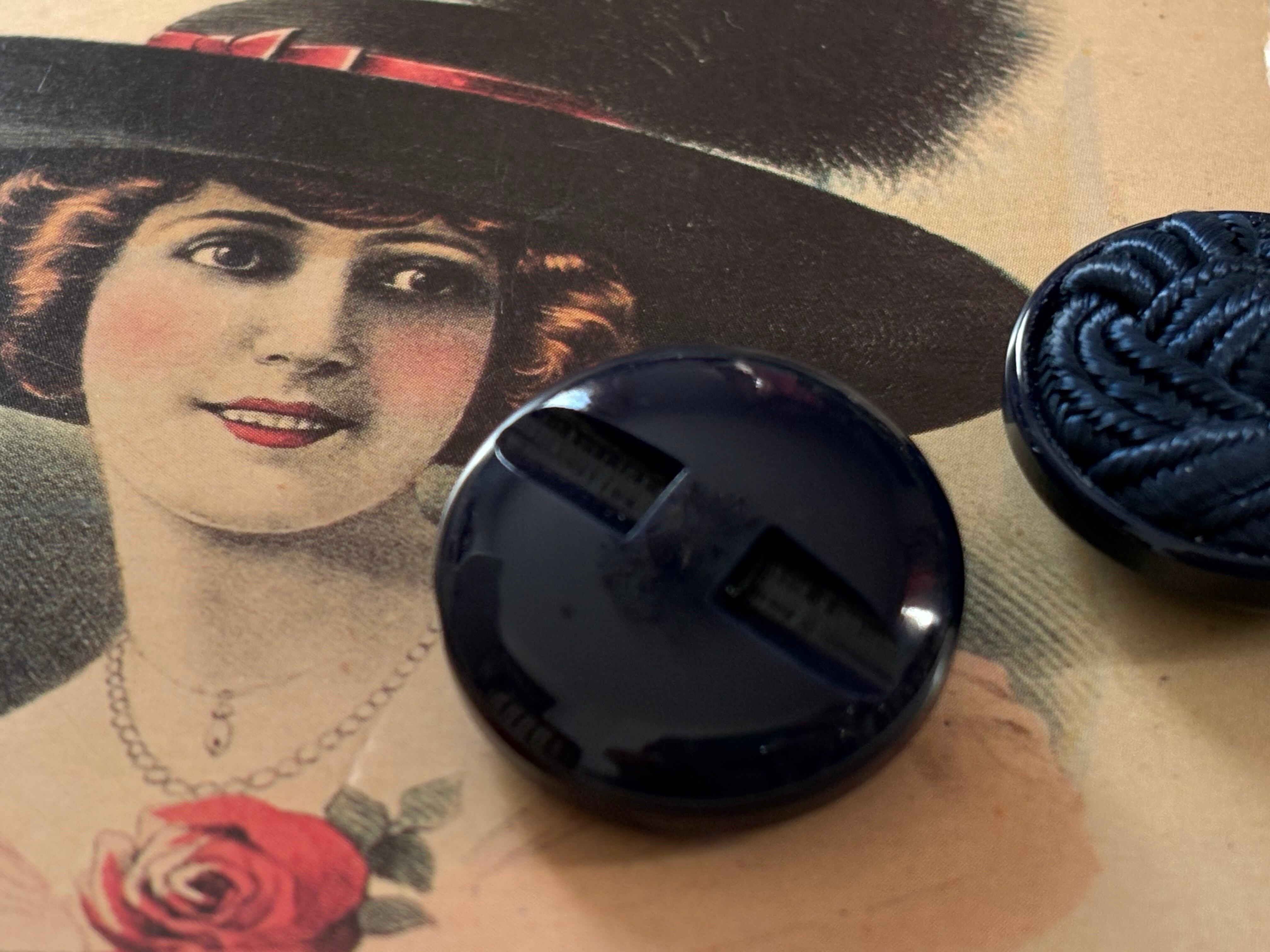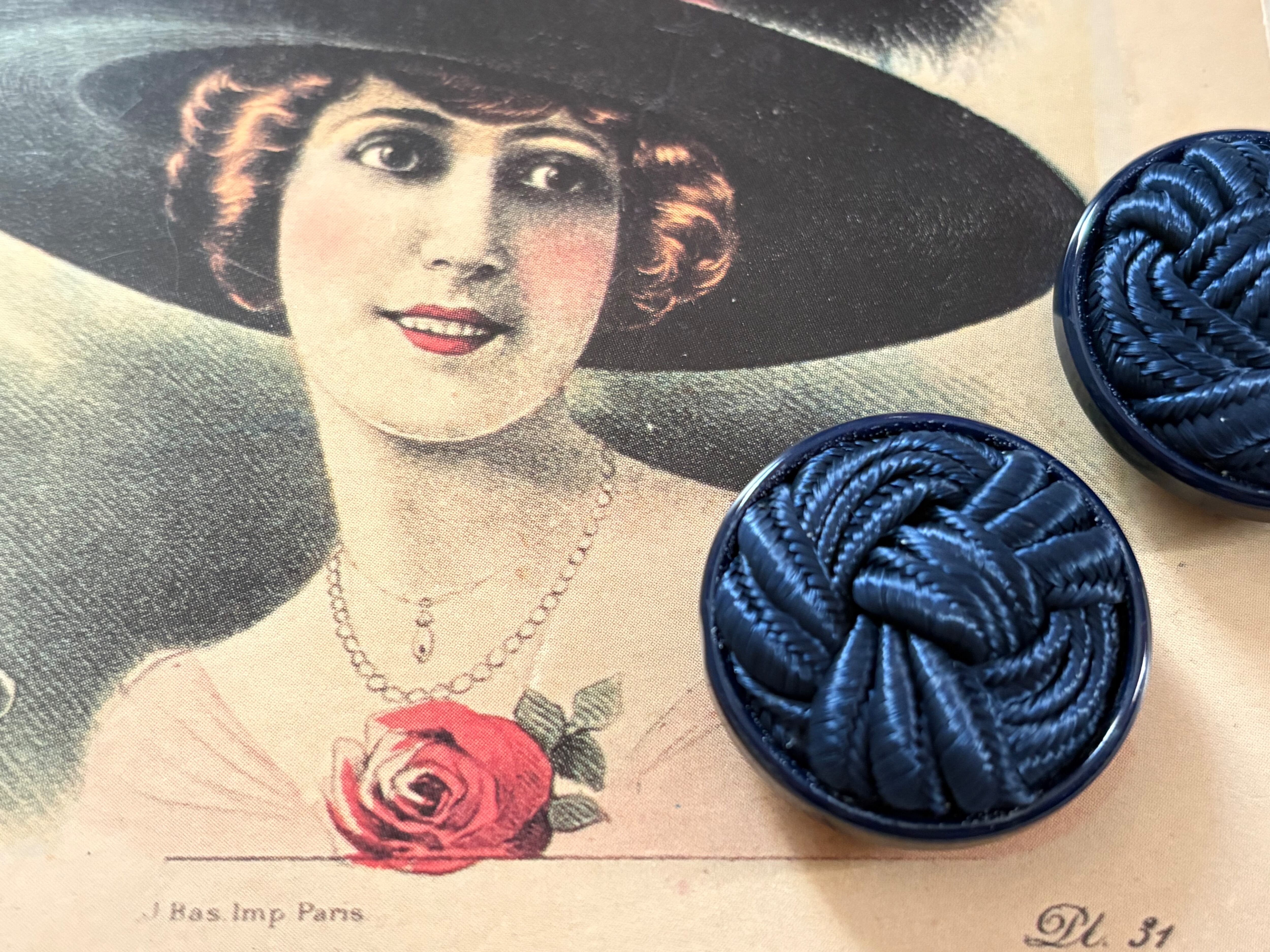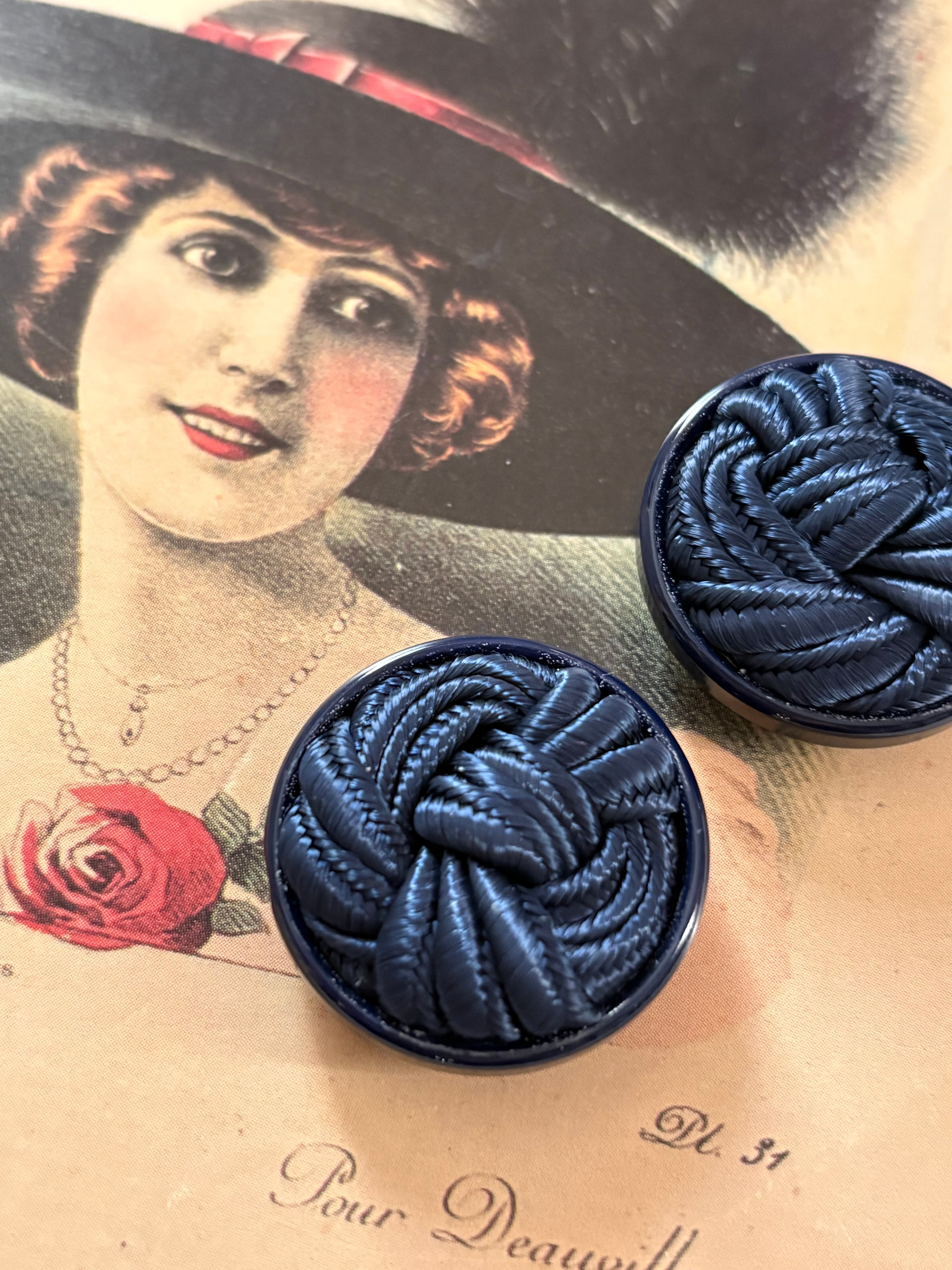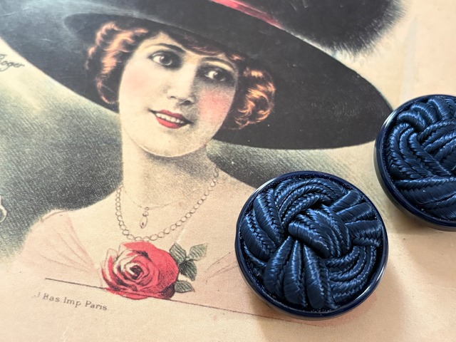 26mm Japanese ヴィンテージボタン ネイビー ドーム型 コードボタン アクセサリーパーツ デコレーション材