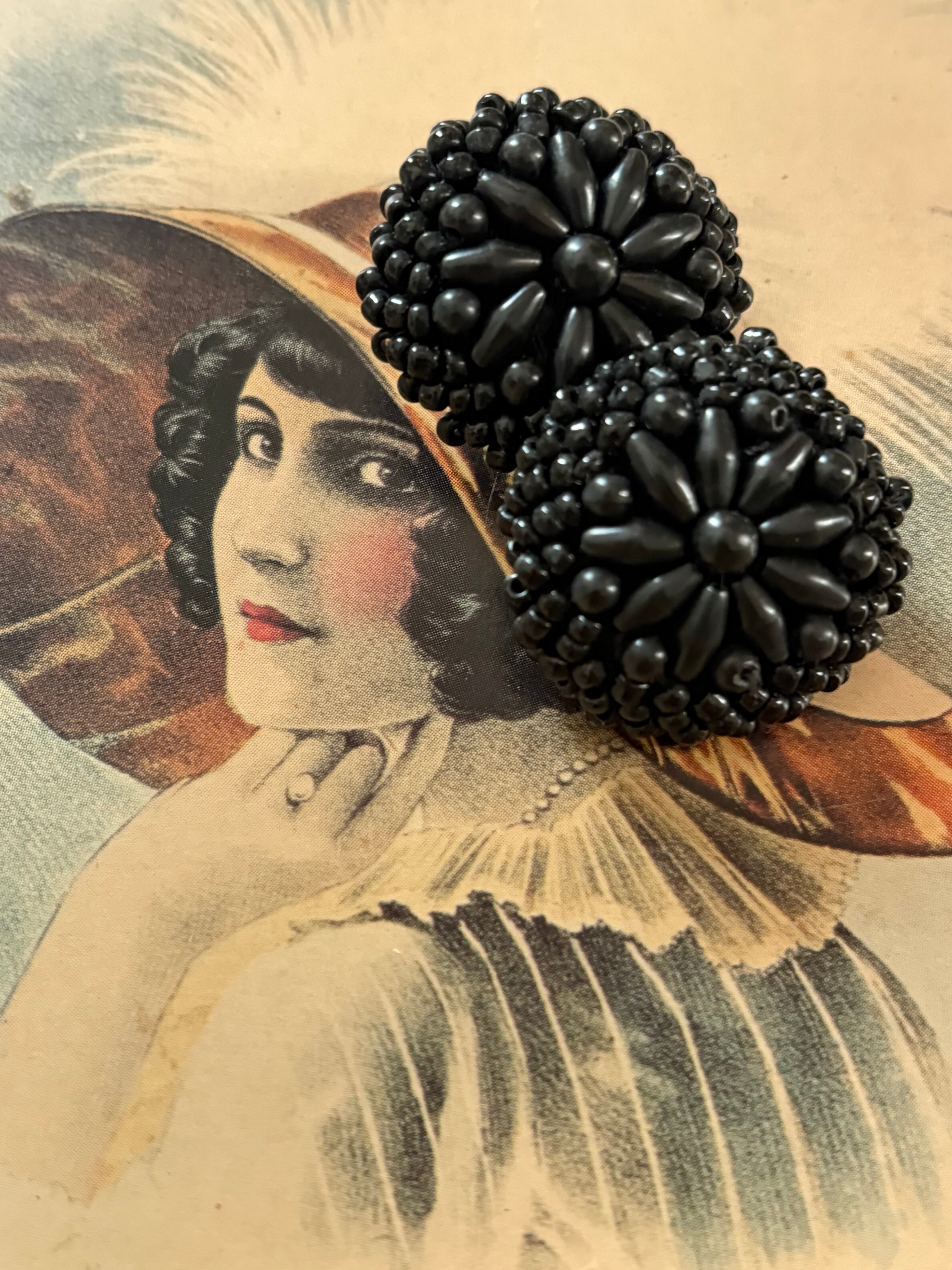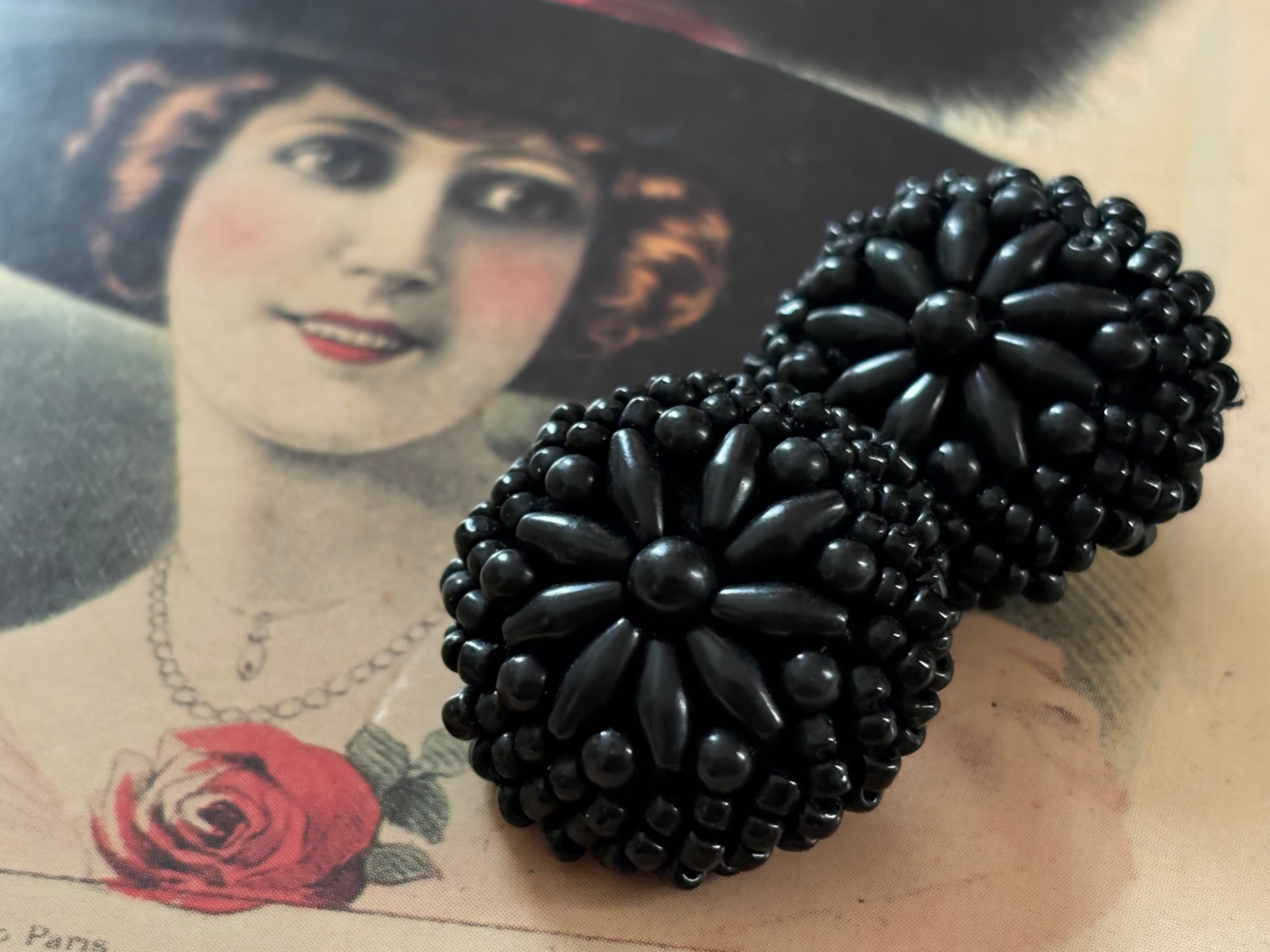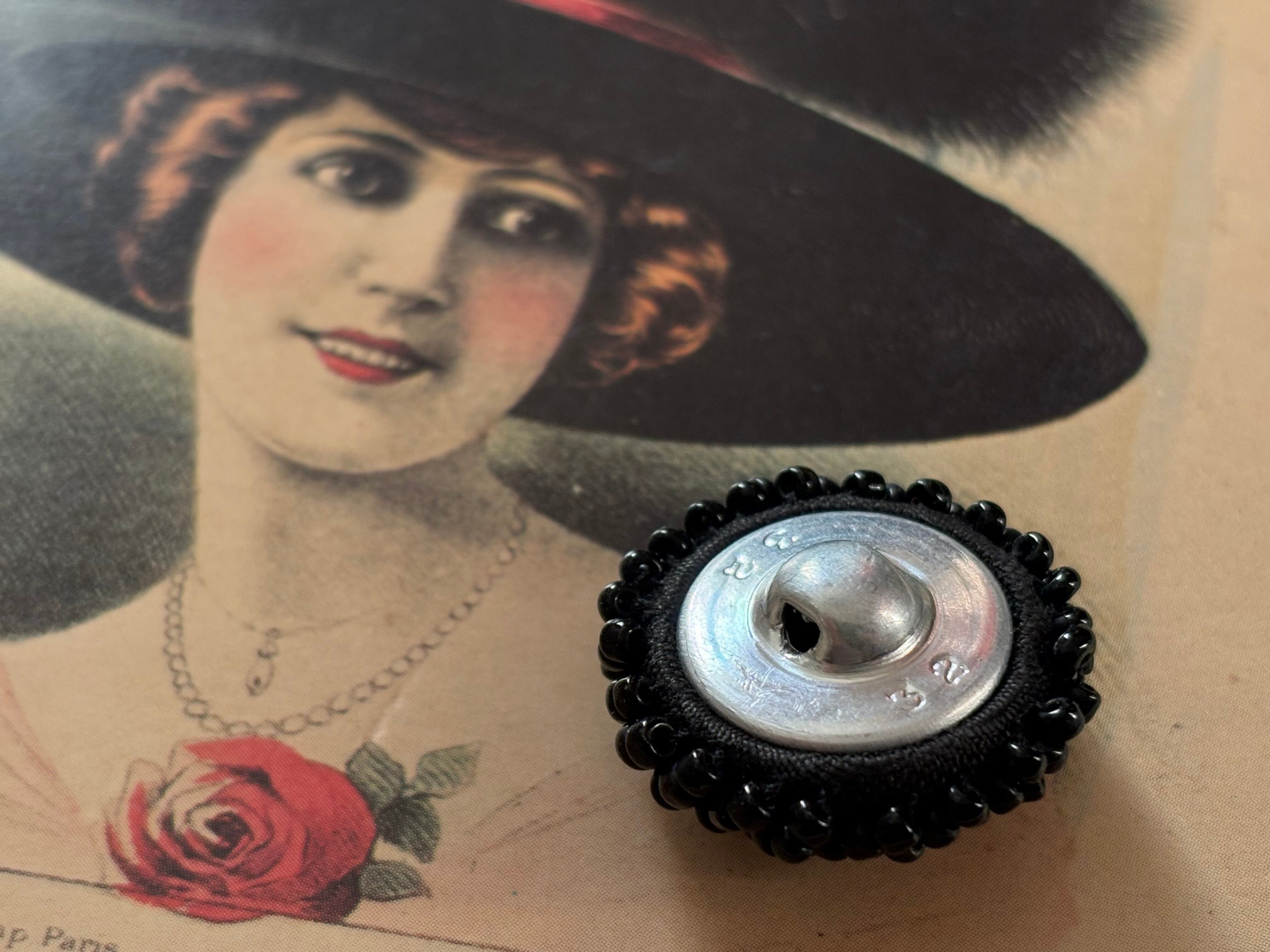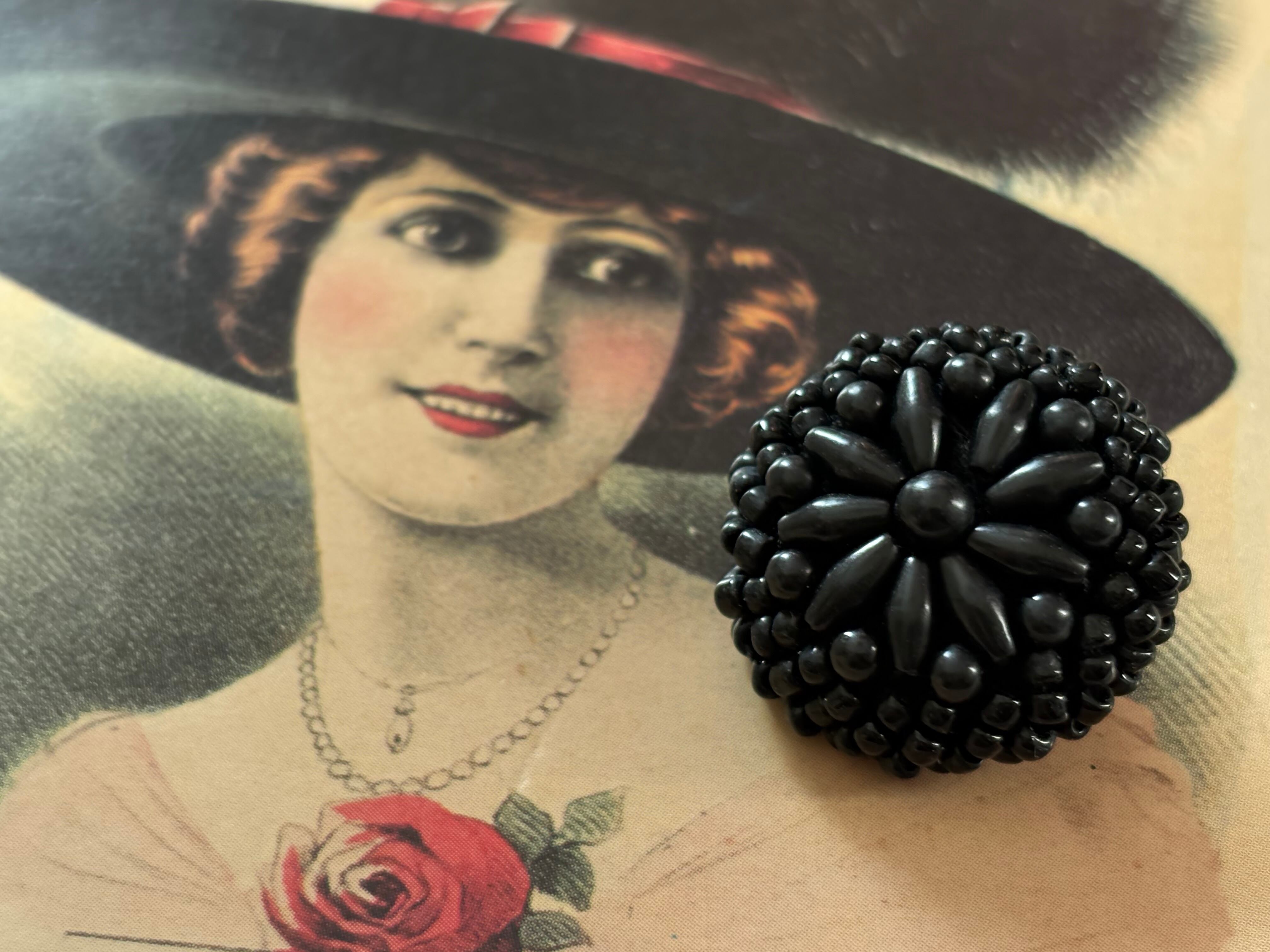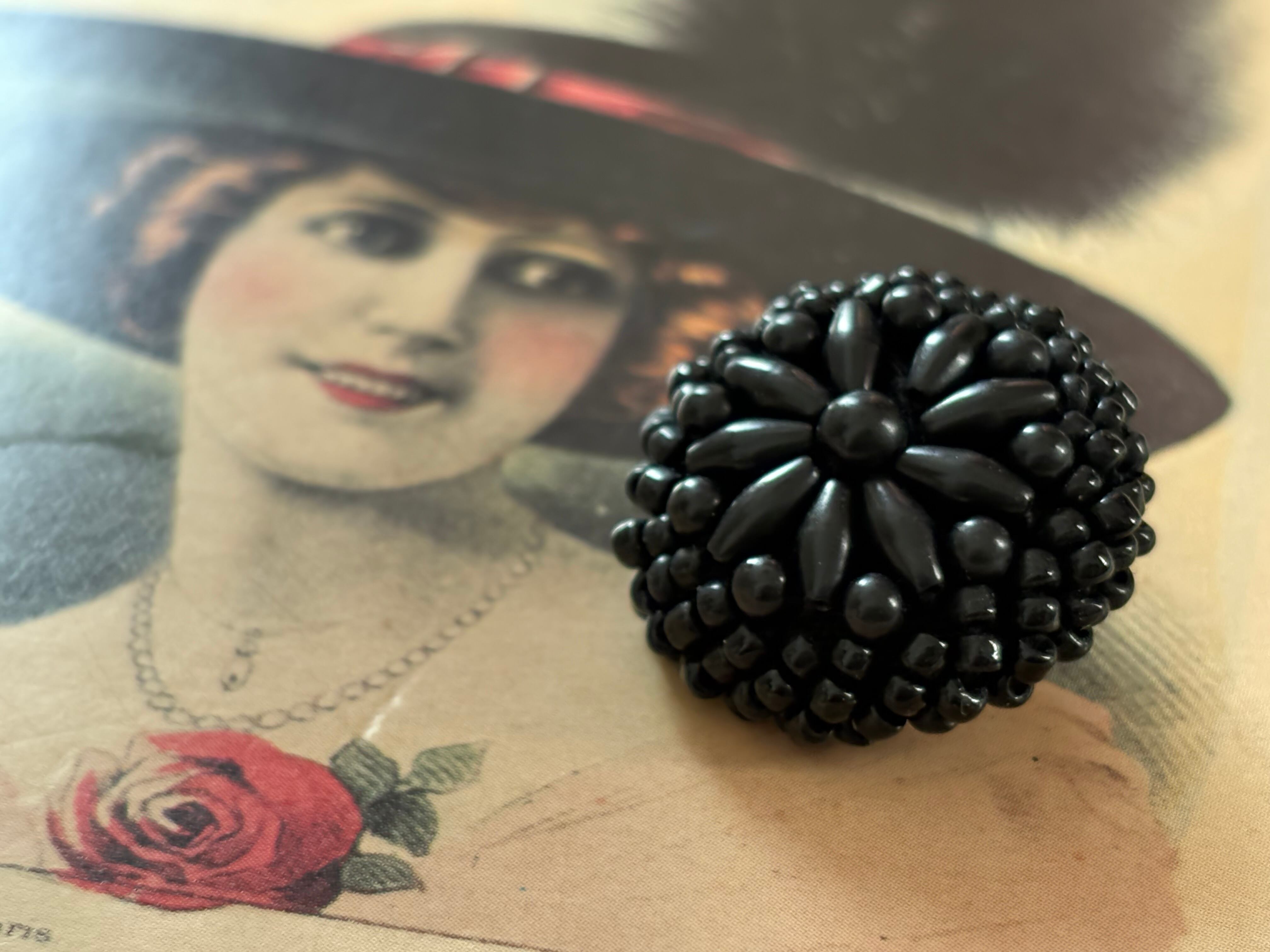 25mm Japanese ヴィンテージボタン ブラック ビーズ ドーム型 アクセサリーパーツ 装飾材 カルトナージュ