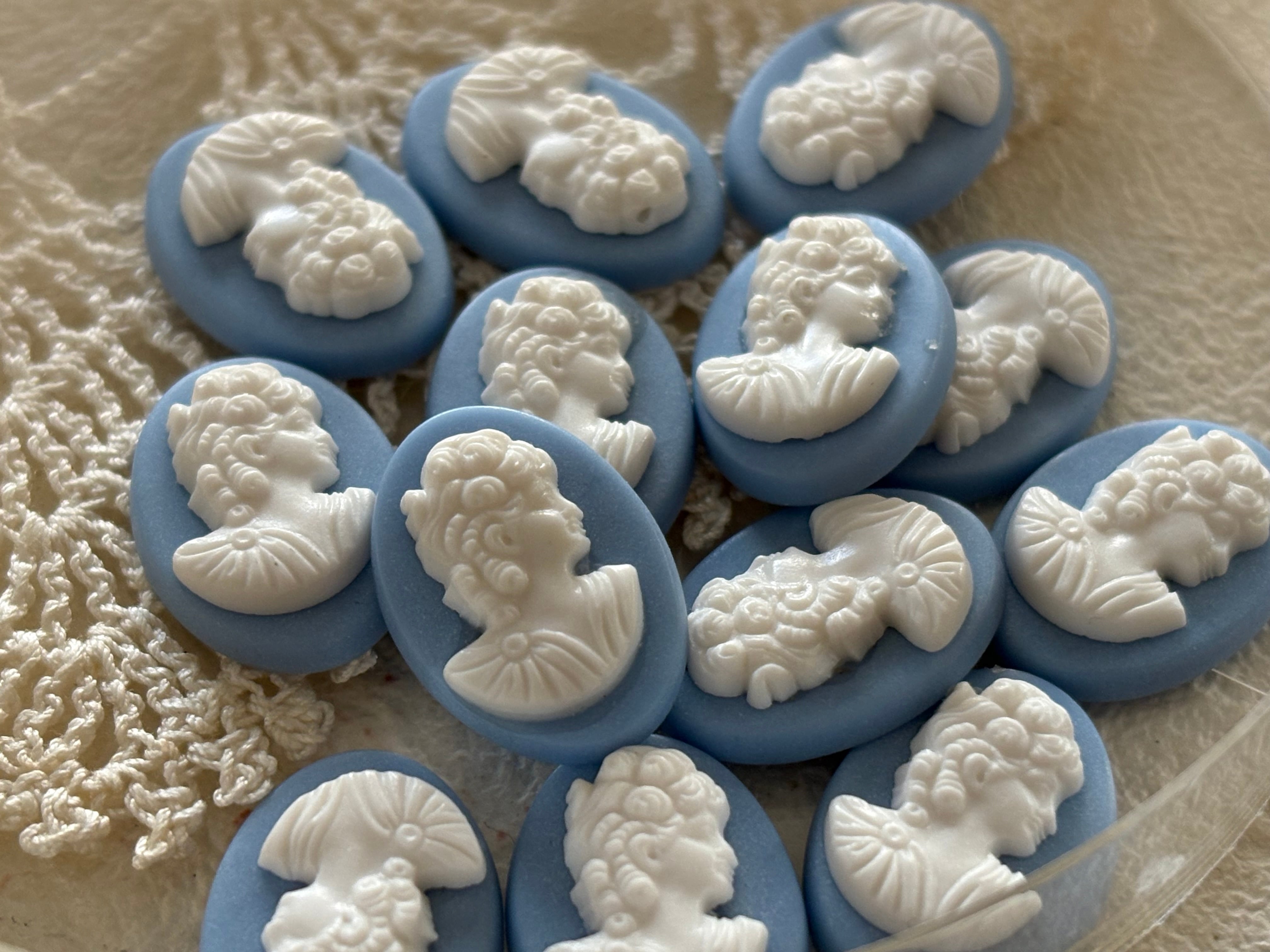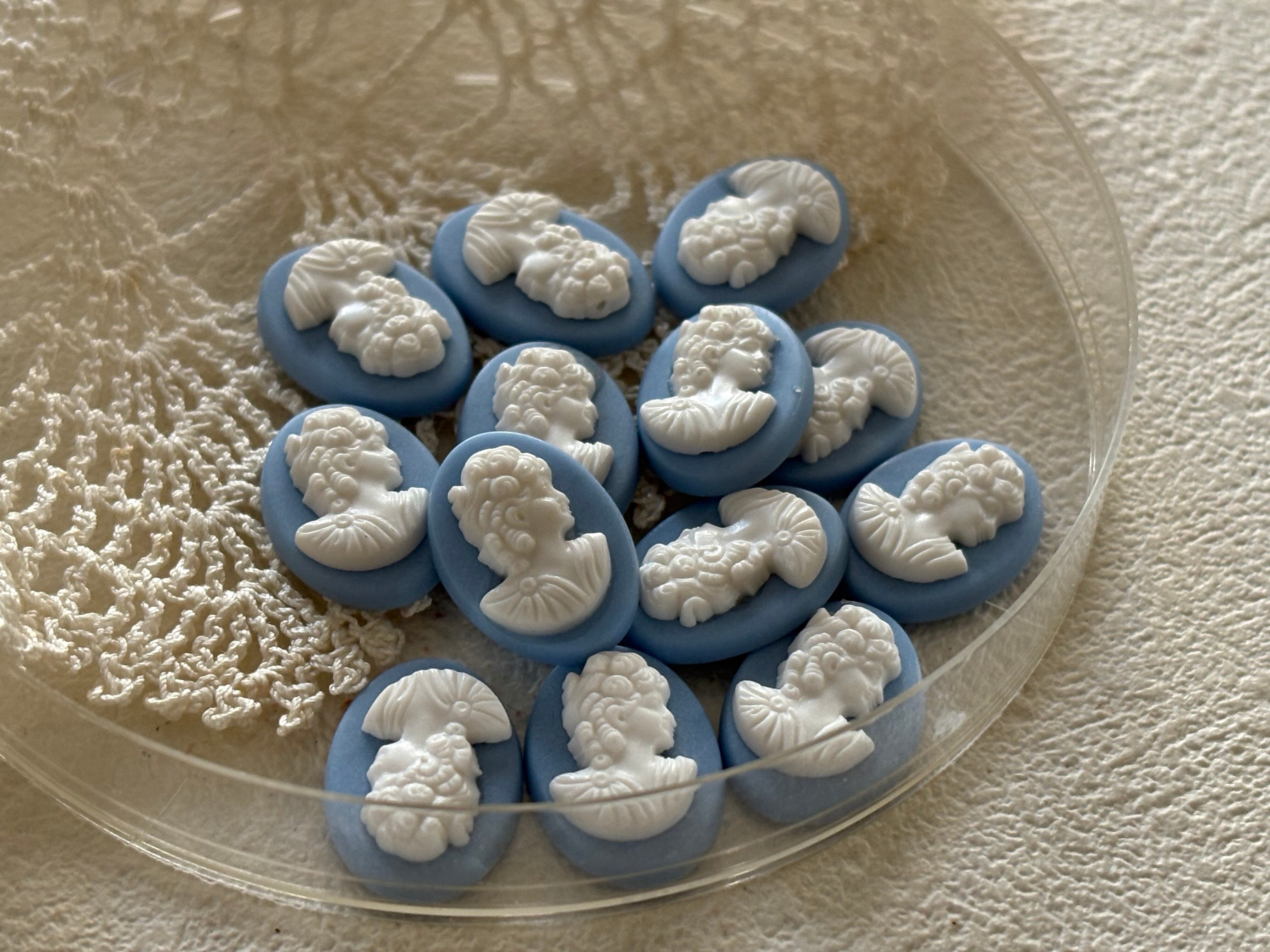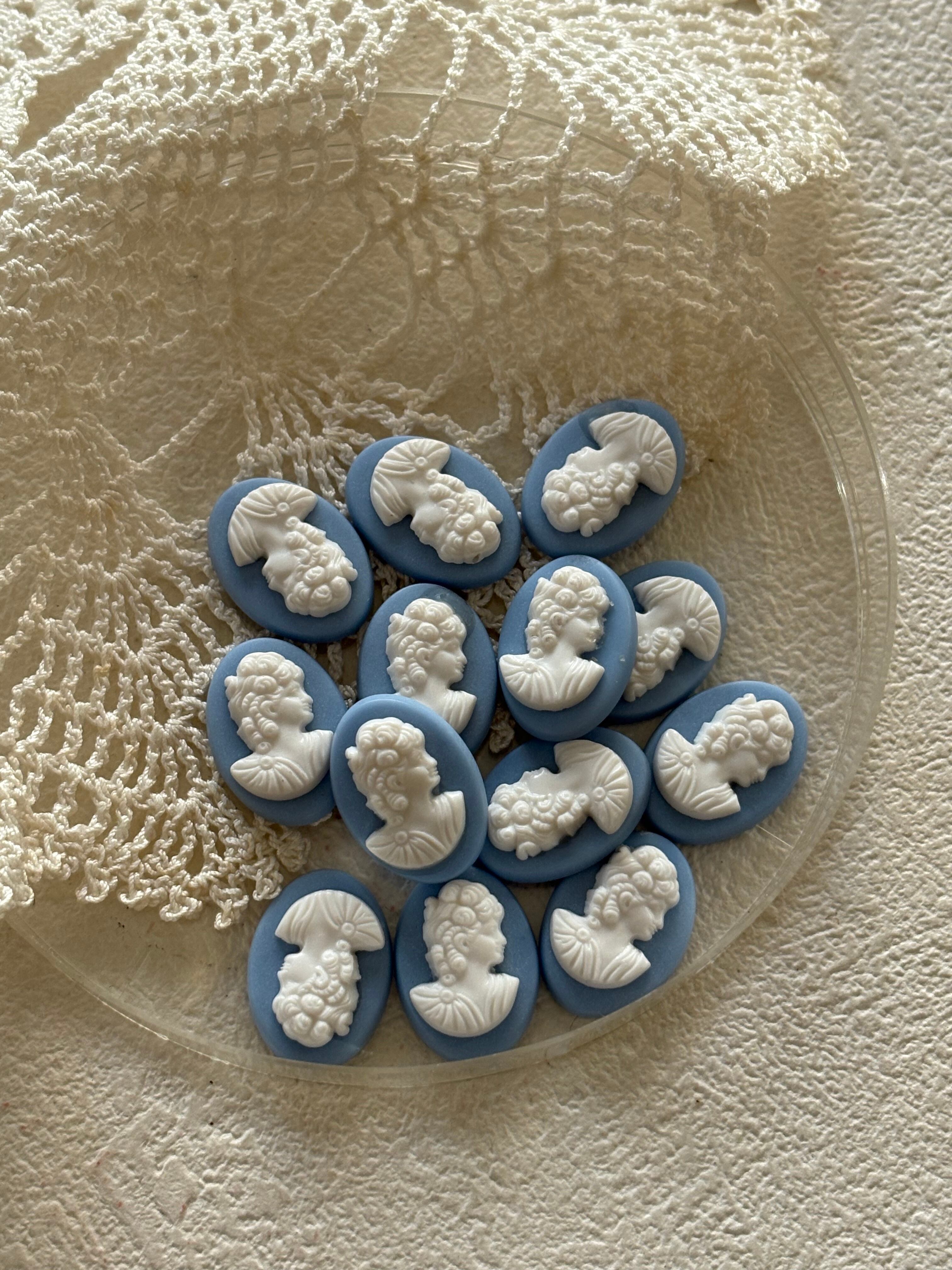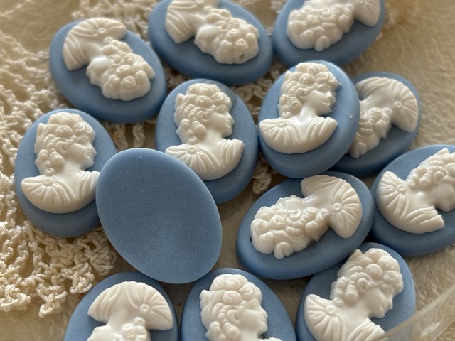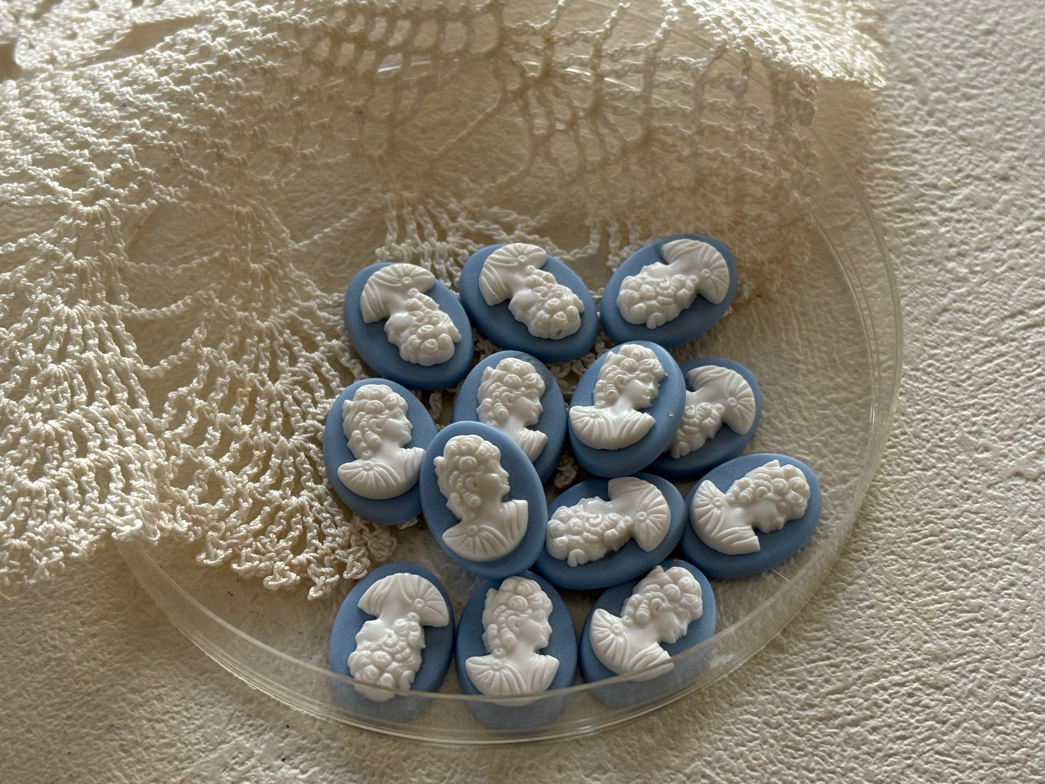 17mm ドイツVintage カメオ カボション ライトブルー×ホワイト アクリル カルトナージュ アクセサリーパーツ デコレーション材