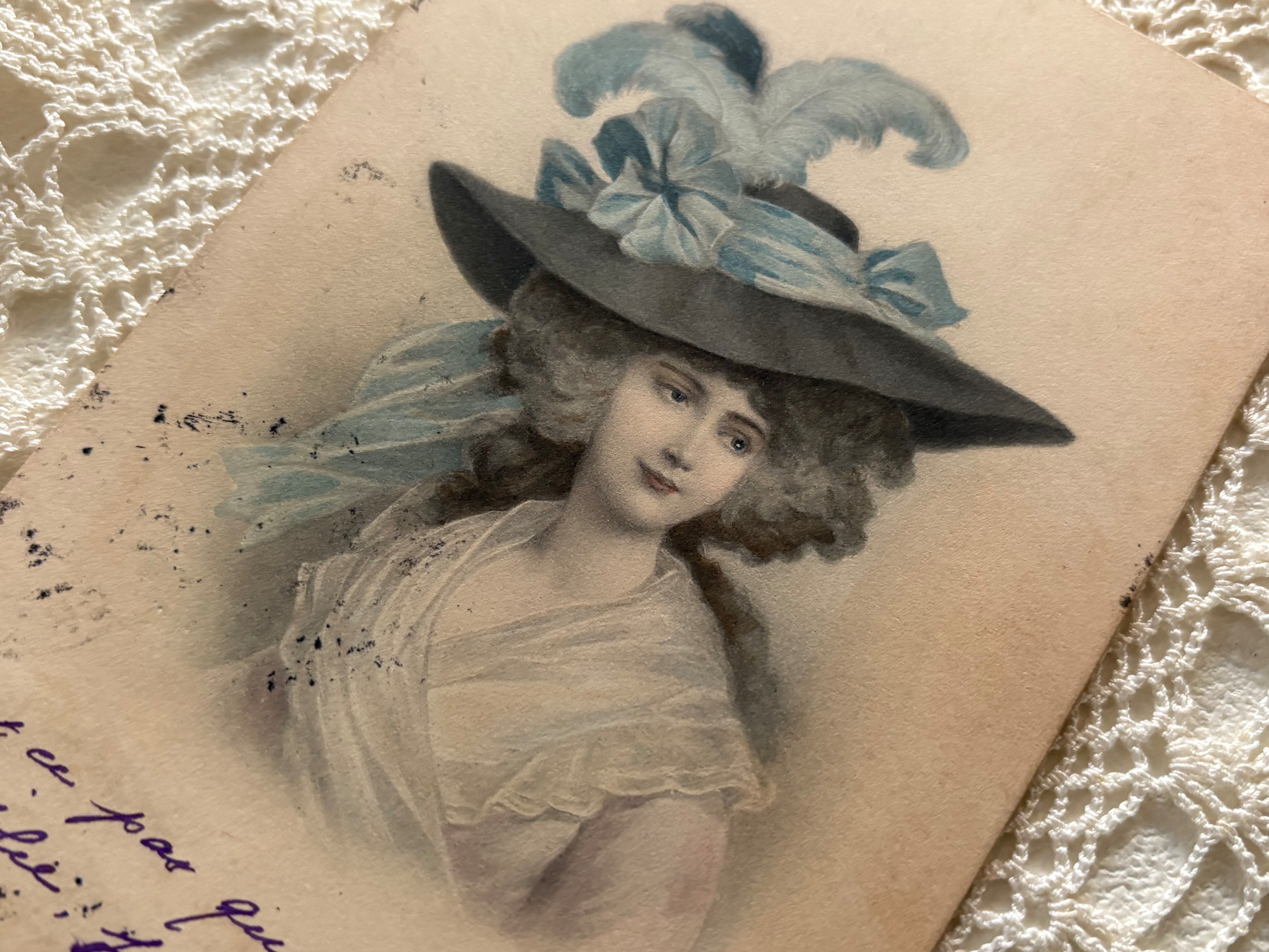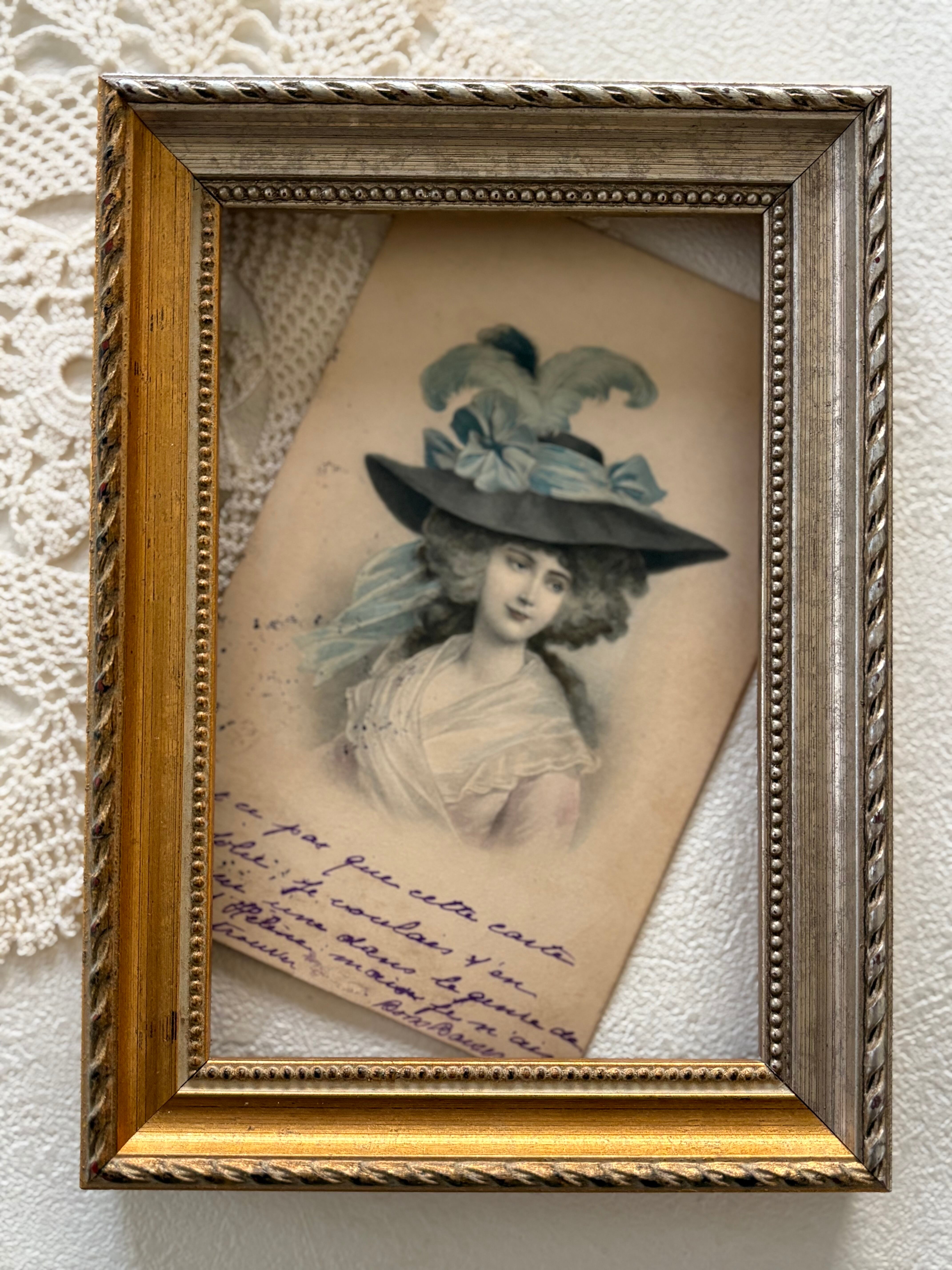 アンティークポストカード ハットが素敵なマダム フランス 額装 インテリア コレクション コラージュ